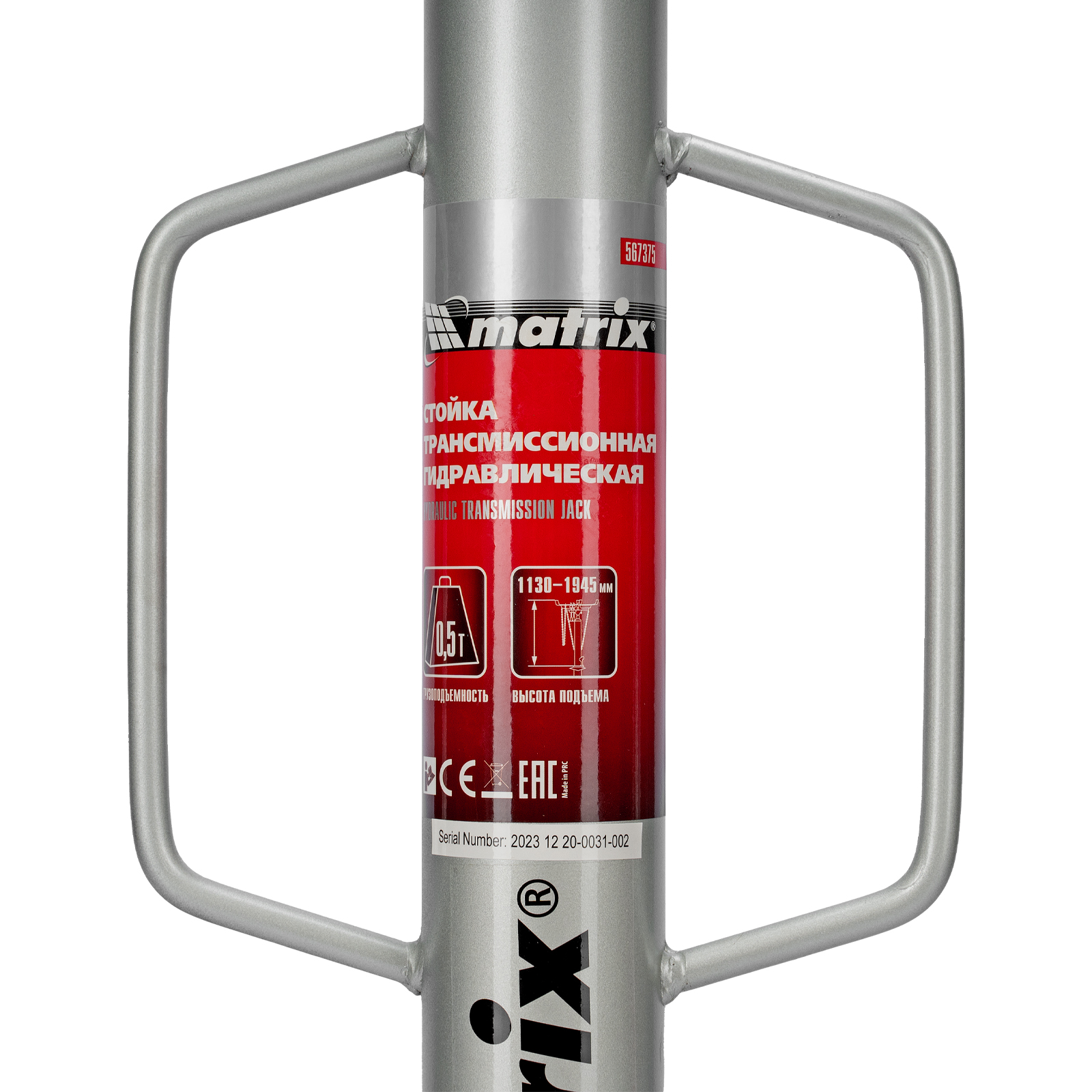 Трансмиссионная гидравлическая стойка Matrix 567375 предназначена для плавного подъема грузов массой до 0,5 т на высоту 1130-1945 мм. Пригодится профессиональным работникам СТО и автолюбителям при ремонте или монтаже/демонтаже элементов трансмиссии, для страховки и фиксации транспортного средства при использовании подъемников. Гидравлический привод позволяет плавно регулировать высоту подъема одной ногой и обеспечивает высокое качество работы