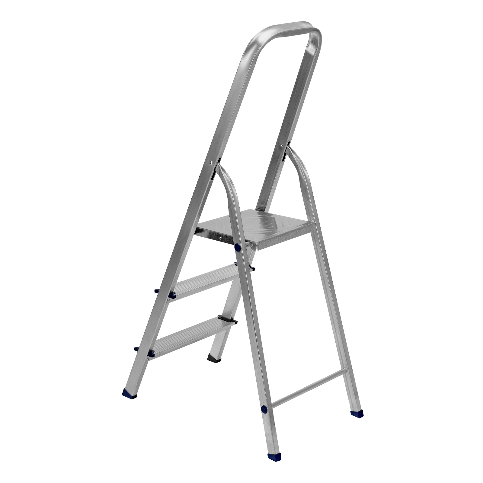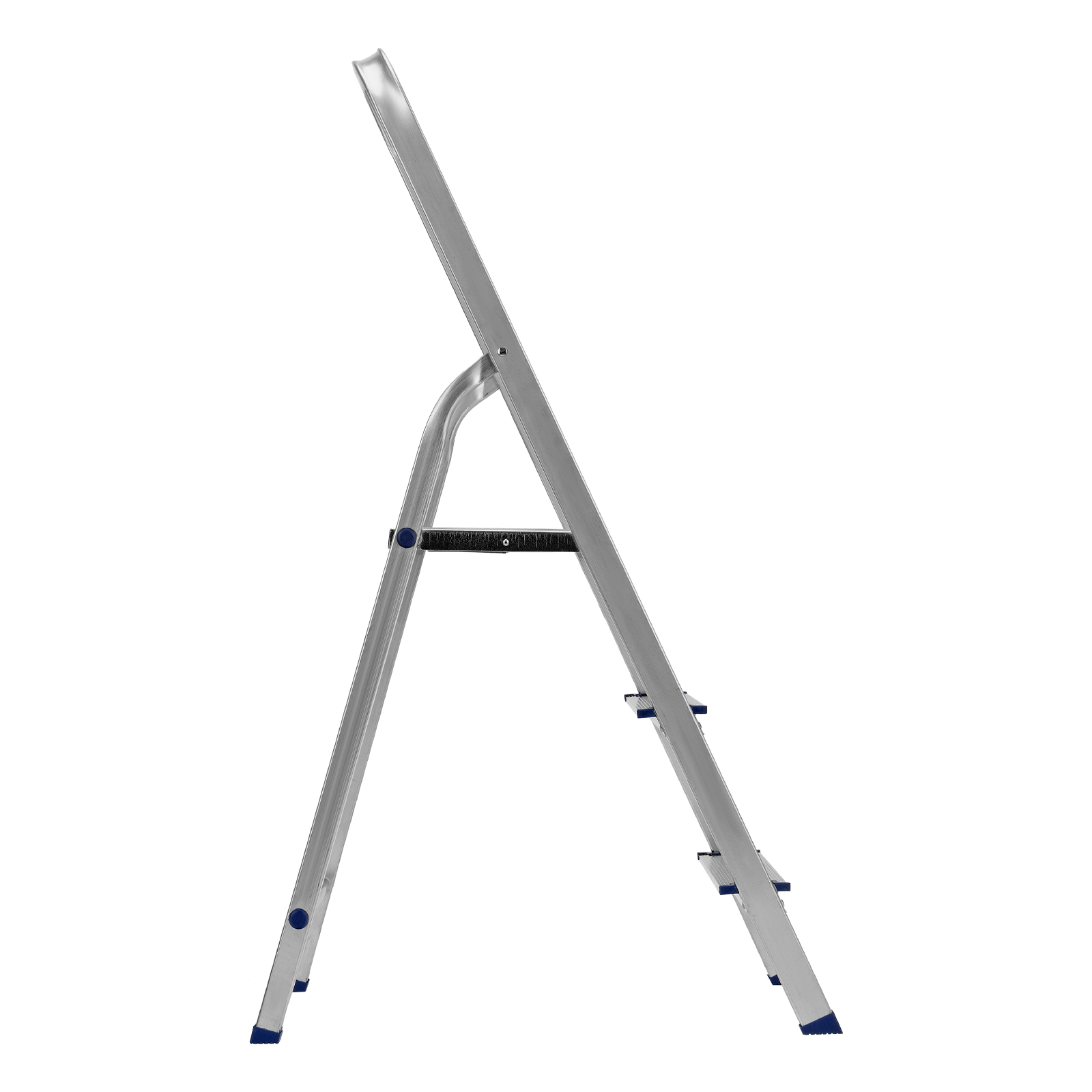 - Надежность — рама из прямоугольного алюминиевого профиля выдерживает нагрузку до 150 кг, широкие ступени закреплены заклепками.