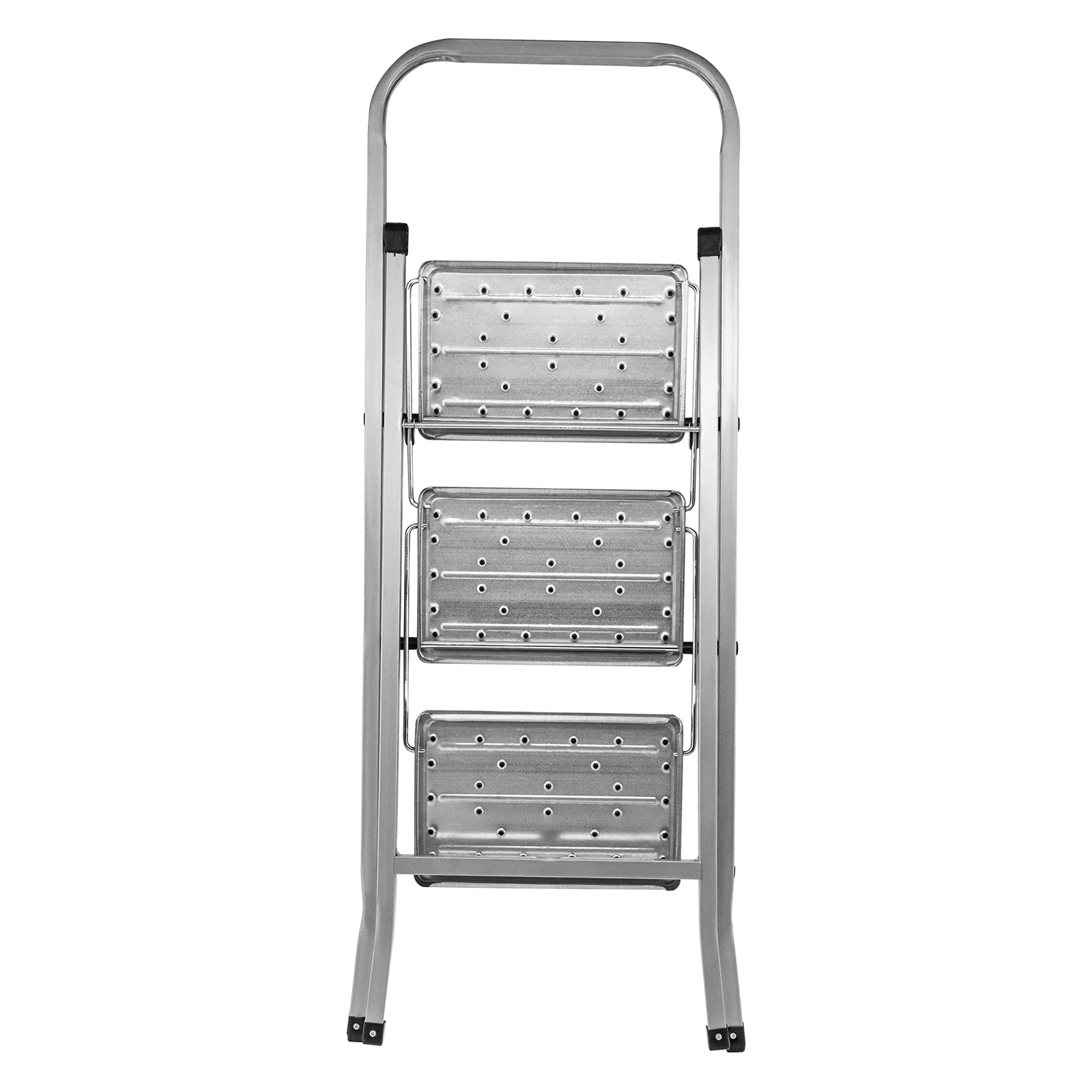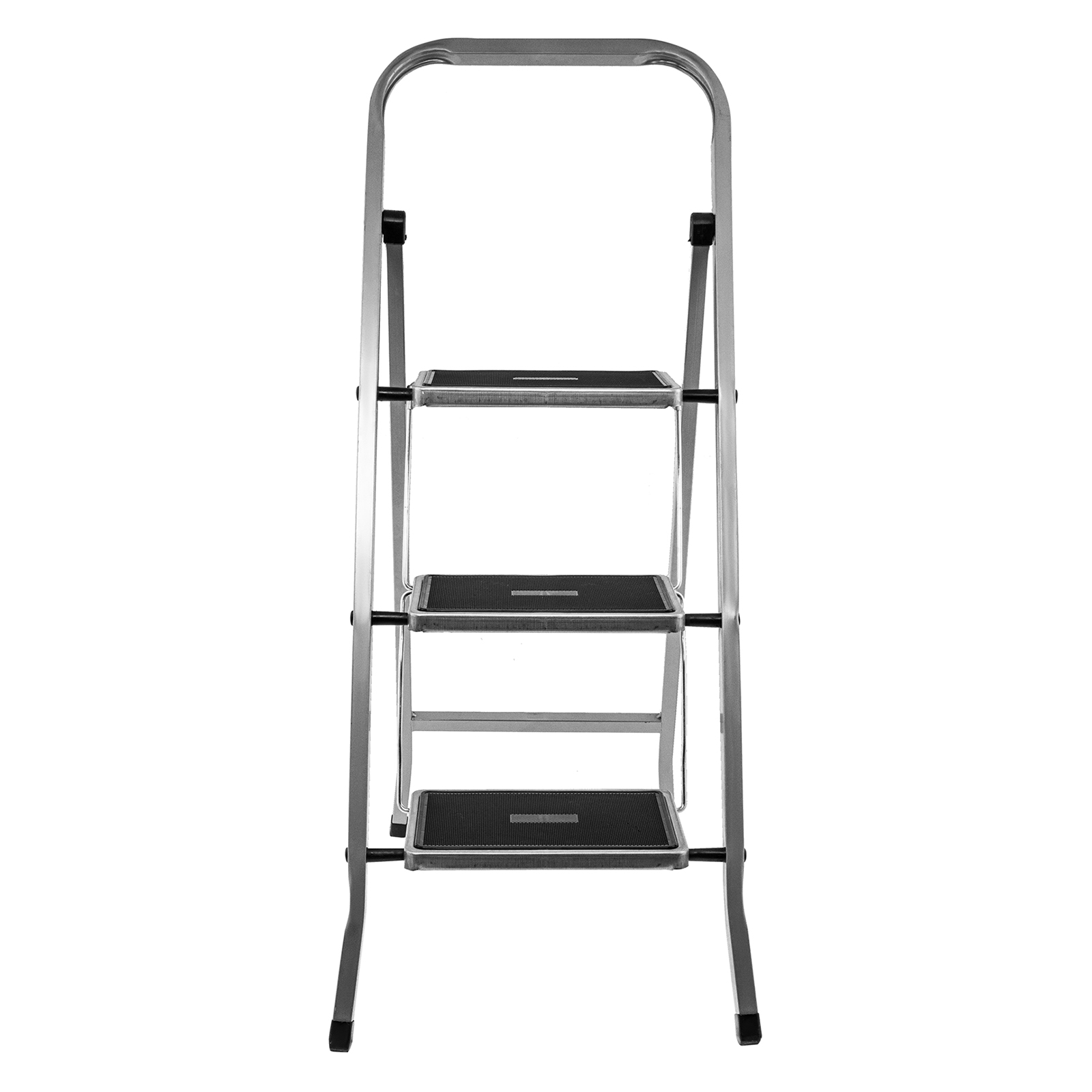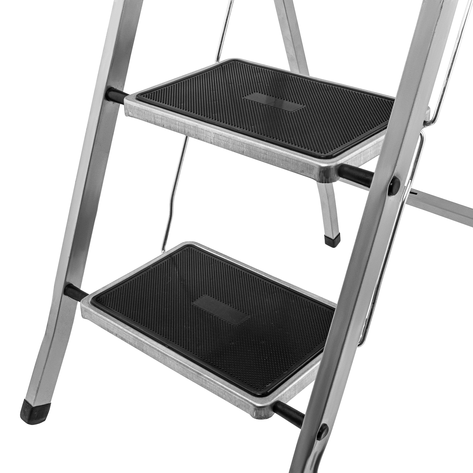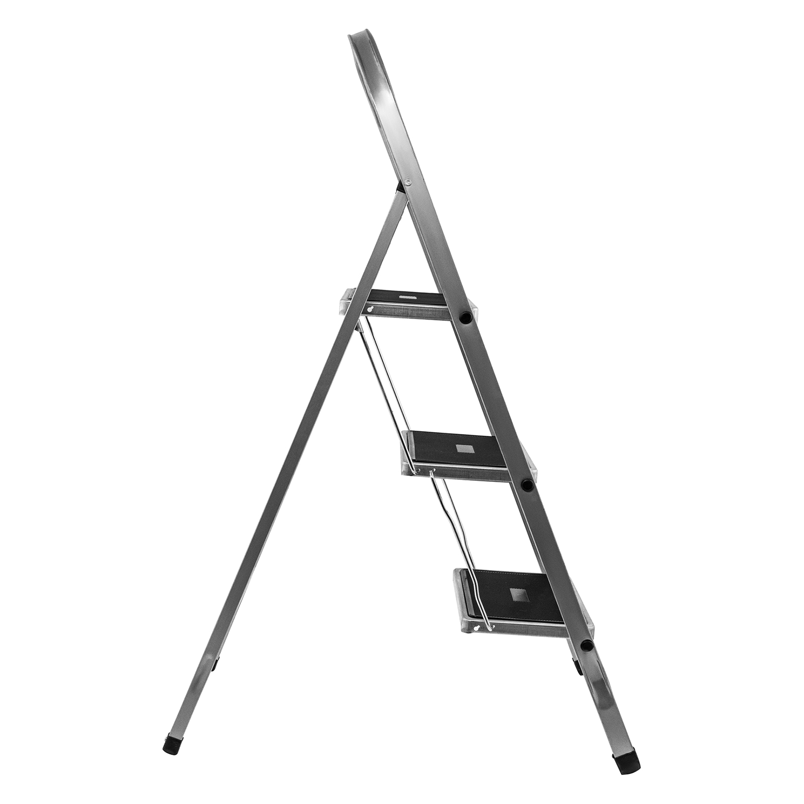 Прочность — рама и ступени изготовлены из стали, поэтому стремянка выдерживает нагрузку 120 кг.