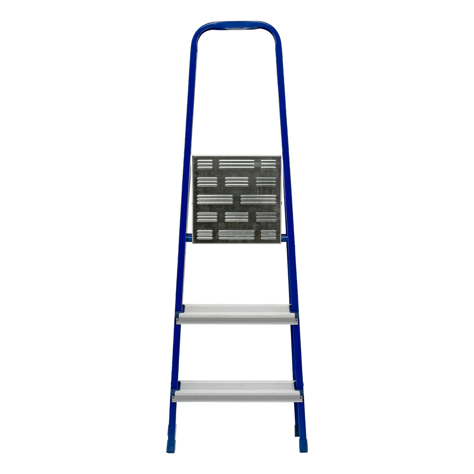 Стремянка Сибртех 97953 со стальным профилем и 3 ступенями, 2 из которых алюминиевые, упрощает доступ к предметам, расположенным на антресолях, шкафах, высоких полках. Также будет полезна для проведения отделочных и монтажных работ. Лестница обладает высокой прочностью при весе 4,4 кг и выдерживает нагрузку до 150 кг. Площадка находится на высоте 57,6 см от опорной поверхности, рабочая высота стремянки составляет 257,6 см (при среднем росте пользователя 170 см).