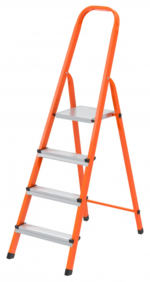 Стремянка оранжевая Сибртех 97964 со стальным профилем и 4 ступенями из стали используется, чтобы достать нужный предмет с антресолей или высокой полки, вытереть пыль на шкафу, заменить лампочку в люстре, а также решить другие бытовые вопросы. Также будет полезна для выполнения малярных и монтажных работ. Лестница рассчитана на нагрузку до 150 кг. Площадка находится на высоте 79 см от опорной поверхности, рабочая высота стремянки составляет 279 см (при среднем росте пользователя 170 см). Стремянка имеет широкое основание и характеризуется устойчивостью.