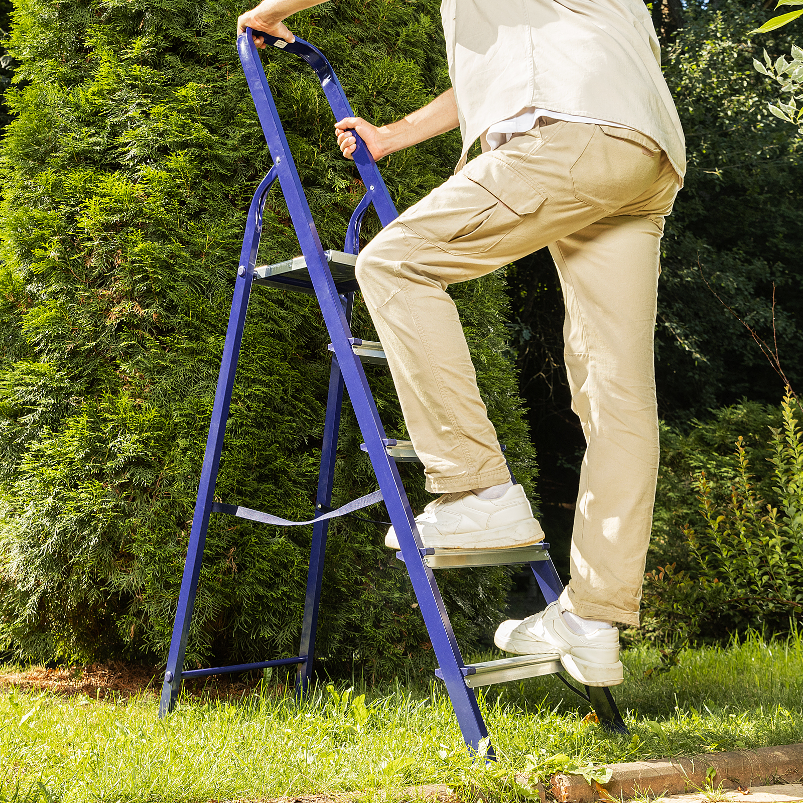 Повышенная прочность — рама и ступеньки изготовлены из стали и выдерживают нагрузку до 150 кг.