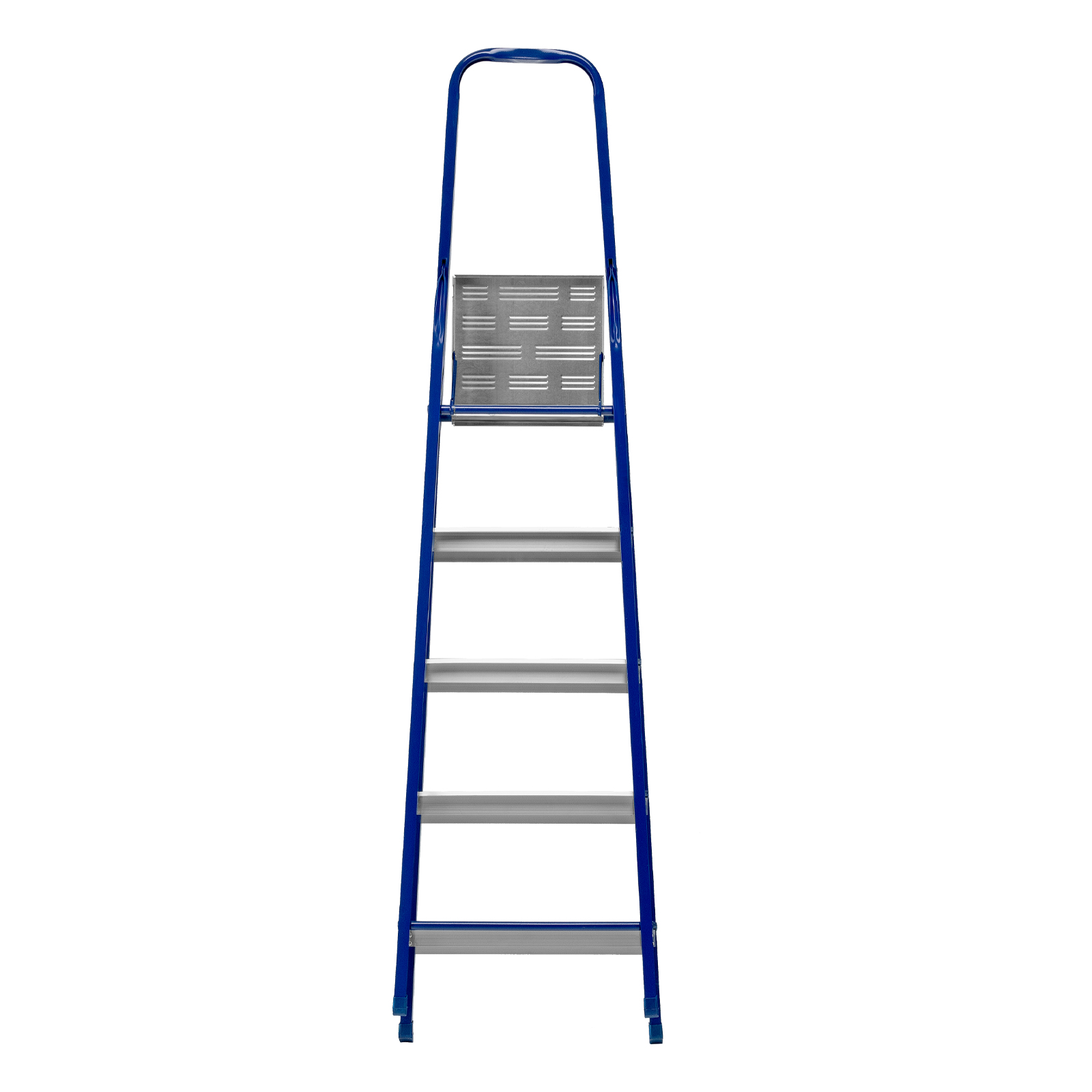 Стремянка Сибртех 97955 со стальным профилем и 5 ступенями, 4 из которых алюминиевые, упрощает доступ к предметам, расположенным на антресолях, шкафах, высоких полках. Также будет полезна для проведения отделочных и монтажных работ. Лестница обладает высокой прочностью при весе 6 кг и выдерживает нагрузку до 150 кг. Площадка находится на высоте 101,2 см от опорной поверхности, рабочая высота стремянки составляет 301,2 см (при среднем росте пользователя 170 см).