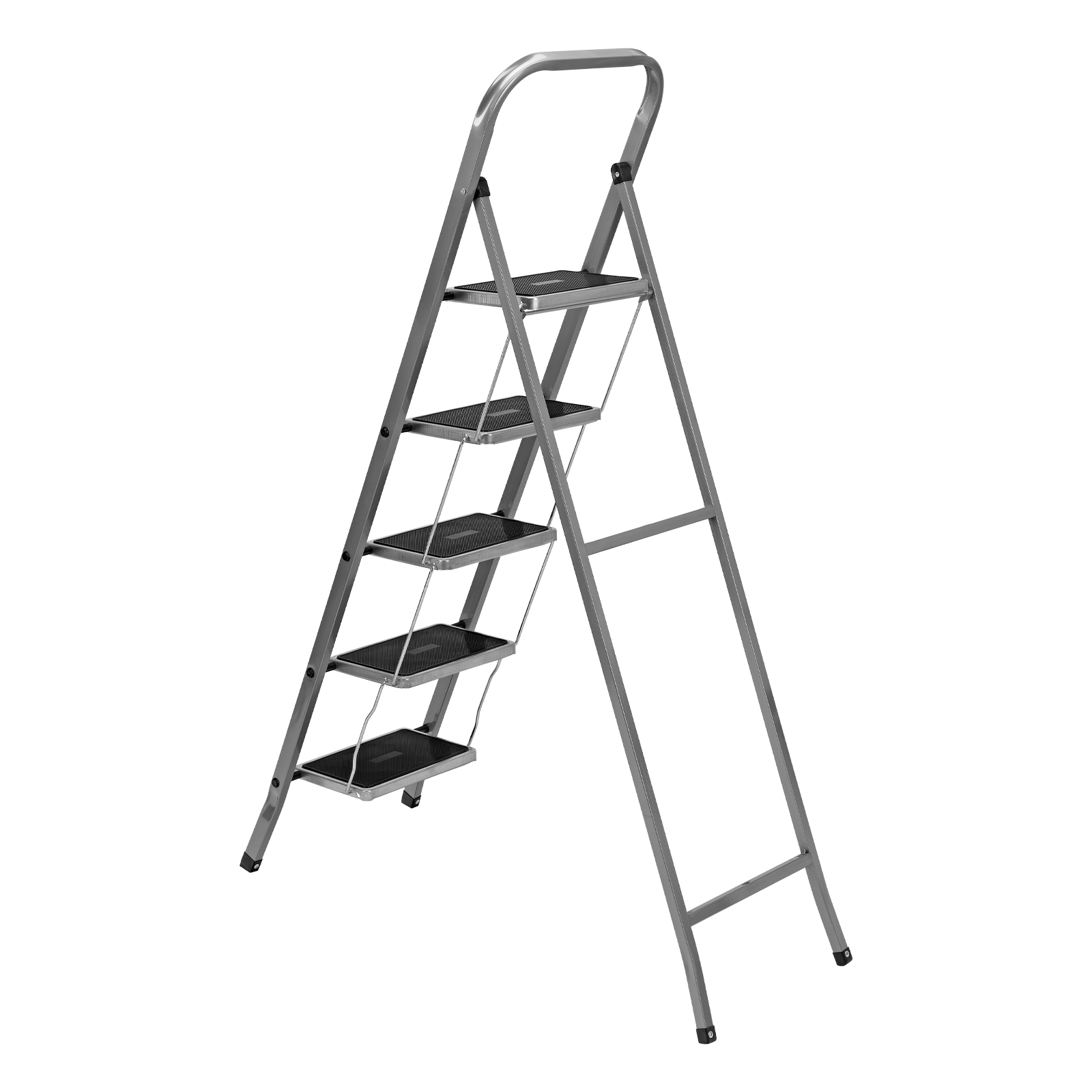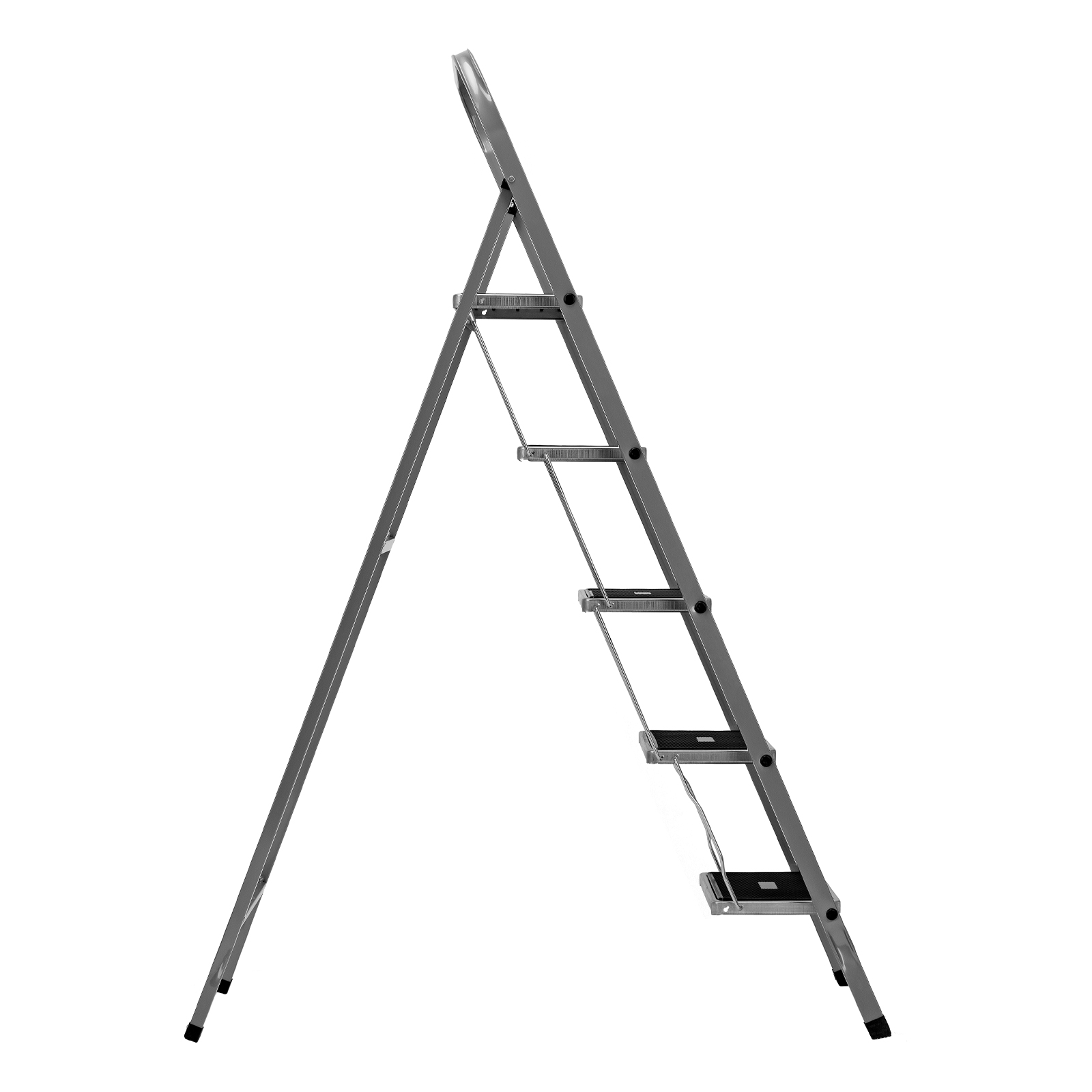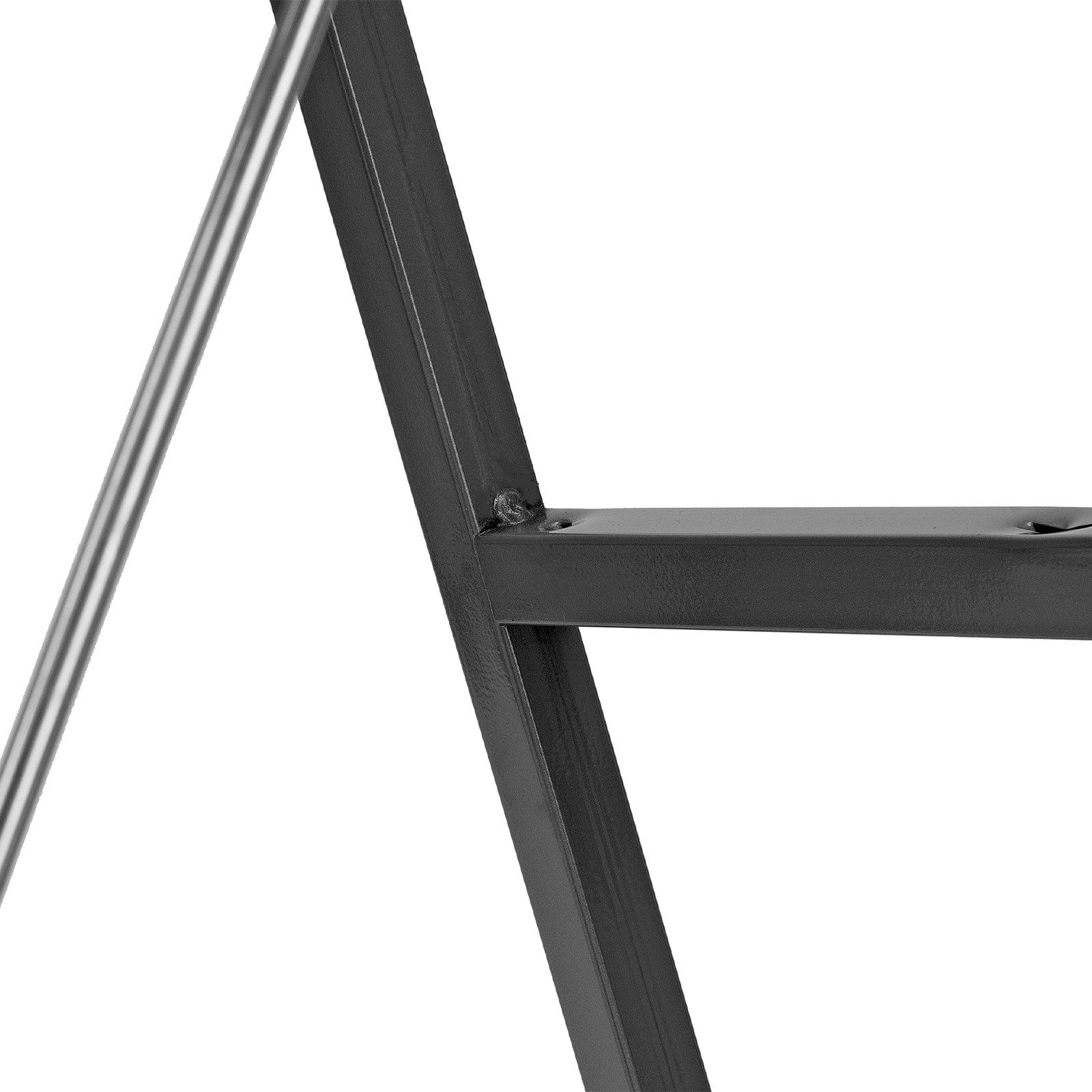 Прочность — рама и ступени изготовлены из стали, поэтому стремянка выдерживает нагрузку 120 кг.
