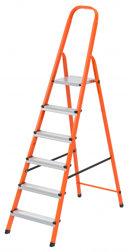 Стремянка оранжевая Сибртех 97966 со стальным профилем и 6 ступенями из стали используется, чтобы достать нужный предмет с антресолей или высокой полки, вытереть пыль на шкафу, заменить лампочку в люстре, а также решить другие бытовые вопросы. Также будет полезна для выполнения малярных и монтажных работ. Лестница рассчитана на нагрузку до 150 кг. Площадка находится на высоте 122 см от опорной поверхности, рабочая высота стремянки составляет 322 см (при среднем росте пользователя 170 см). Стремянка имеет широкое основание и характеризуется устойчивостью.