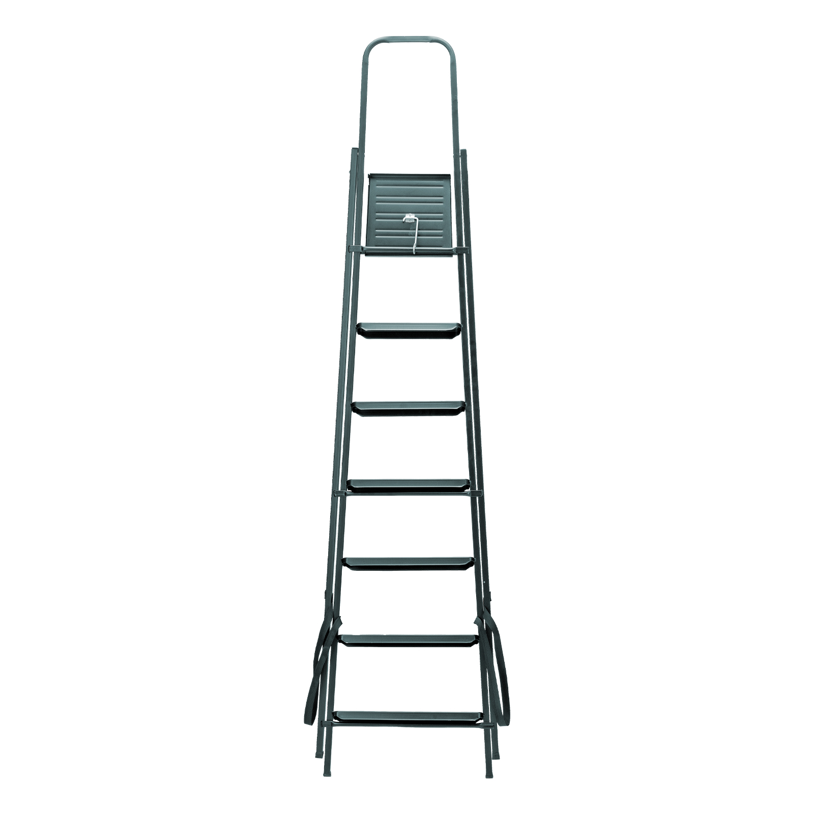 Надежная фиксация в рабочем положении — на верхней площадке имеются специальные зацепы, опоры дополнительно удерживаются страховочными лентами.