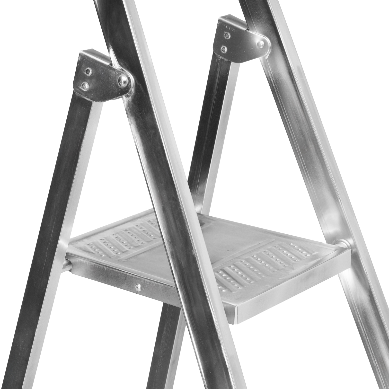 Стальная оцинкованная стремянка Сибртех 97839 с 7 ступенями позволяет повесить полку, картину или шкафчик, достать нужный предмет и решить другие задачи, для которых требуется доступ к предметам на высоте. Рама и ступени из стального профиля выдерживают вес до 120 кг. Расстояние от опорной поверхности до площадки составляет 143,5 см, при среднем росте пользователя 170 см рабочая высота лестницы — 343,5 см. Необходимо соблюдать технику безопасности: размещать стремянку только на ровной плоскости и не использовать ее для работы с дрелью, шуруповертом и другим электроинструментом.