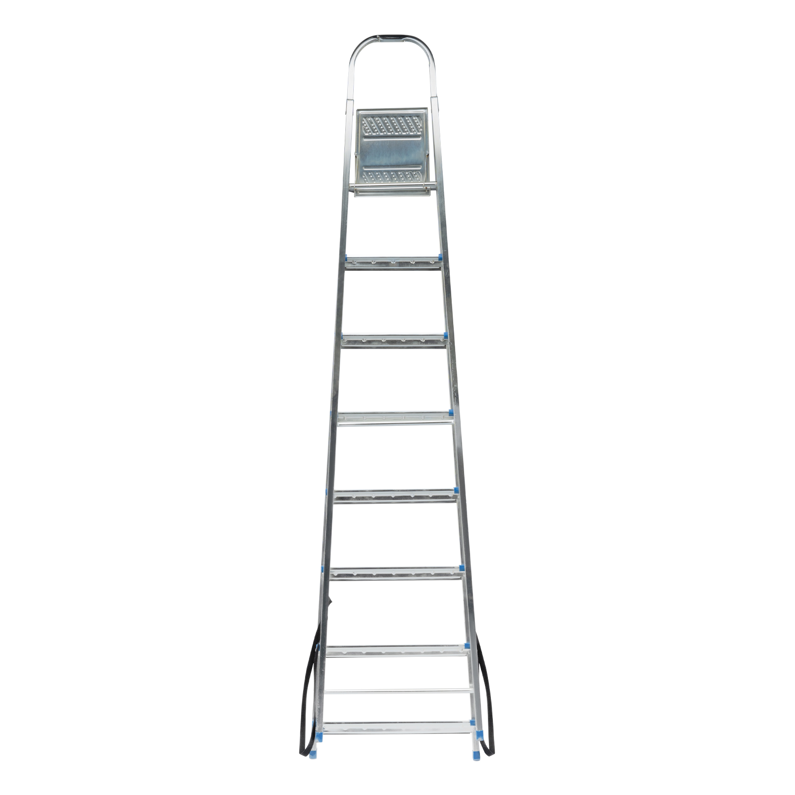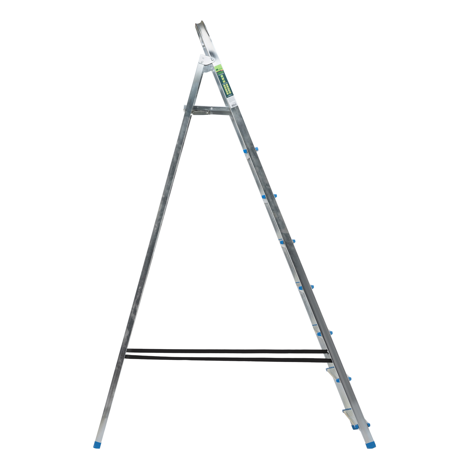 Стальная оцинкованная стремянка Сибртех 97840 с 8 ступенями позволяет выполнять ремонтные и садовые работы, для которых требуется доступ к предметам на высоте. Рама и ступени из стального профиля выдерживают вес до 120 кг. Расстояние от опорной поверхности до площадки составляет 166 см, при среднем росте пользователя 170 см рабочая высота лестницы — 366 см. Необходимо соблюдать технику безопасности: размещать стремянку только на ровной плоскости и не использовать ее для работы с дрелью, шуруповертом и другим электроинструментом.