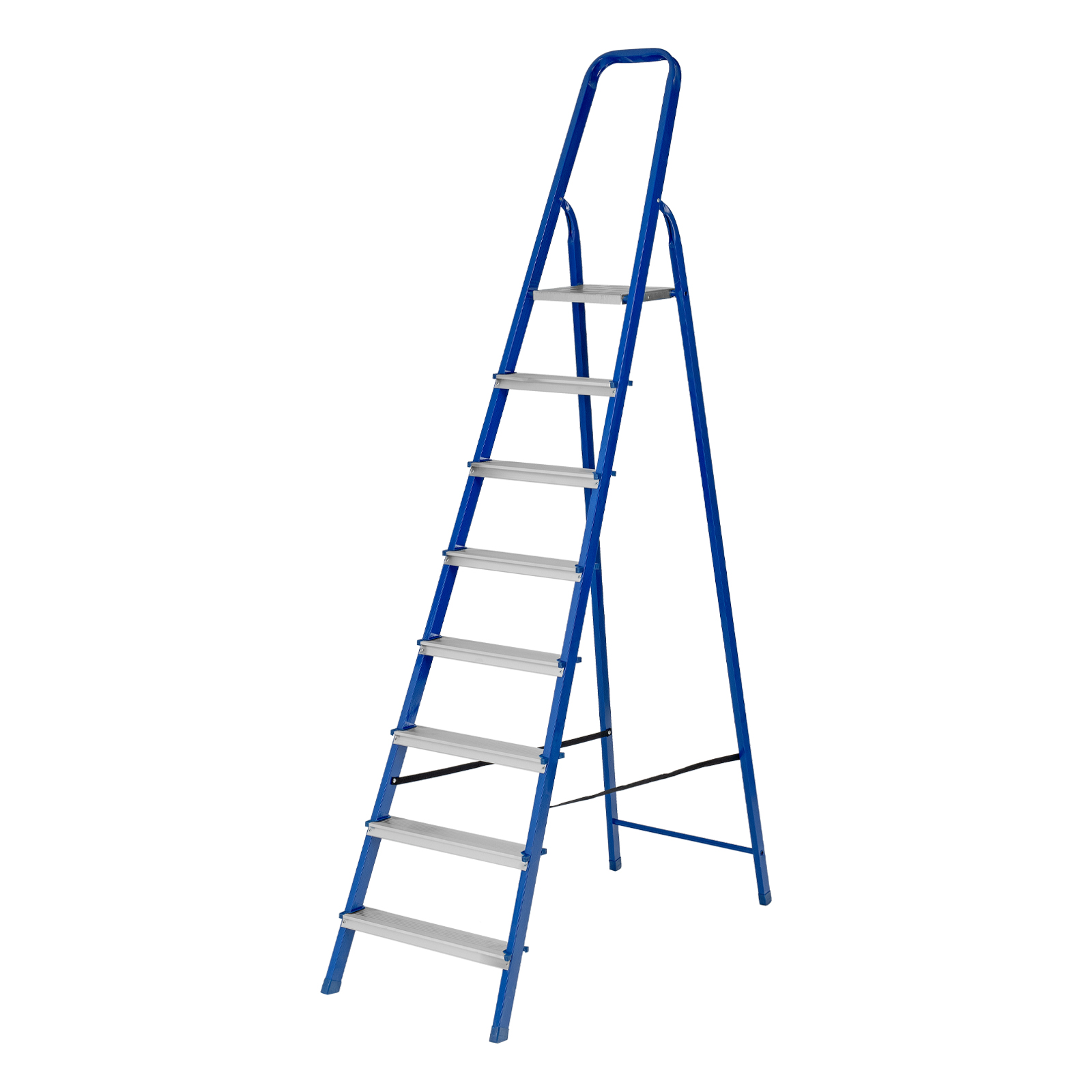 Стремянка Сибртех 97958 со стальным профилем и 8 ступенями, 7 из которых алюминиевые, упрощает доступ к предметам, расположенным на антресолях, шкафах, высоких полках. Также будет полезна для проведения отделочных и монтажных работ. Лестница обладает высокой прочностью при весе 8,5 кг и выдерживает нагрузку до 150 кг. Площадка находится на высоте 166,6 см от опорной поверхности, рабочая высота стремянки составляет 366,6 см (при среднем росте пользователя 170 см).