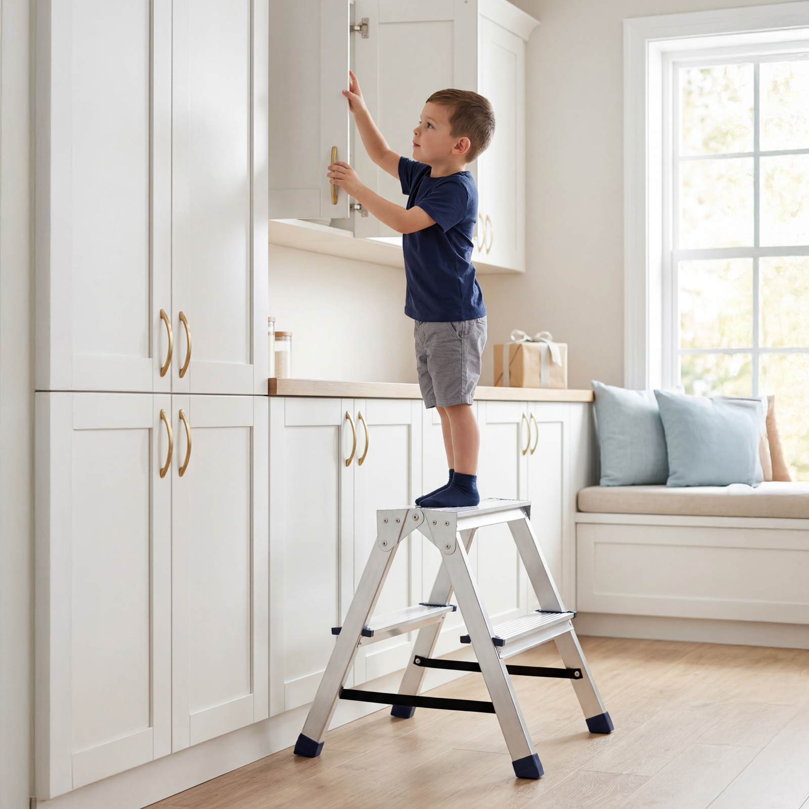 Стремянка двусторонняя 2 ступени, алюминиевая, Сибртех