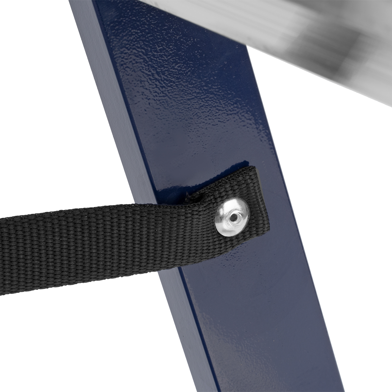 Преимущества Надежность — нейлоновые страховочные стяжки повышают прочность конструкции. Коррозионная стойкость — стальная рама покрыта порошковой эмалью. Безопасность пользователя — широкие алюминиевые ступени не прогибаются, рифление на поверхности не дает поскользнуться. Защита от порезов и царапин — углы ступеней закрыты пластиковыми накладками. Пластиковые заглушки на опорах — стремянка не скользит и не царапает напольное покрытие. Компактность — стремянка весом 3,2 кг имеет габариты в сложенном состоянии 660 х 435 х 160,5 мм, поэтому ее удобно хранить и перемещать. Внешний вид товара может незначительно отличаться от указанного на изображении, что не влечет изменения его качества.