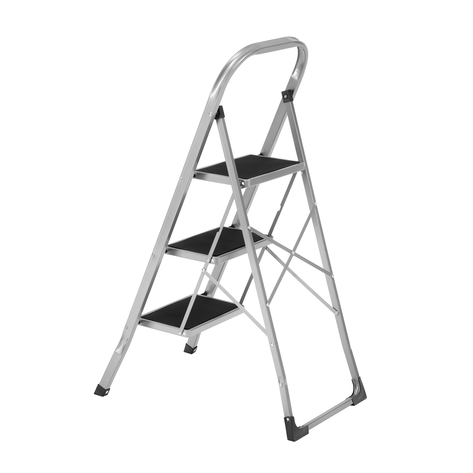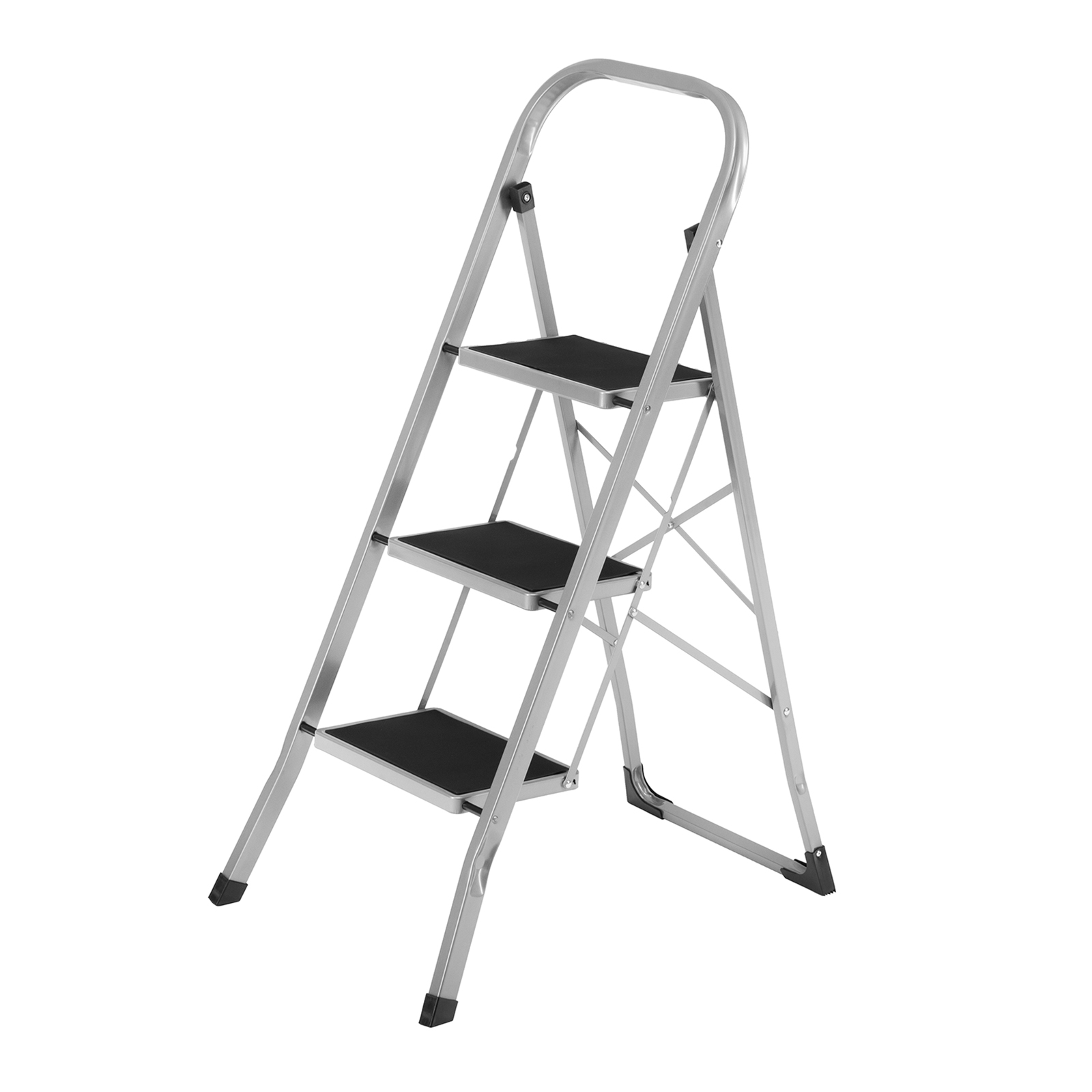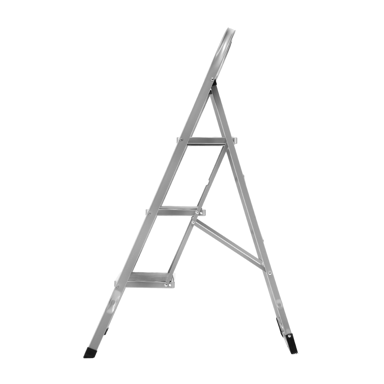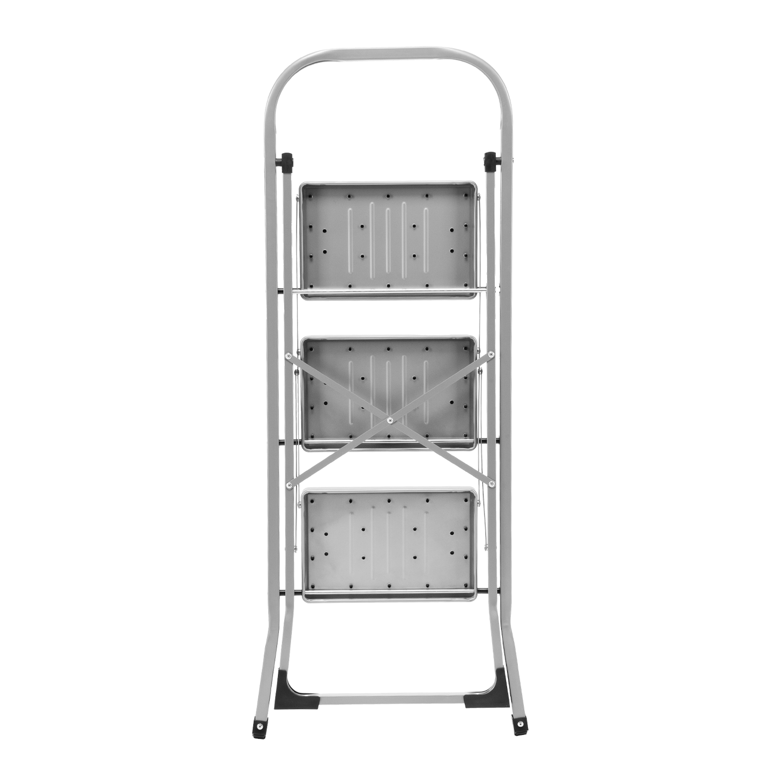 - Удобное хранение — за счет толщины в сложенном виде 4,5 см стремянка не занимает много места.
