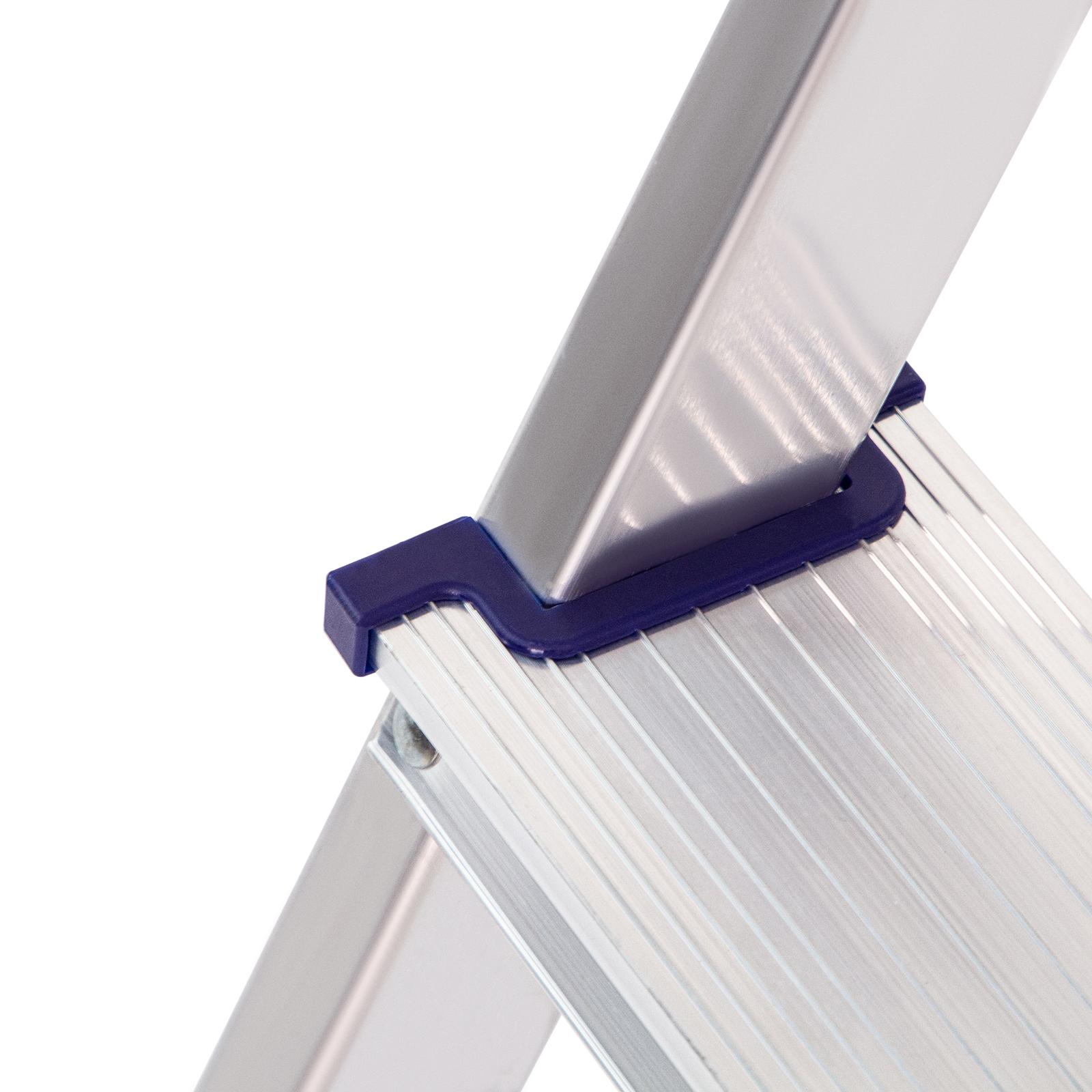 - Надежность — рама из прямоугольного алюминиевого профиля выдерживает нагрузку до 150 кг, широкие ступени закреплены заклепками.