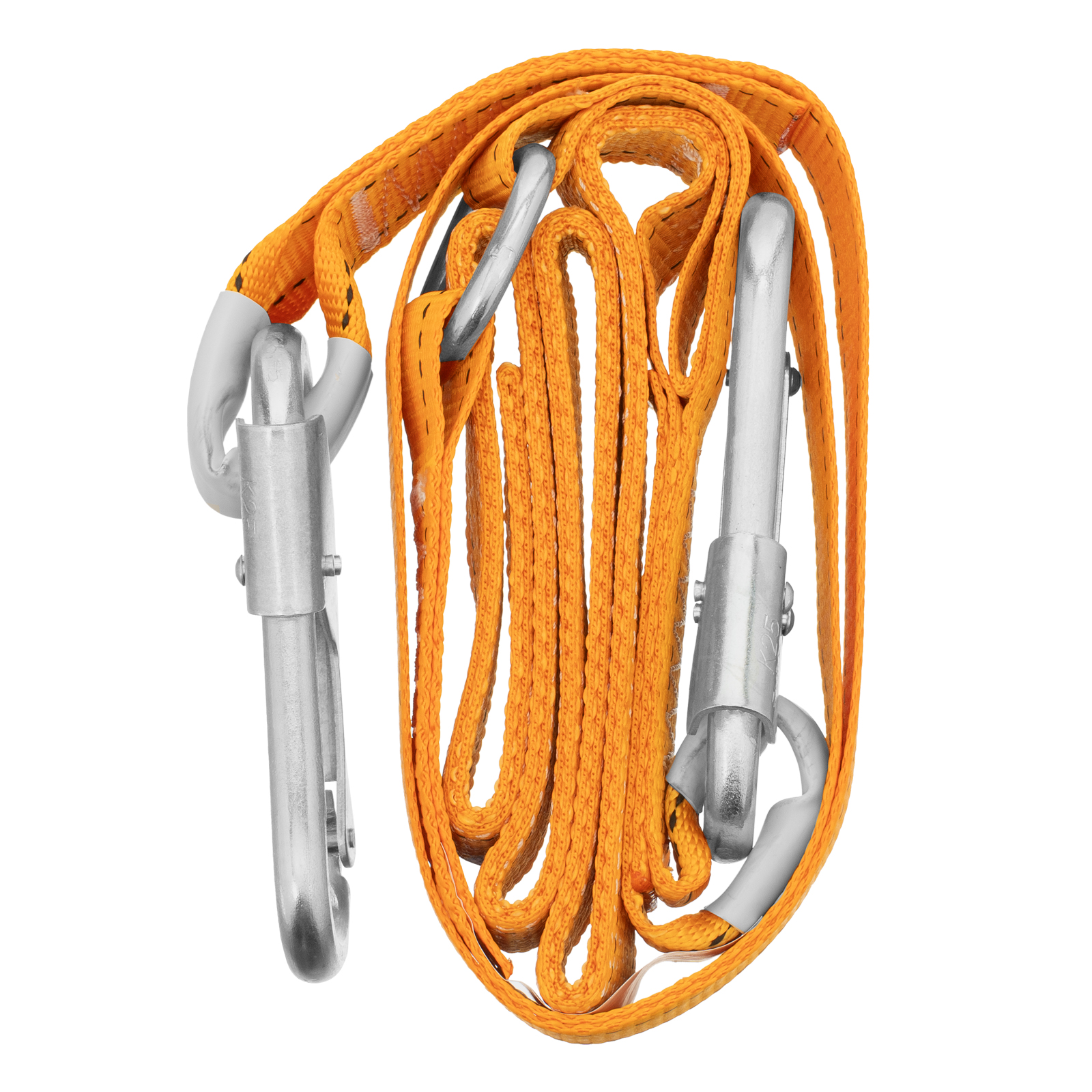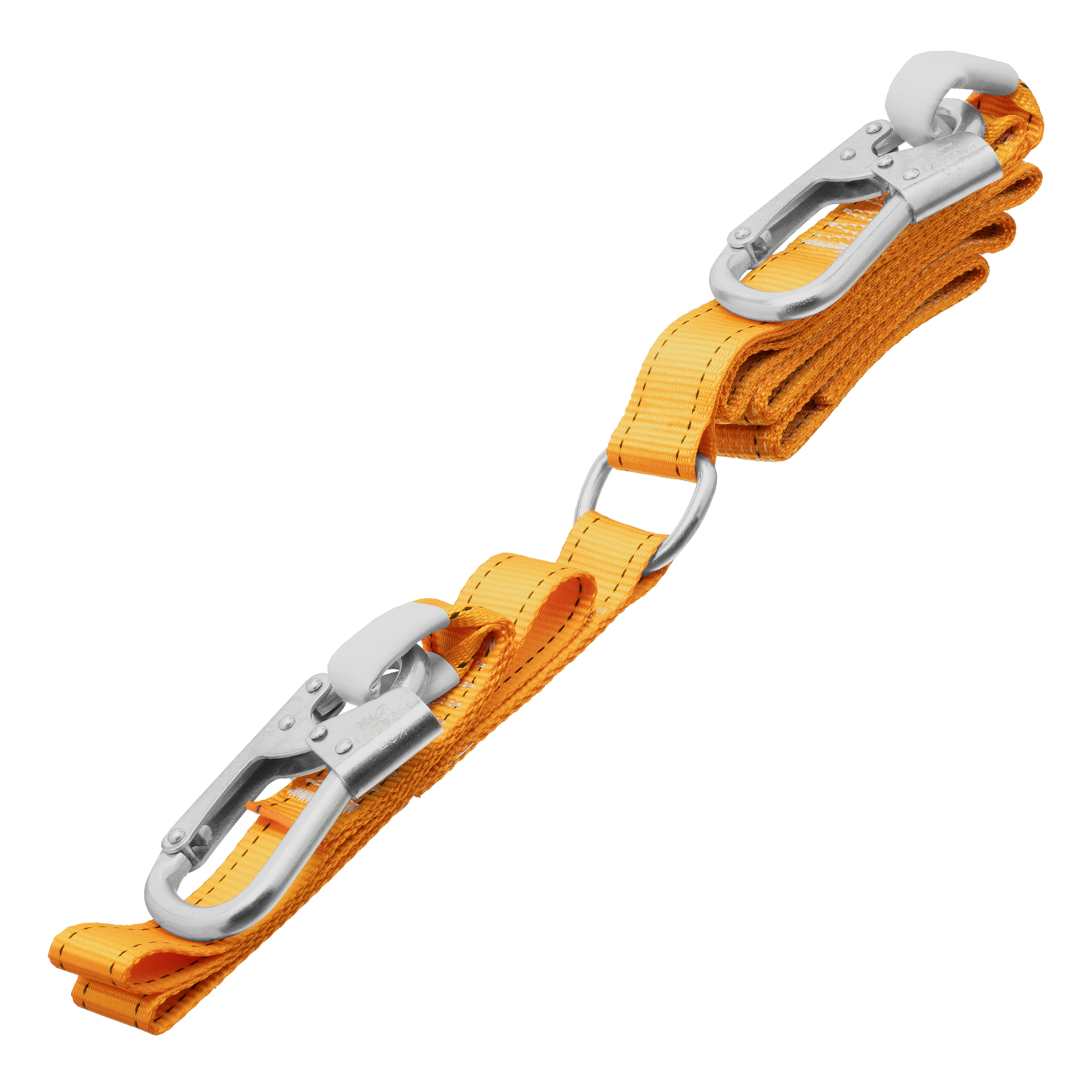 - Безопасная работа — два прочных стальных карабина гарантируют надежную фиксацию, встроенный амортизатор гасит силу динамического удара в случае падения пользователя с высоты.