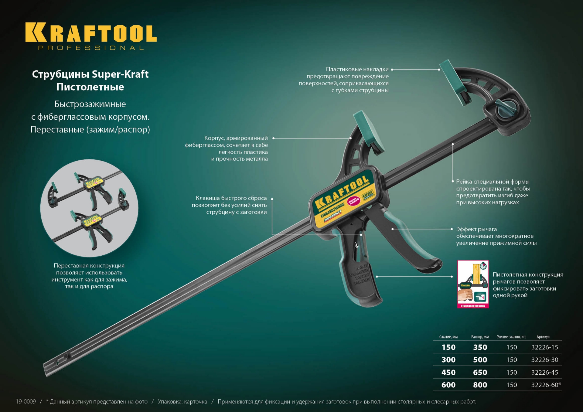 Профессиональные пистолетные струбцины KRAFTOOL «EXPERT» изготов-лены из высококачественного нейлона, армированного фиберглассом, соответствуют самым высоким техническим требованиям. Обладают повышенным ресурсом и обеспечивают длительную и качественную работу.
