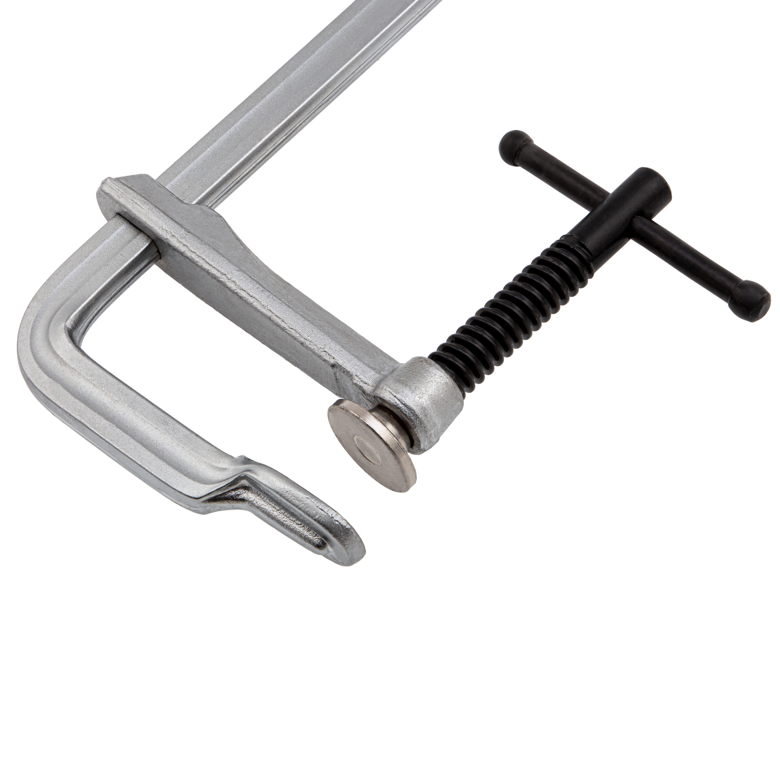 - Хромированное покрытие надежно защищает струбцину от коррозии.