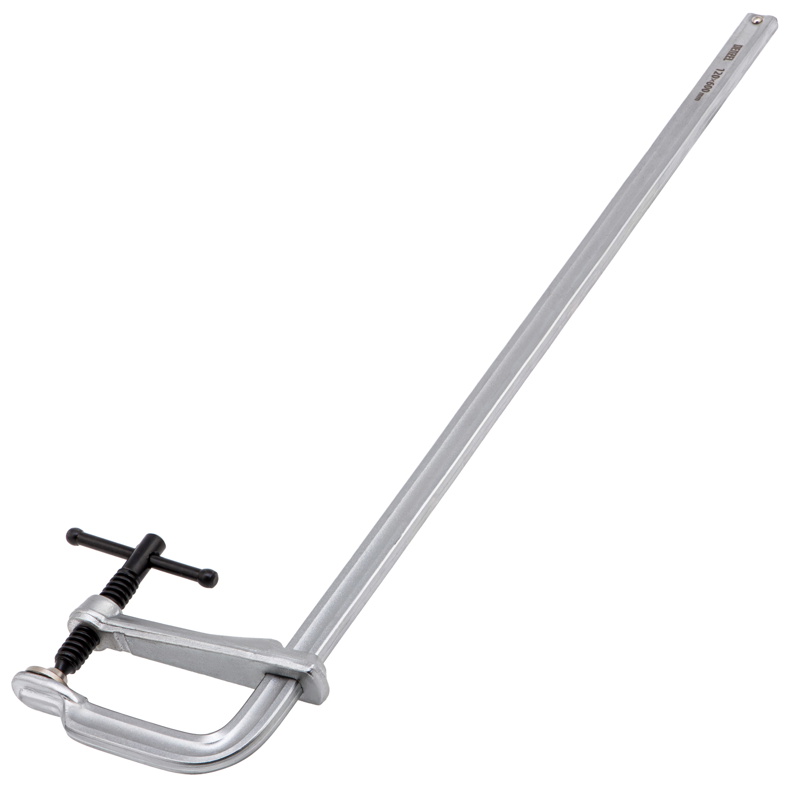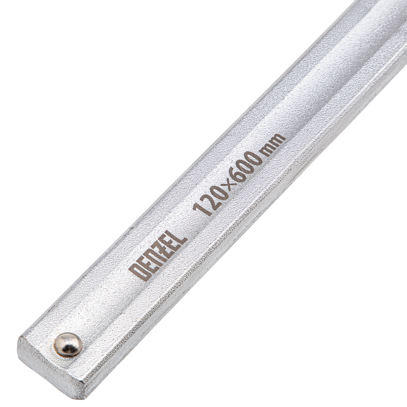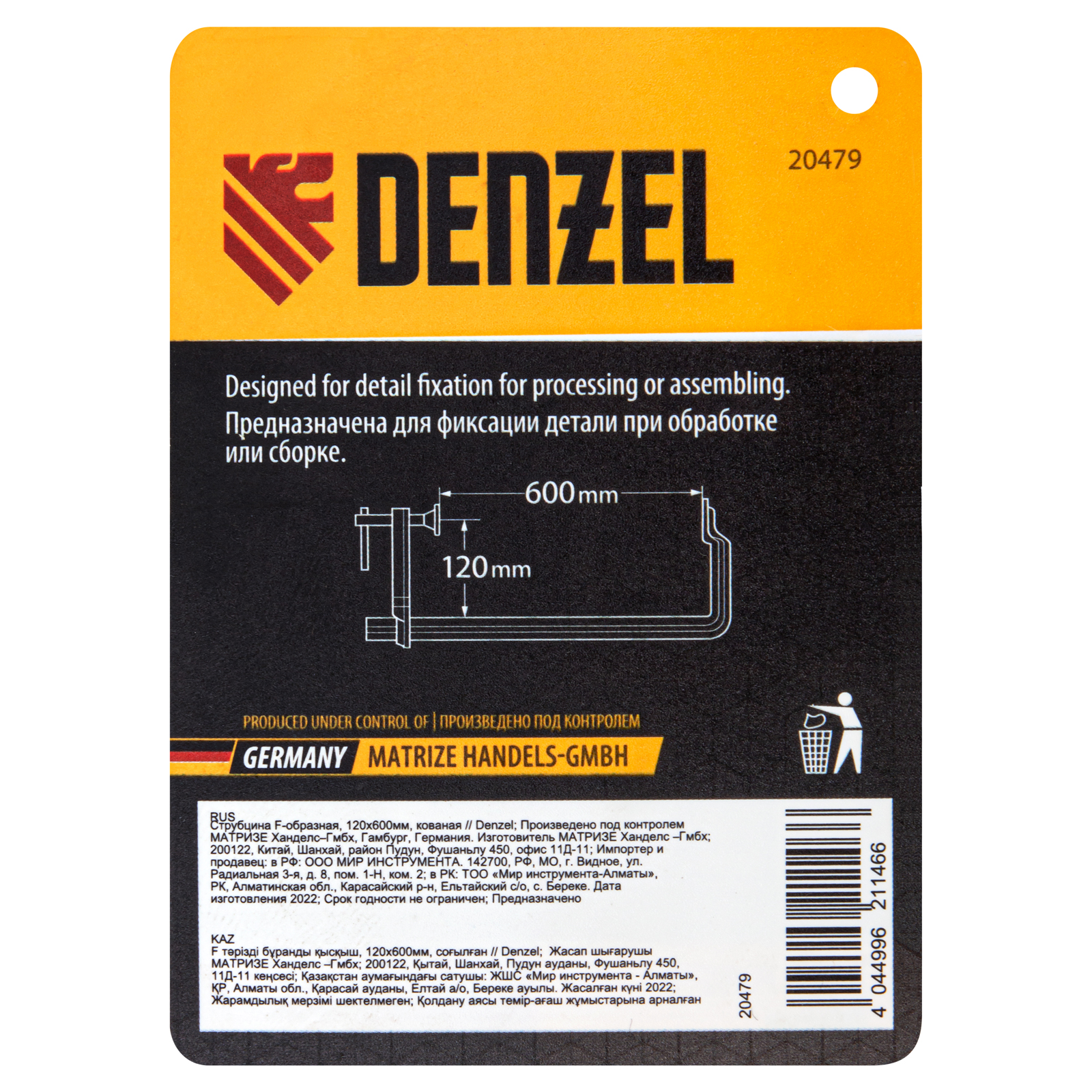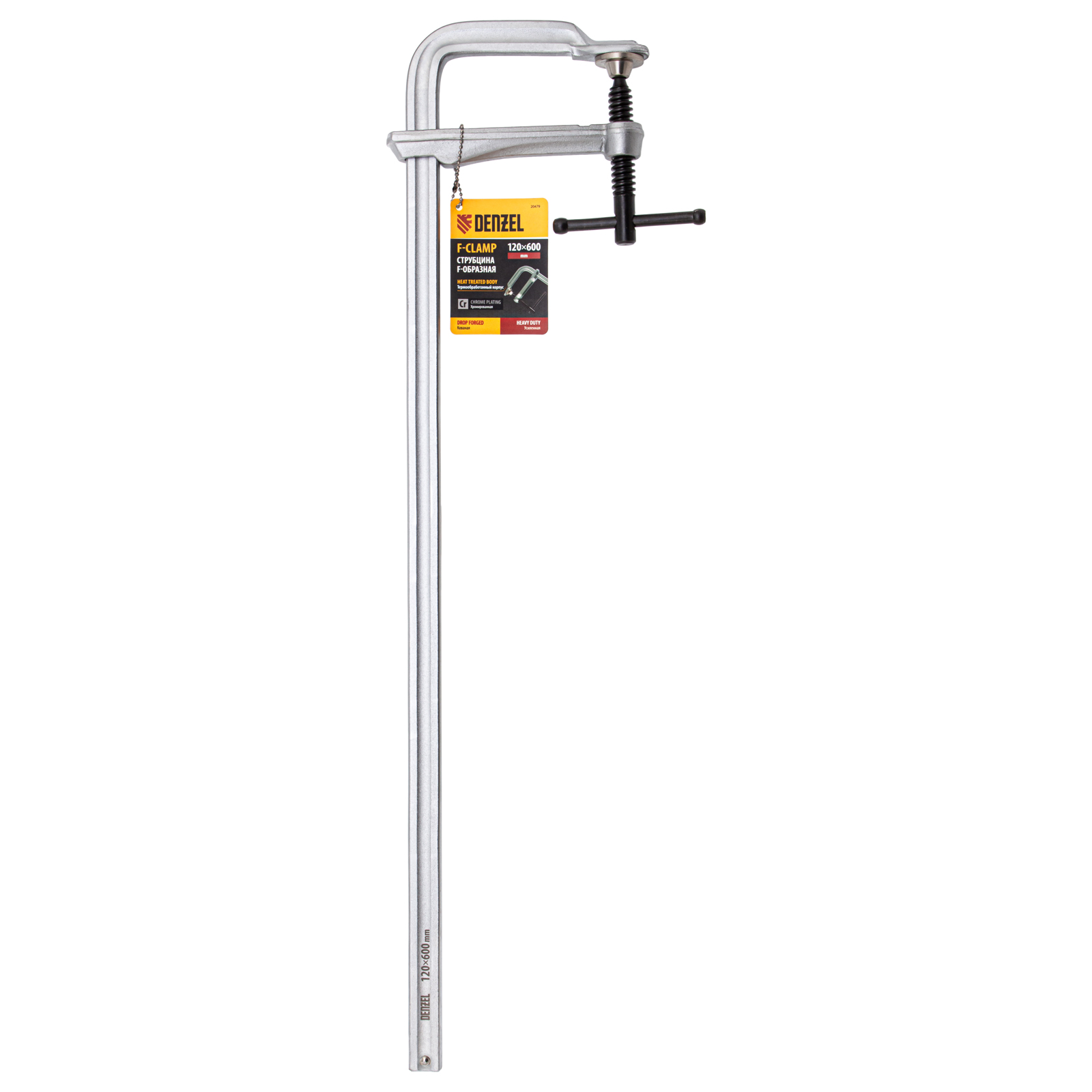 Кованая F-образная струбцина Denzel 20479 с глубиной зажима 120 мм, усиленная, предназначена для фиксации деталей шириной до 600 мм и материалов при проведении слесарных, столярных и сварочных работ. Тавровый профиль обеспечивает устойчивость конструкции к изгибу, что позволяет фиксировать детали со значительным усилием. Струбцина подходит для профессионального применения.
