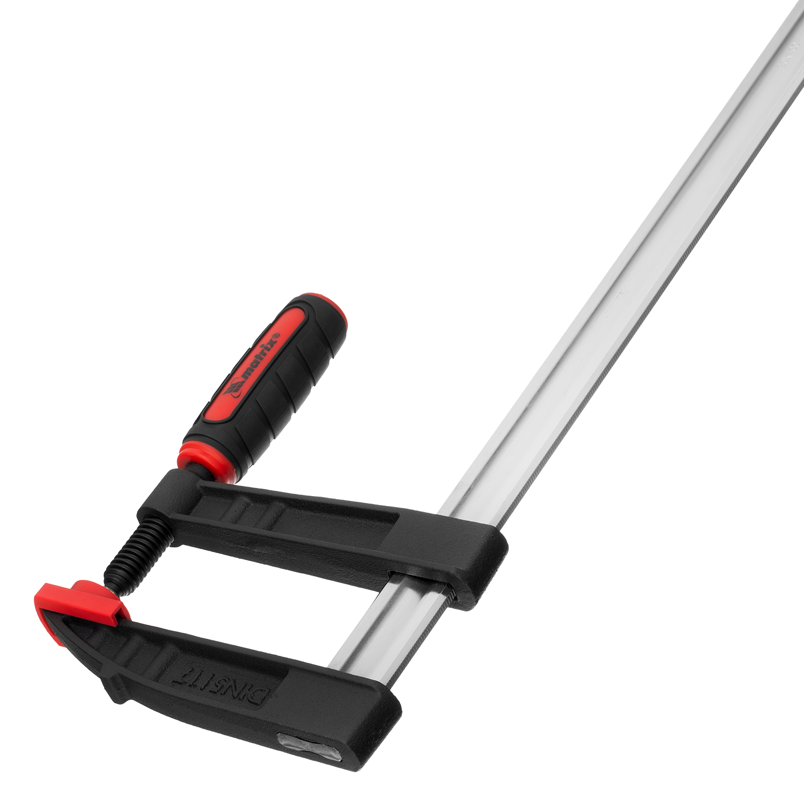 Усиленная F-образная струбцина Matrix 20411 размером 400 х 120 х 500 мм используется для зажима металлических, деревянных и других заготовок для их последующей обработки или сборки. Представляет собой штангу, на которой установлены 2 кронштейна — неподвижный и подвижный. Деталь помещается между ними и прижимается к губкам при помощи винтового зажима с трапециевидной резьбой. Величина захвата регулируется при помощи подвижного кронштейна и может достигать 400 мм. Струбцину используют для проведения слесарных и столярных работ. Металлическая конструкция выдерживает высокую температуру, поэтому инструмент пригодится для выполнения сварочных работ (перед началом необходимо снять пластиковые накладки с губок).