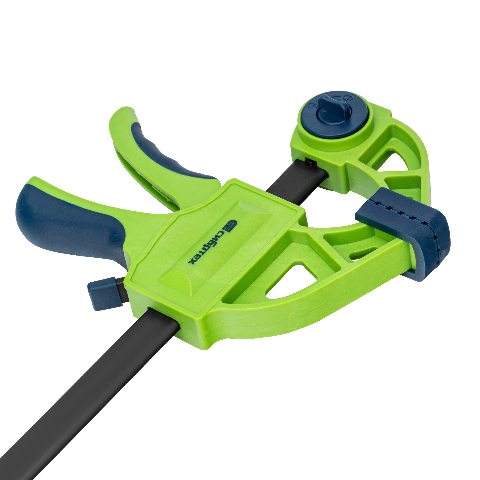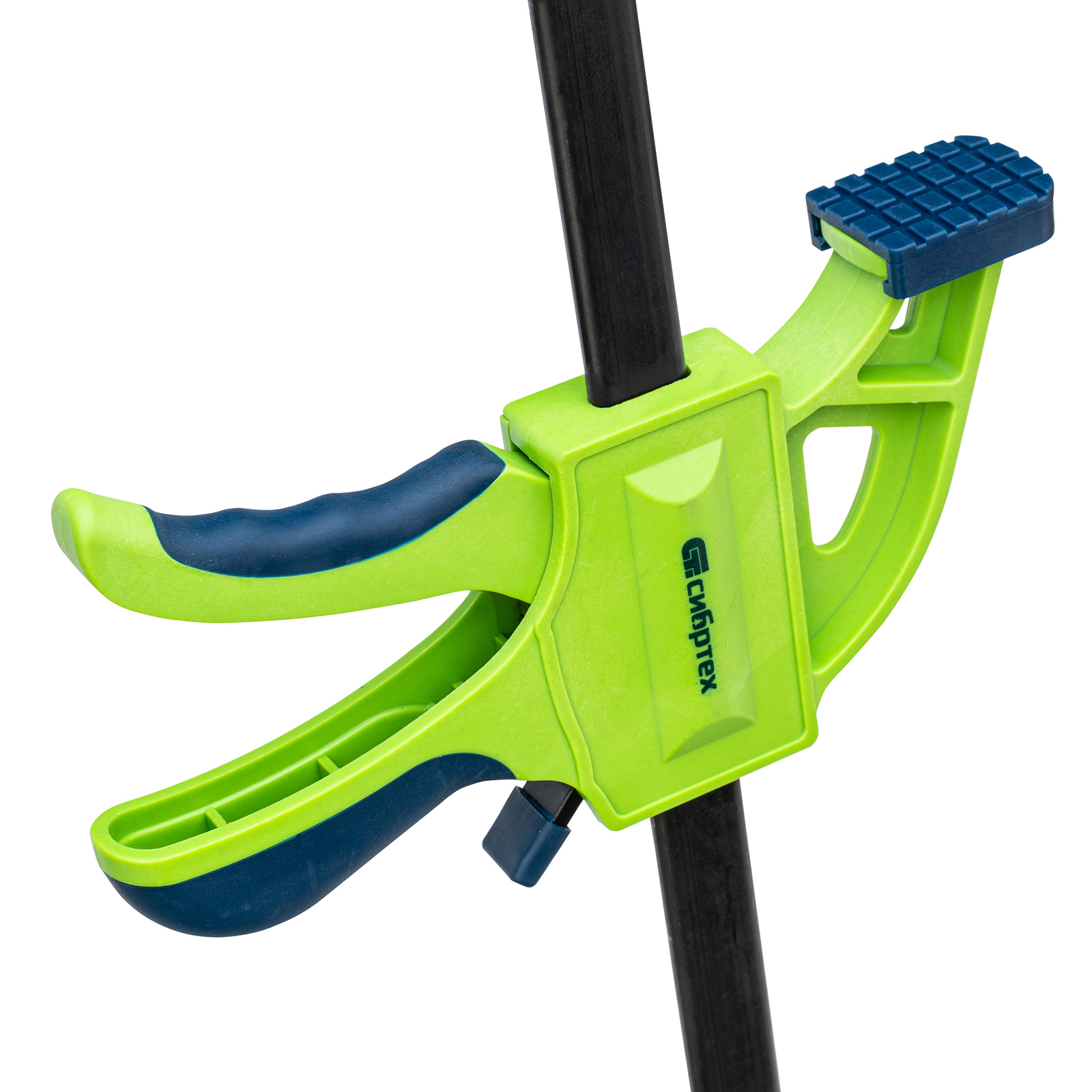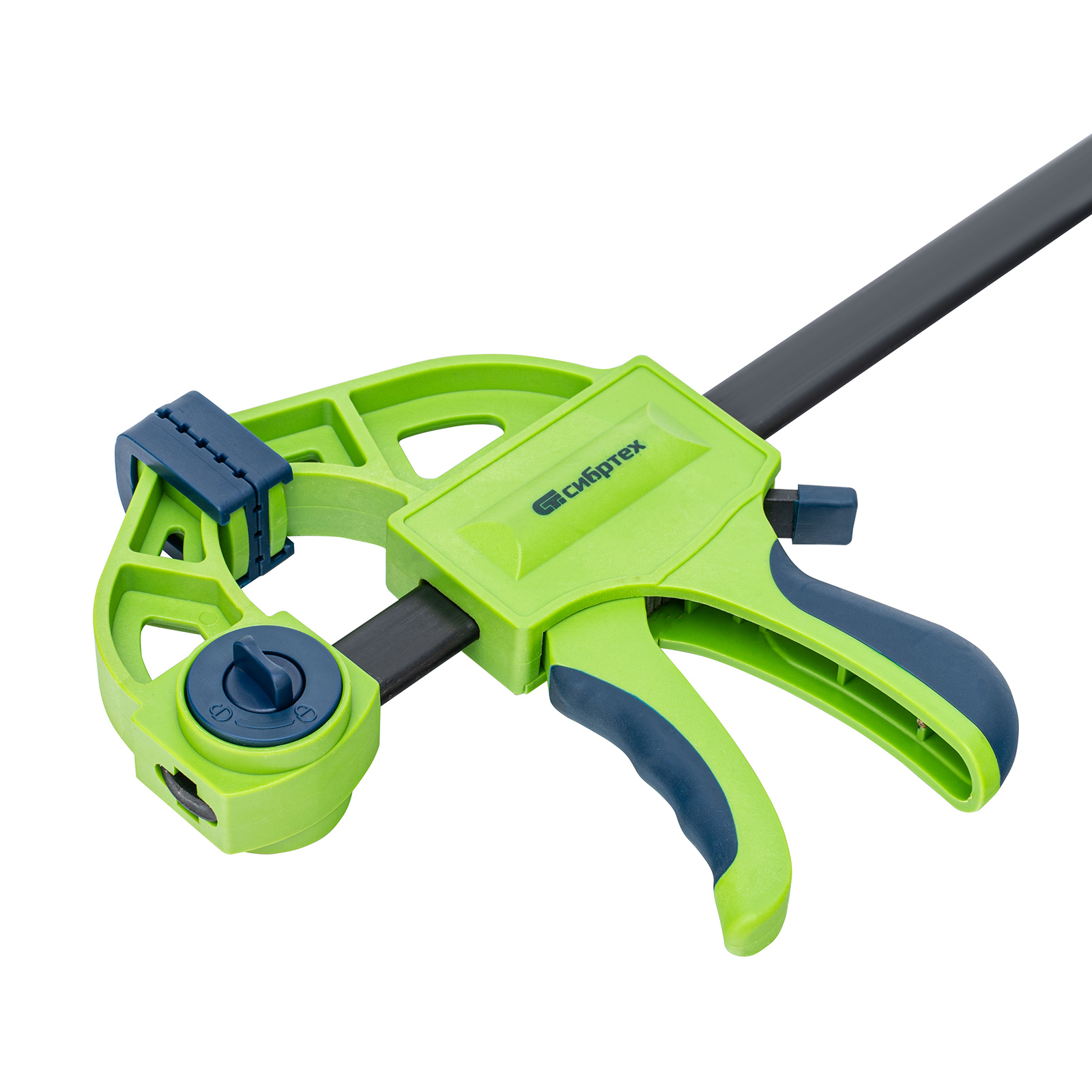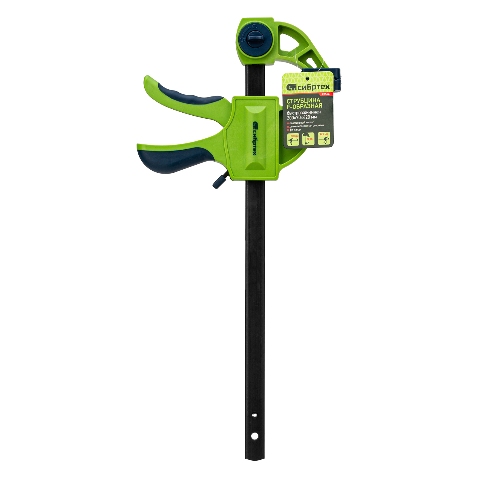 F-образная быстрозажимная струбцина Сибртех 20564 длиной 420 мм, с шириной и глубиной зажима 200 и 70 мм соответственно, в пластиковом корпусе, с фиксатором и двухкомпонентной рукояткой, позволяет зажимать заготовки для их дальнейшей обработки или сборки. Помогает решать множество задач благодаря оптимальной глубине зажима. Пластинчатый механизм пошагово перемещает подвижную губку вдоль направляющей до достижения максимально плотного захвата детали. Фиксатор препятствует движению губки в обратную сторону. Струбцина пригодится в столярной мастерской, а также будет полезна в быту.
