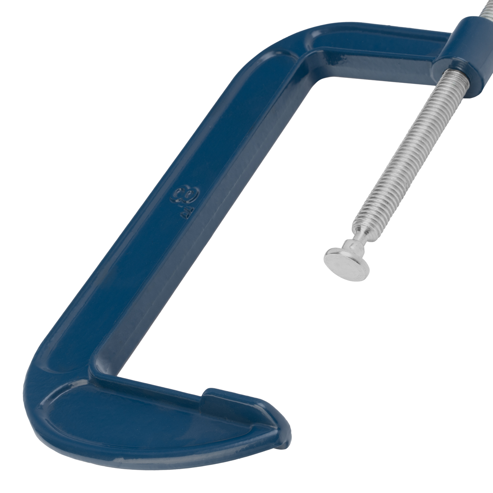 - Надежная фиксация деталей — струбцина имеет подвижный зажим, установленный на шаровой шарнир.