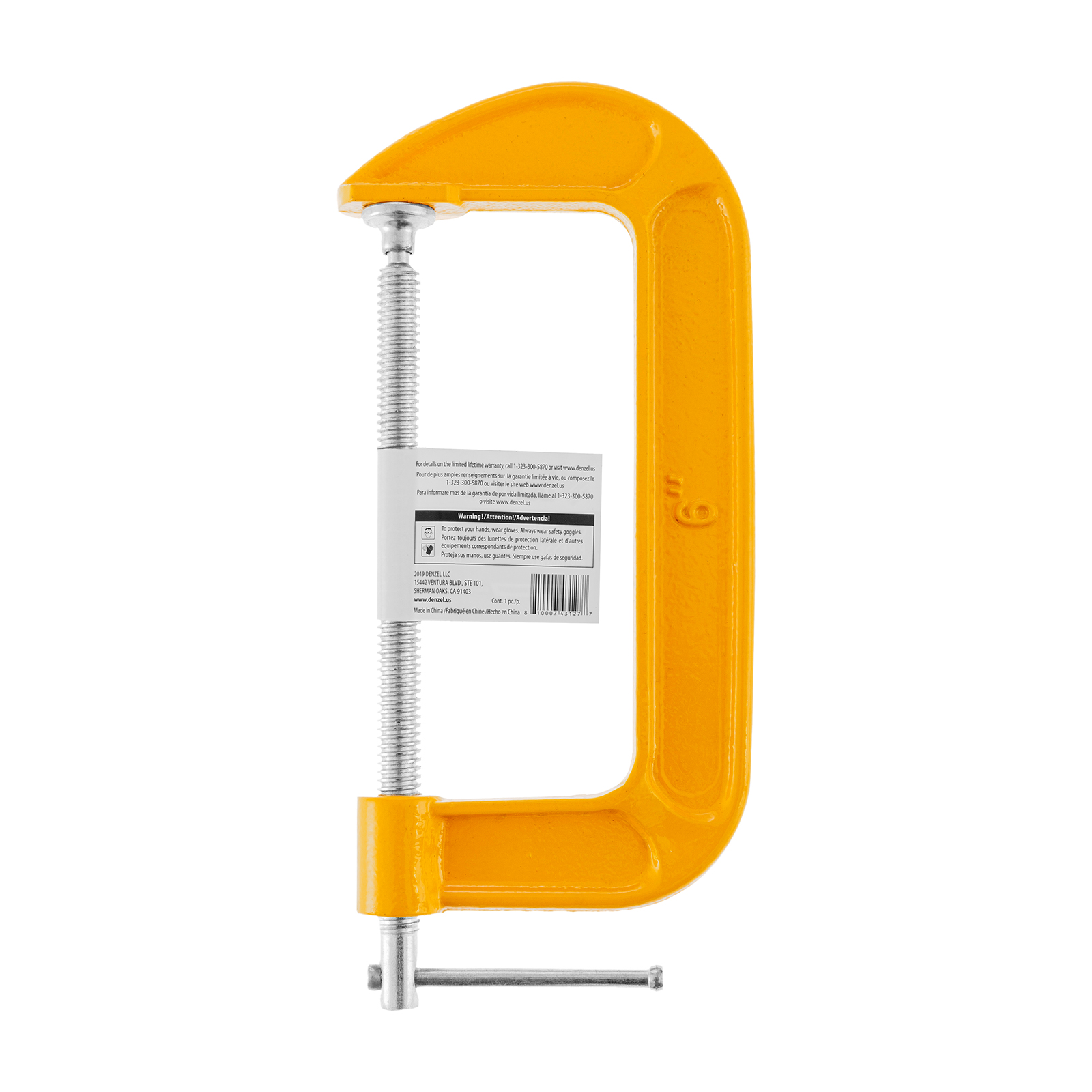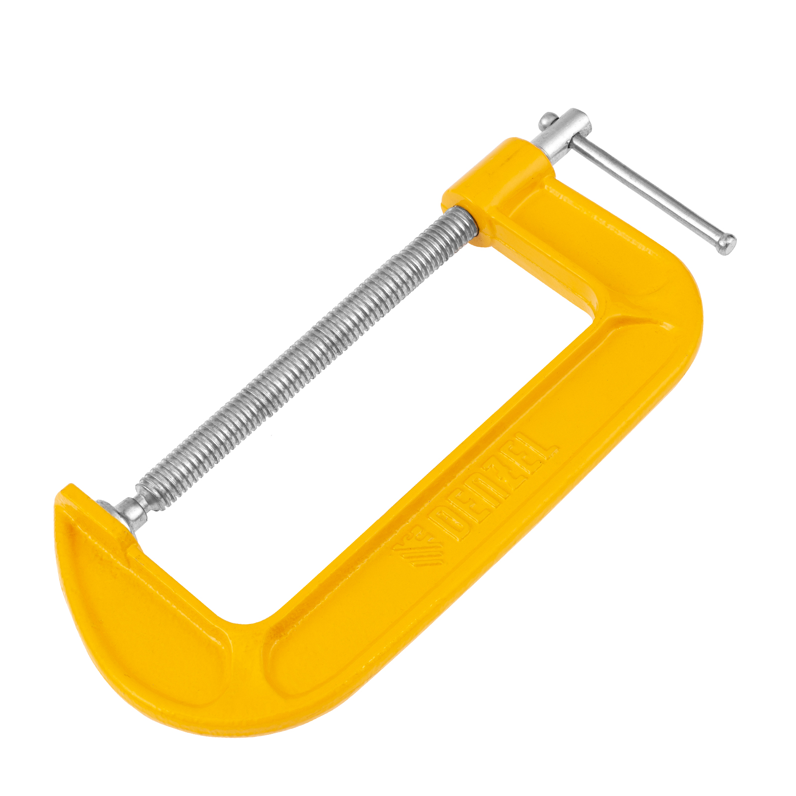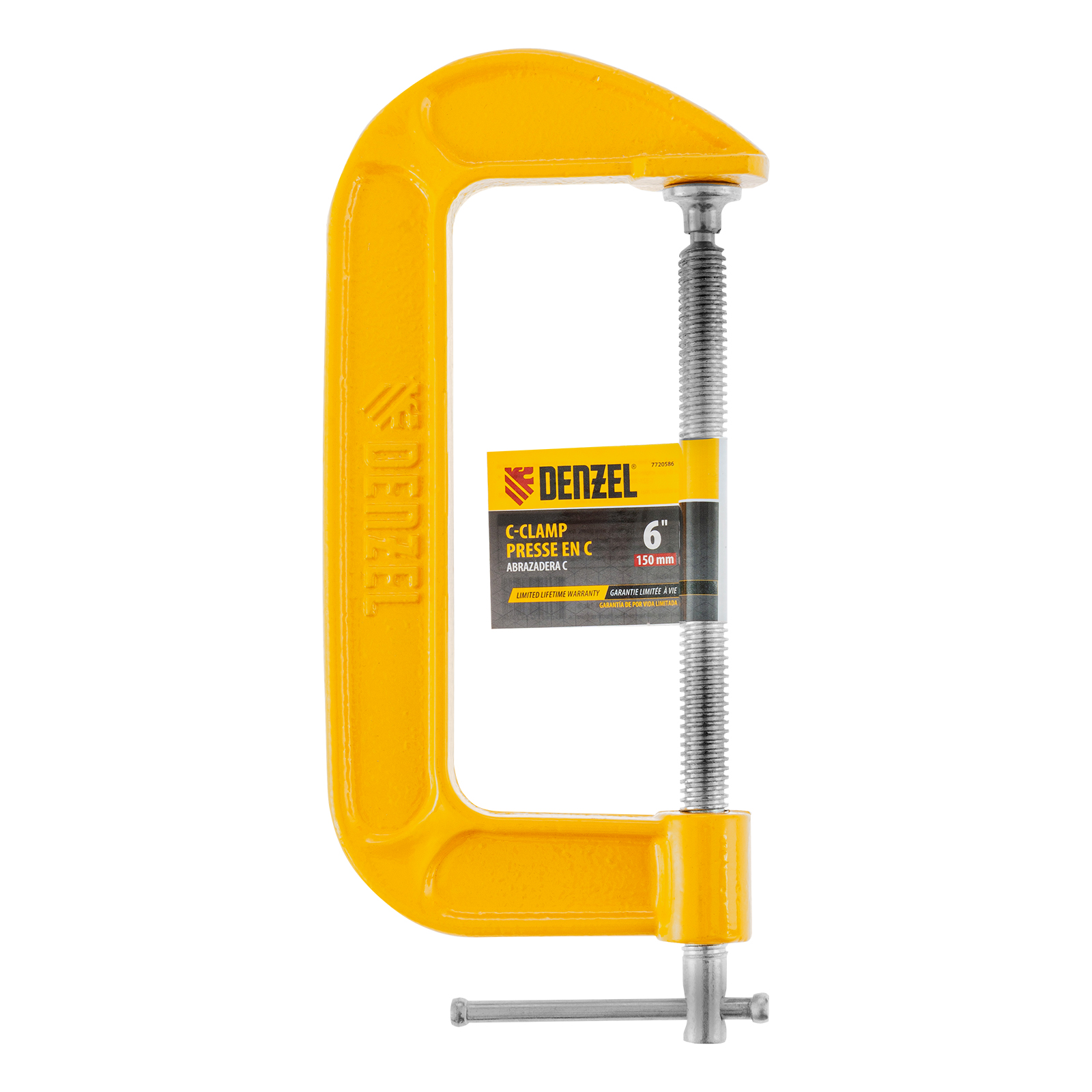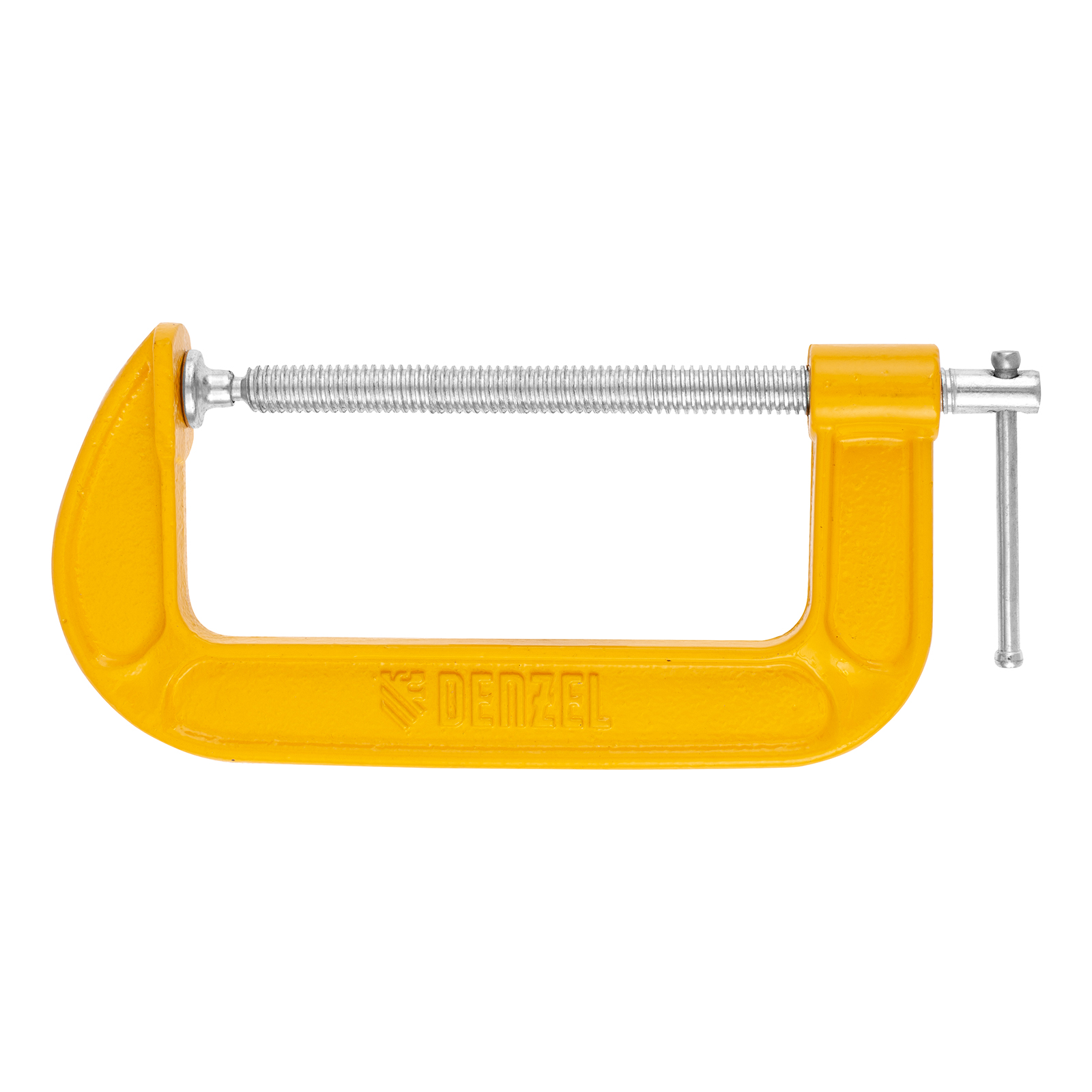 G-образная струбцина Denzel 7720586 с шириной захвата 6″ (150 мм) позволяет зажимать заготовки, фиксировать их на верстаке или станке. Упрощает склеивание деревянных деталей, а также сверление, резание и опиливание заготовок. Может использоваться во время сварочных работ. Струбцина применяется для металлообработки, востребована в столярном и слесарном деле, полезна в быту.