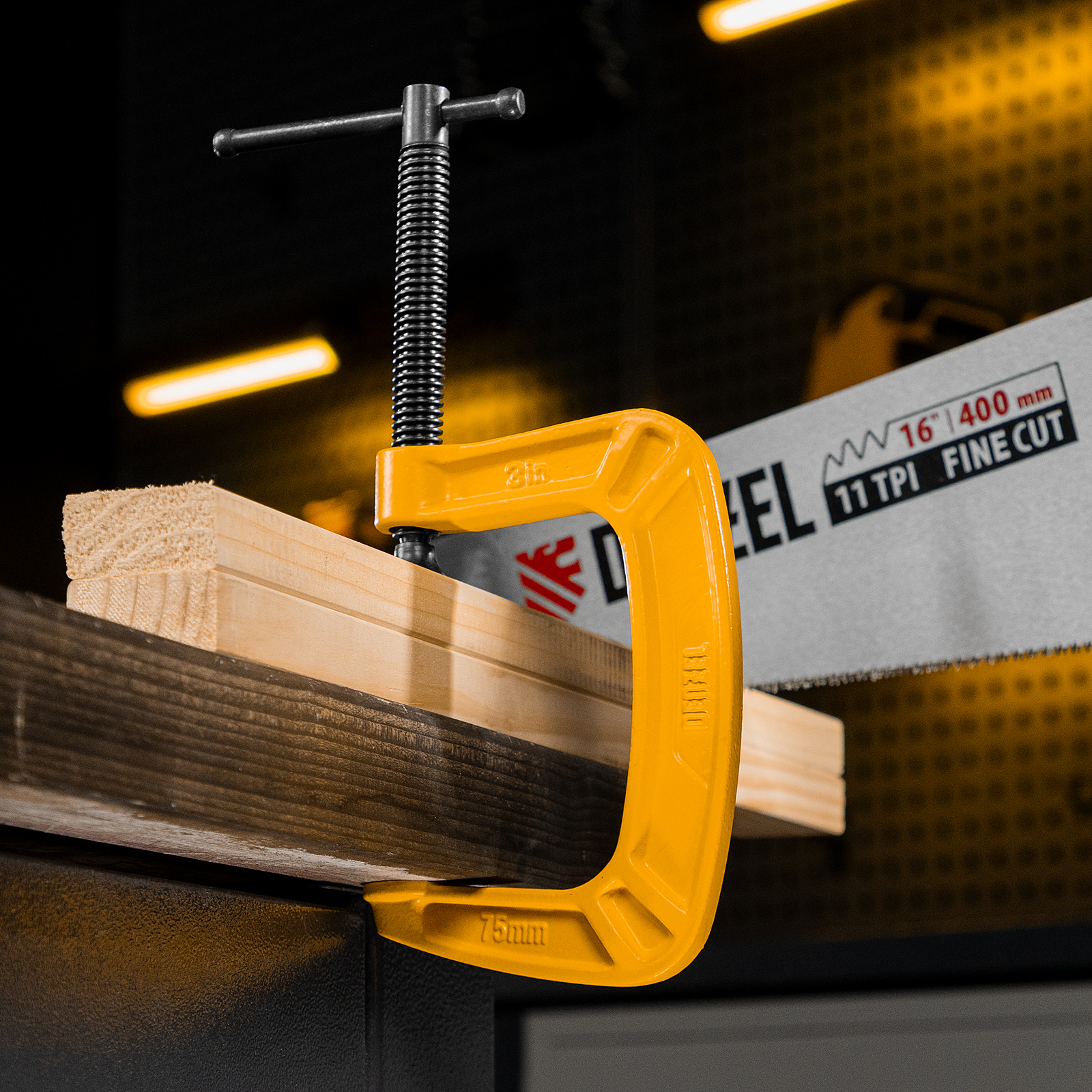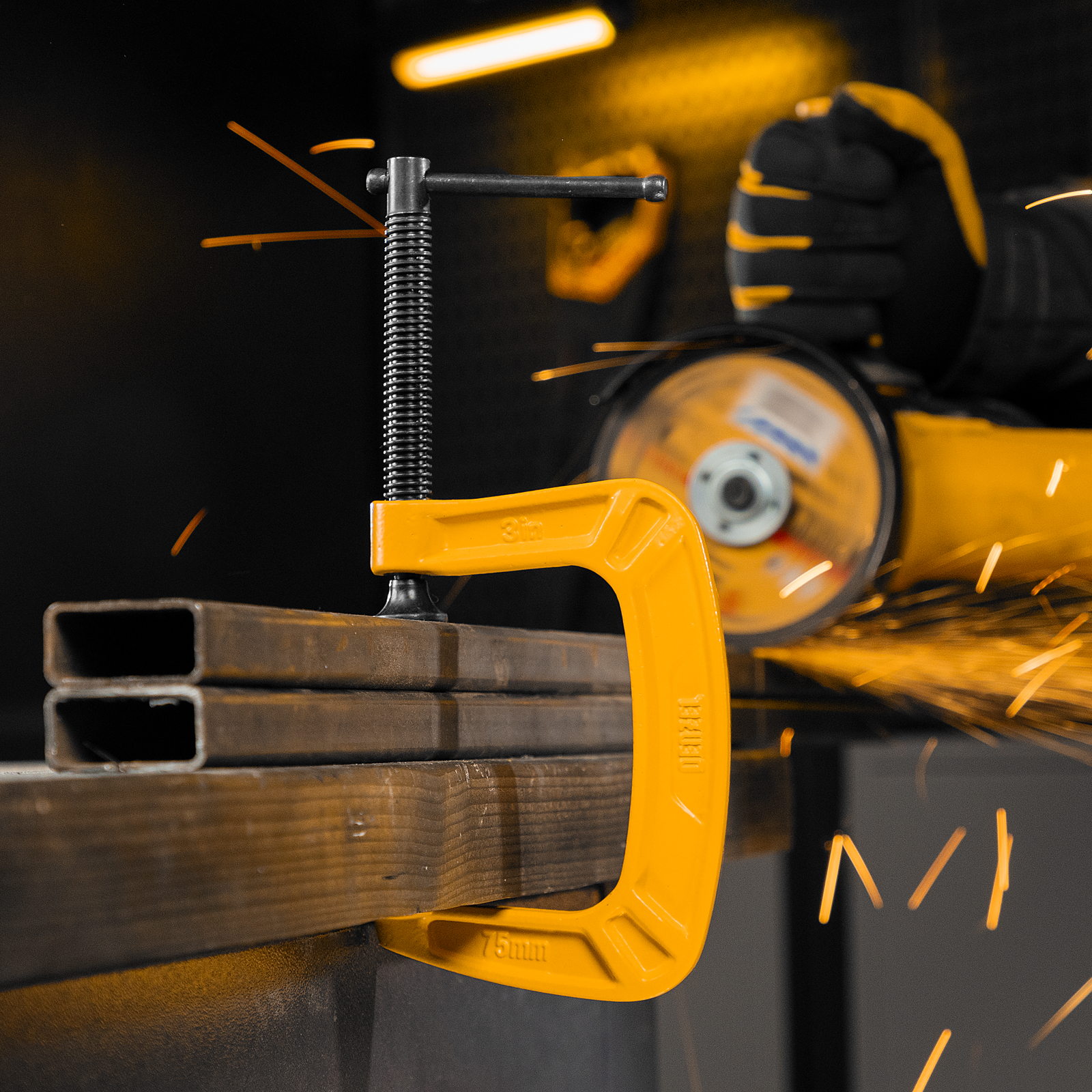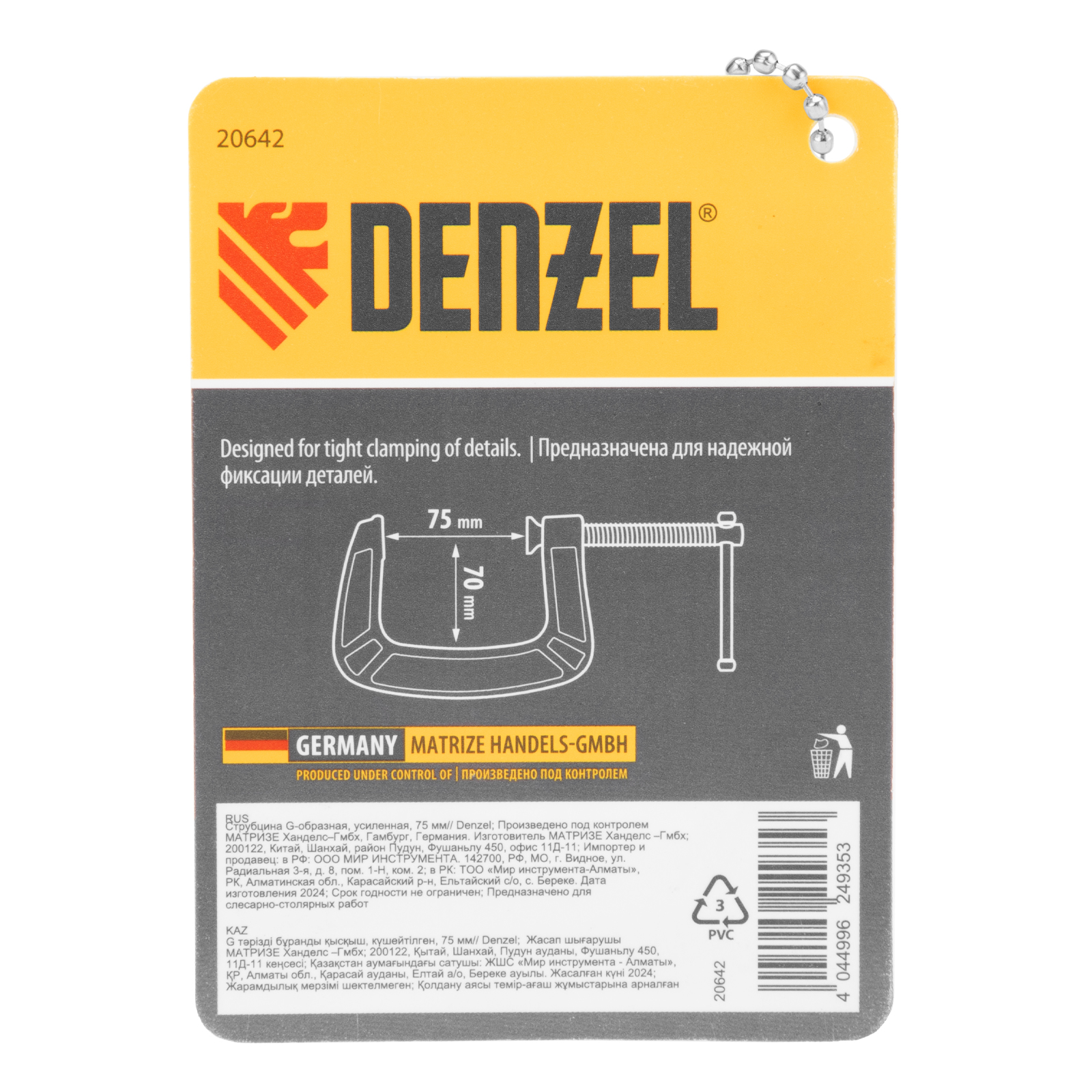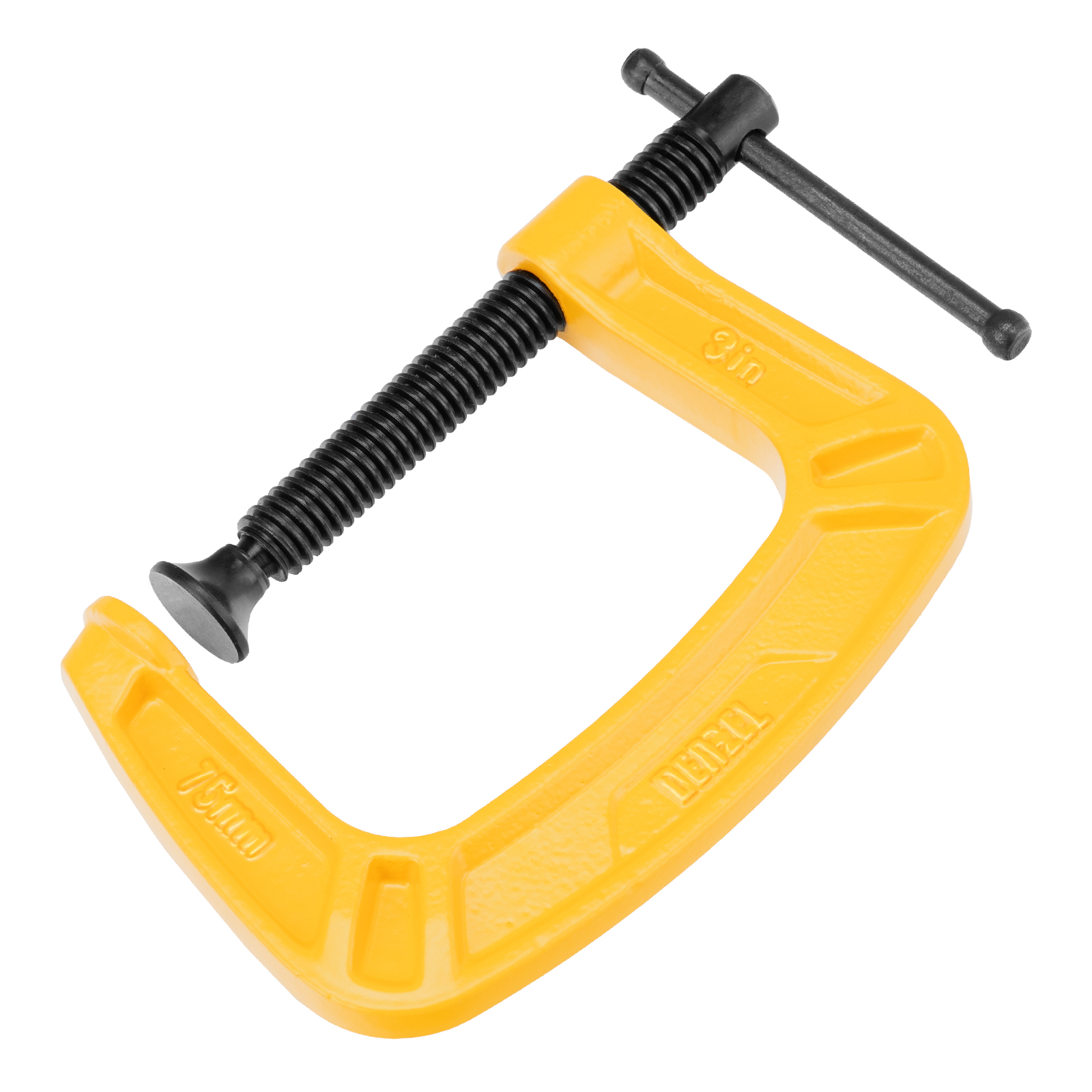 G-образная струбцина Denzel 20642 с максимальной шириной зажима 75 мм используется для фиксации заготовок или закрепления их на верстаке, станке или между собой. Позволяет склеивать детали, а также сверлить их, шлифовать, опиливать и проводить другие работы. Может использоваться во время выполнения сварочных работ. Винт с трапециевидной резьбой обеспечивает надежную фиксацию предметов. Струбцина применяется в слесарном и столярном деле, будет полезна также домашнем хозяйстве.