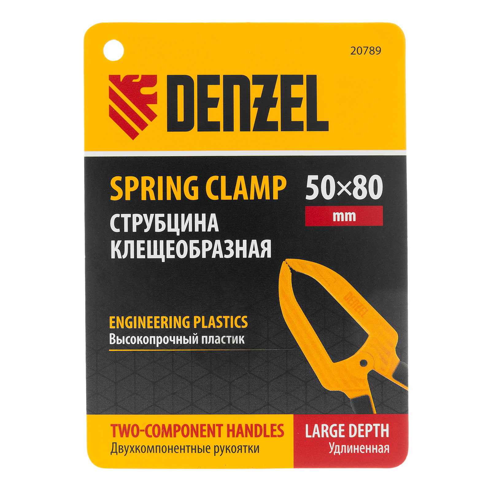 Струбцина клещеобразная удлиненная Denzel 20789 с глубиной зажима 80 мм, с двухкомпонентными рукоятками, способна удерживать детали толщиной до 50 мм. Будет полезна при склеивании или разметке заготовок. Подвижные губки с углублениями на прижимных поверхностях позволяют максимально точно позиционировать деталь при захвате. Струбцина пригодится в столярной мастерской, дома или на даче.