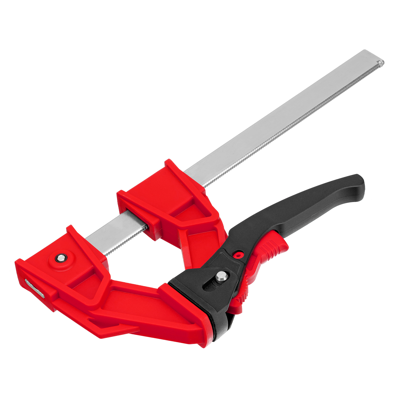 Дополнительные возможности — съемную неподвижную губку можно перевернуть на рейке, превратив струбцину в распорный инструмент.
