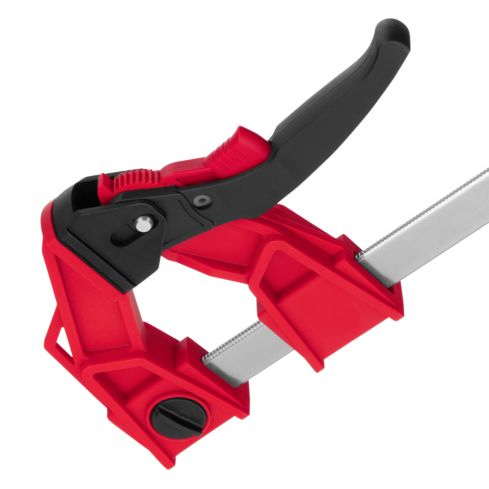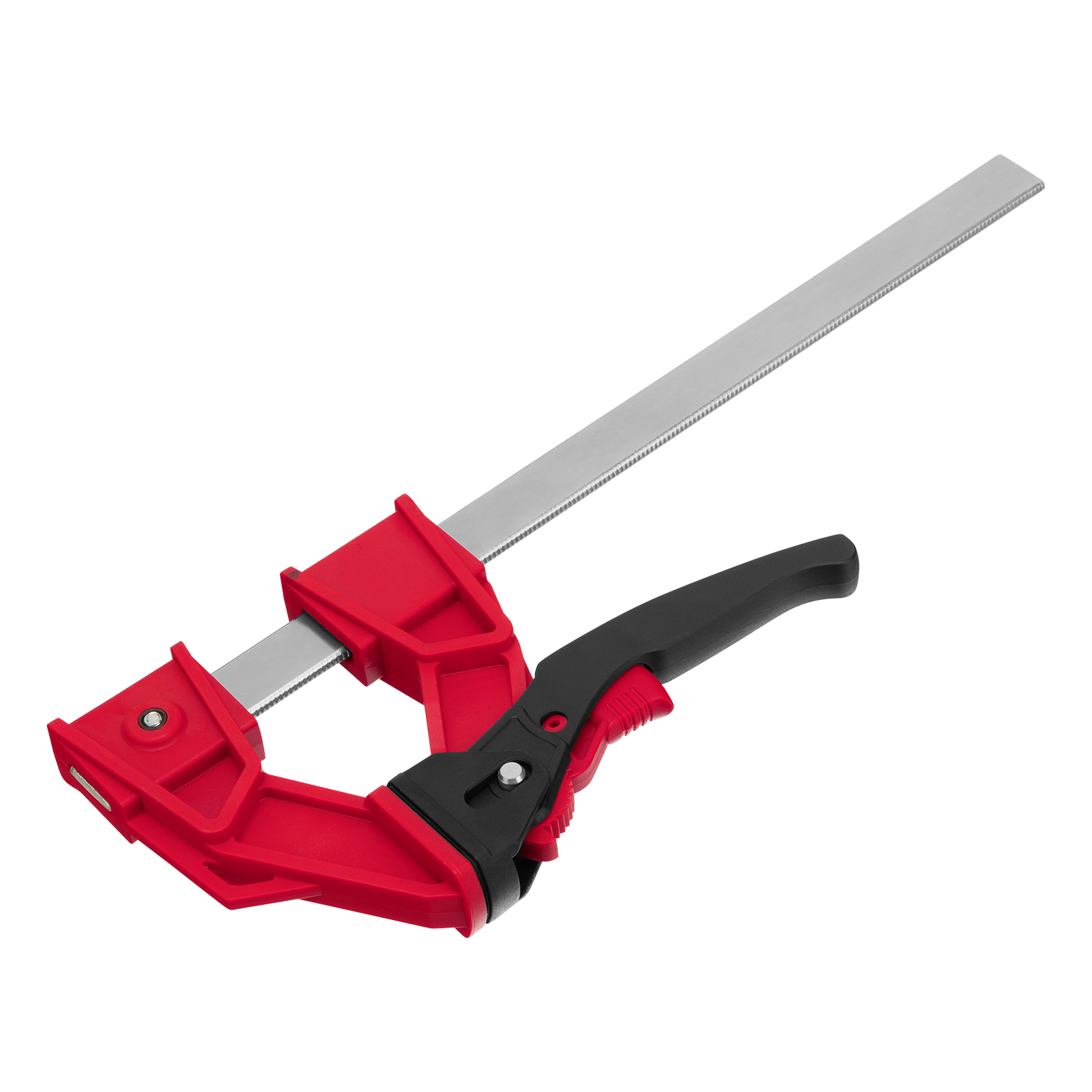 Дополнительные возможности — съемную неподвижную губку можно перевернуть на рейке, превратив струбцину в распорный инструмент.