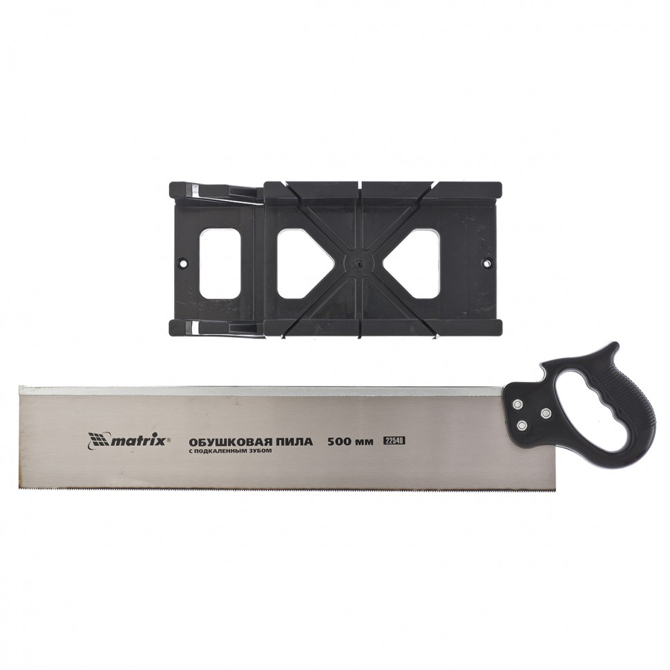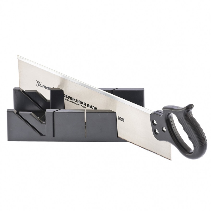 Пластмассовое стусло позволяет выполнять точные пропилы под углами 45 и 90 градусов к горизонтали, а также 45 градусов к вертикали. Количество зубьев на дюйм – 13. Мелкий зуб позволяет работать по композитным материалам, ламинату и дереву. В комплект входит обушковая пила с мелким подкаленным зубом и пластмассовой рукояткой.