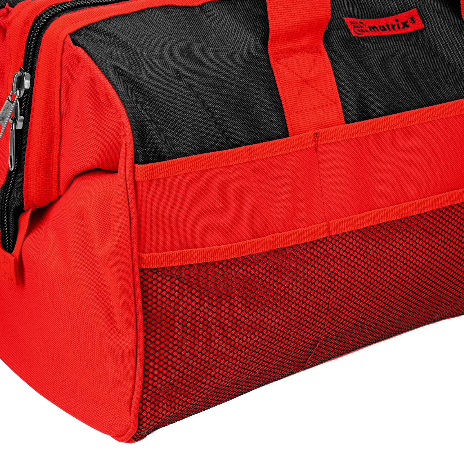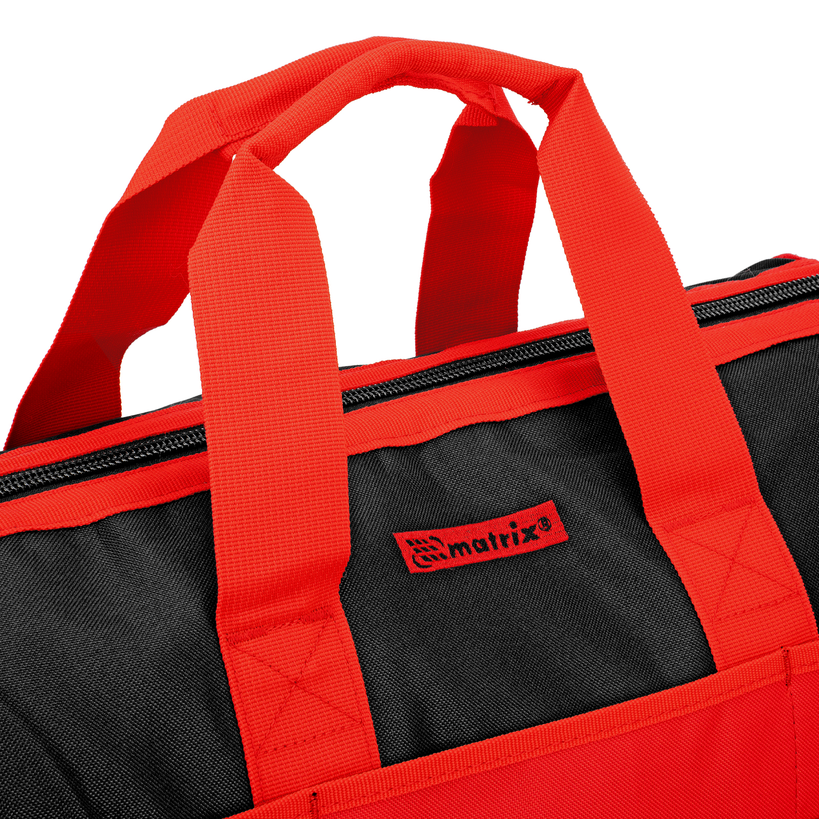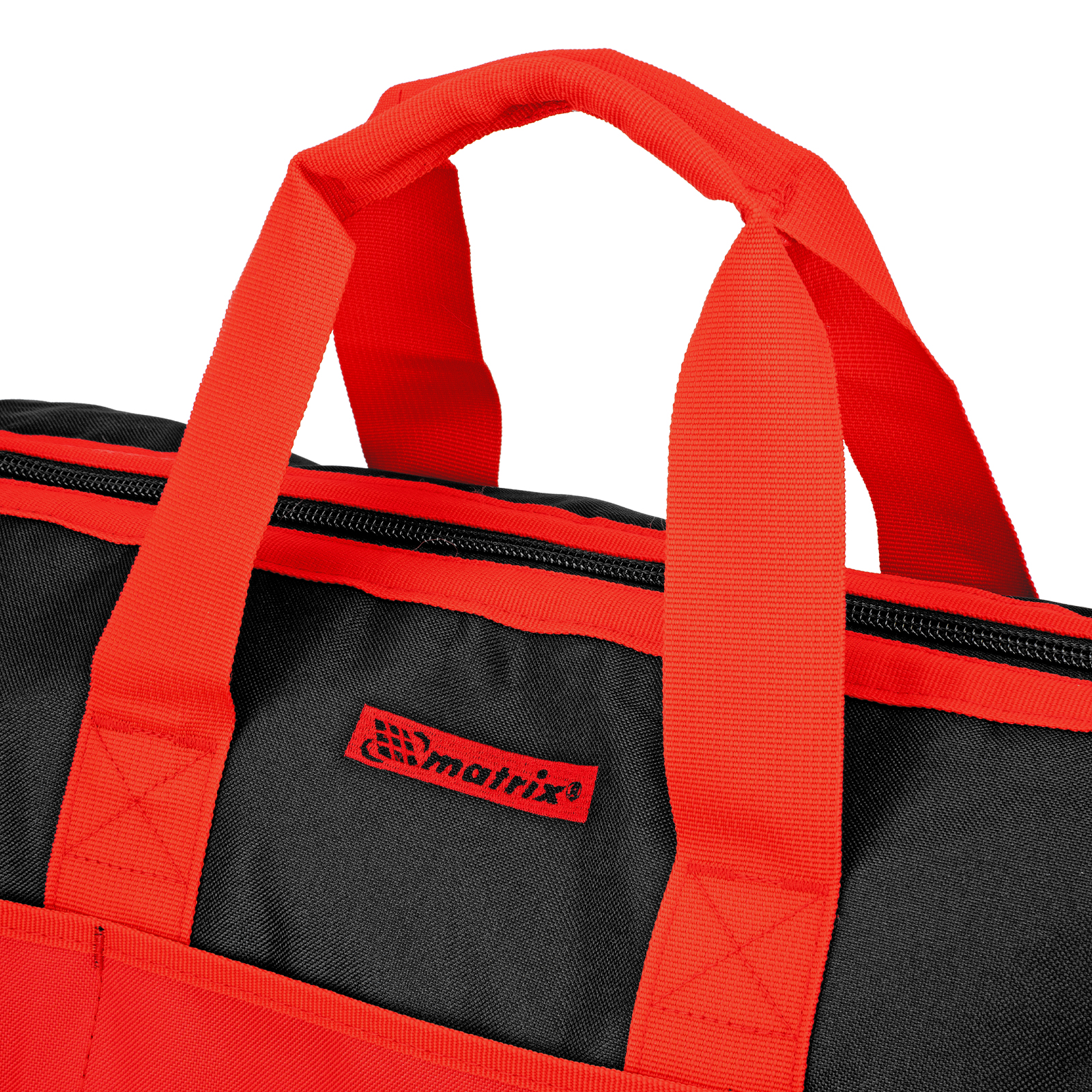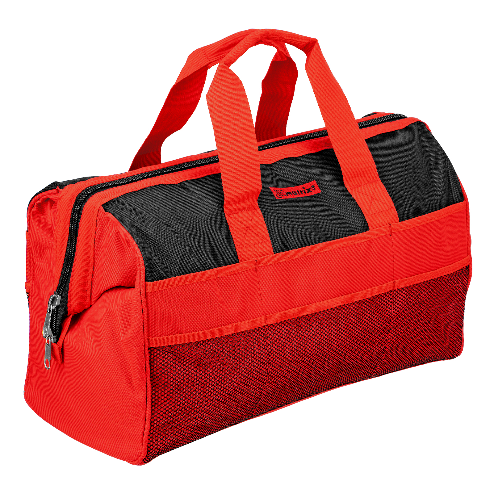 Сумка Matrix 90252 с 18 карманами, размером 510 х 210 х 360 мм, предназначена для транспортировки и хранения слесарных или столярных инструментов. Может использоваться для перевозки автопринадлежностей. В 18 карманах и вместительном основном отделении можно разместить инструменты разного размера. Сумка пригодится монтажнику, слесарю, строителю, будет полезна дома и в поездке.