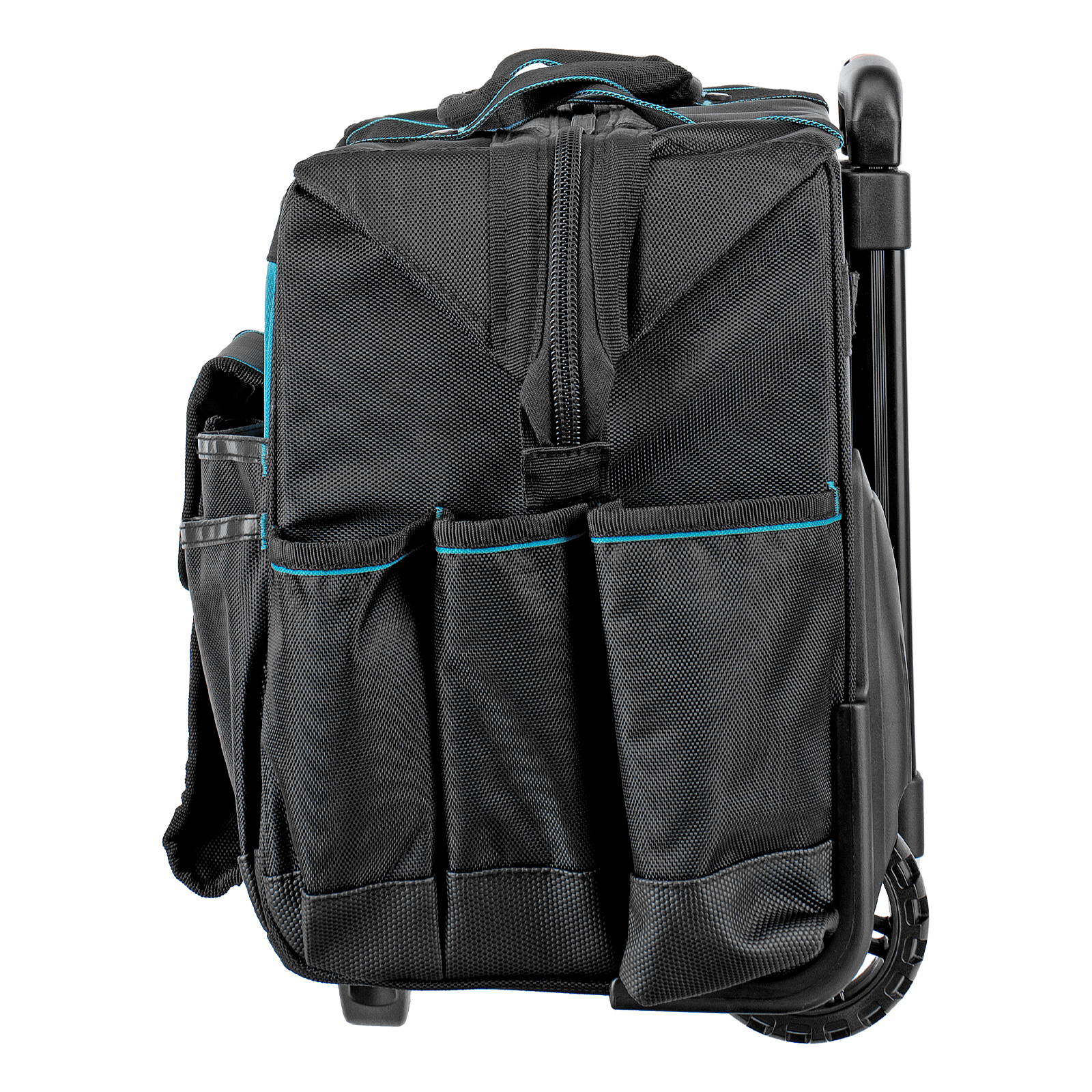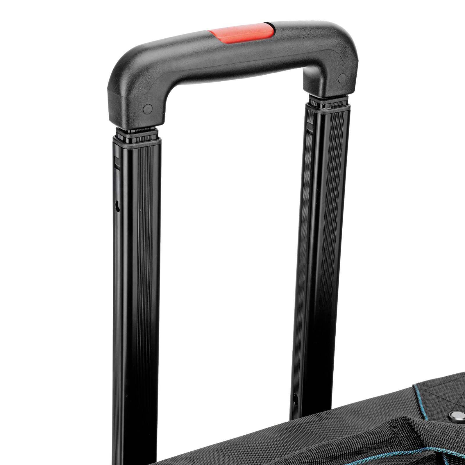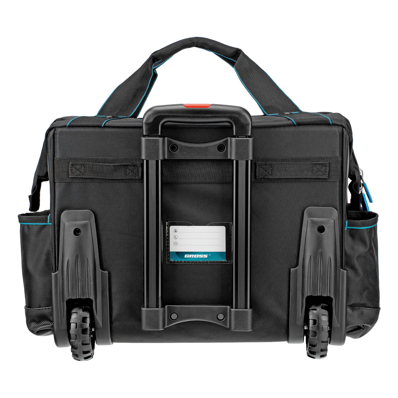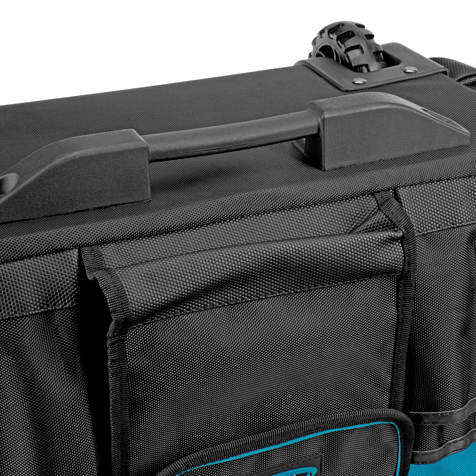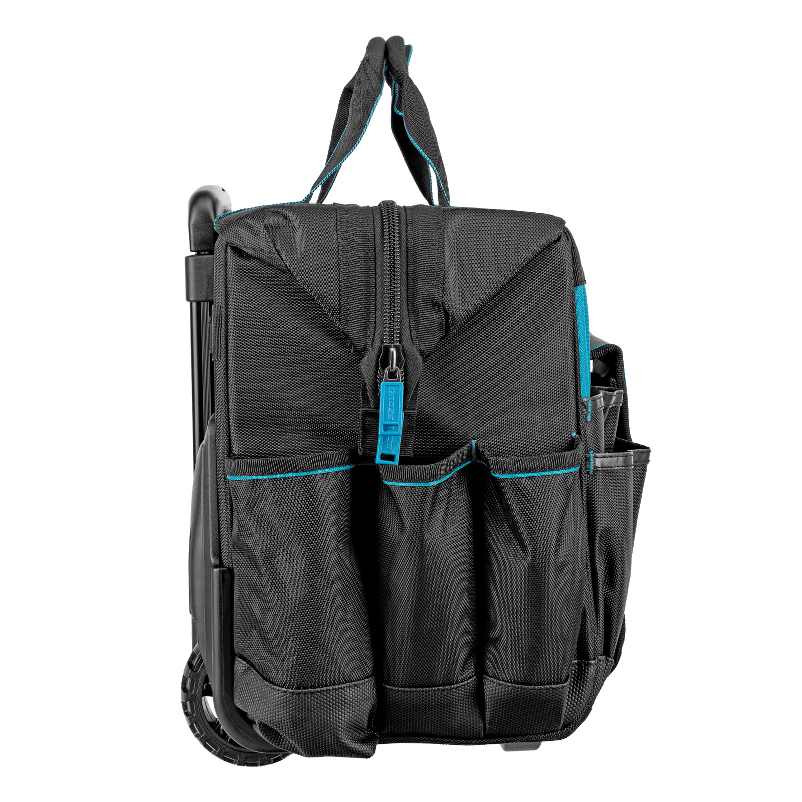 - Мобильность — сумку с инструментами легко перемещать при помощи колес и телескопической рукоятки.