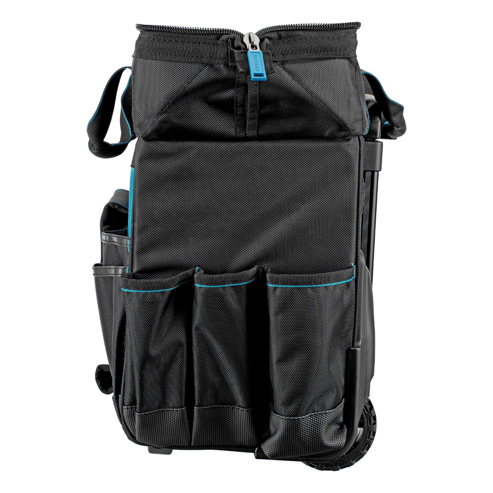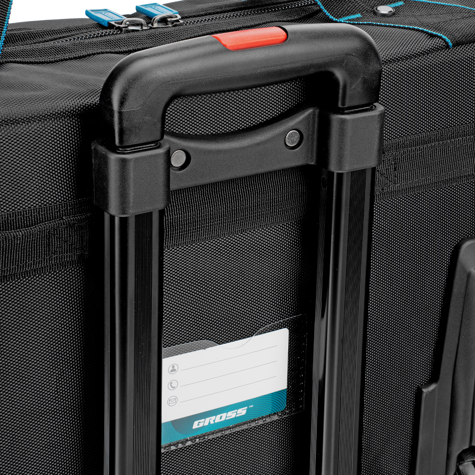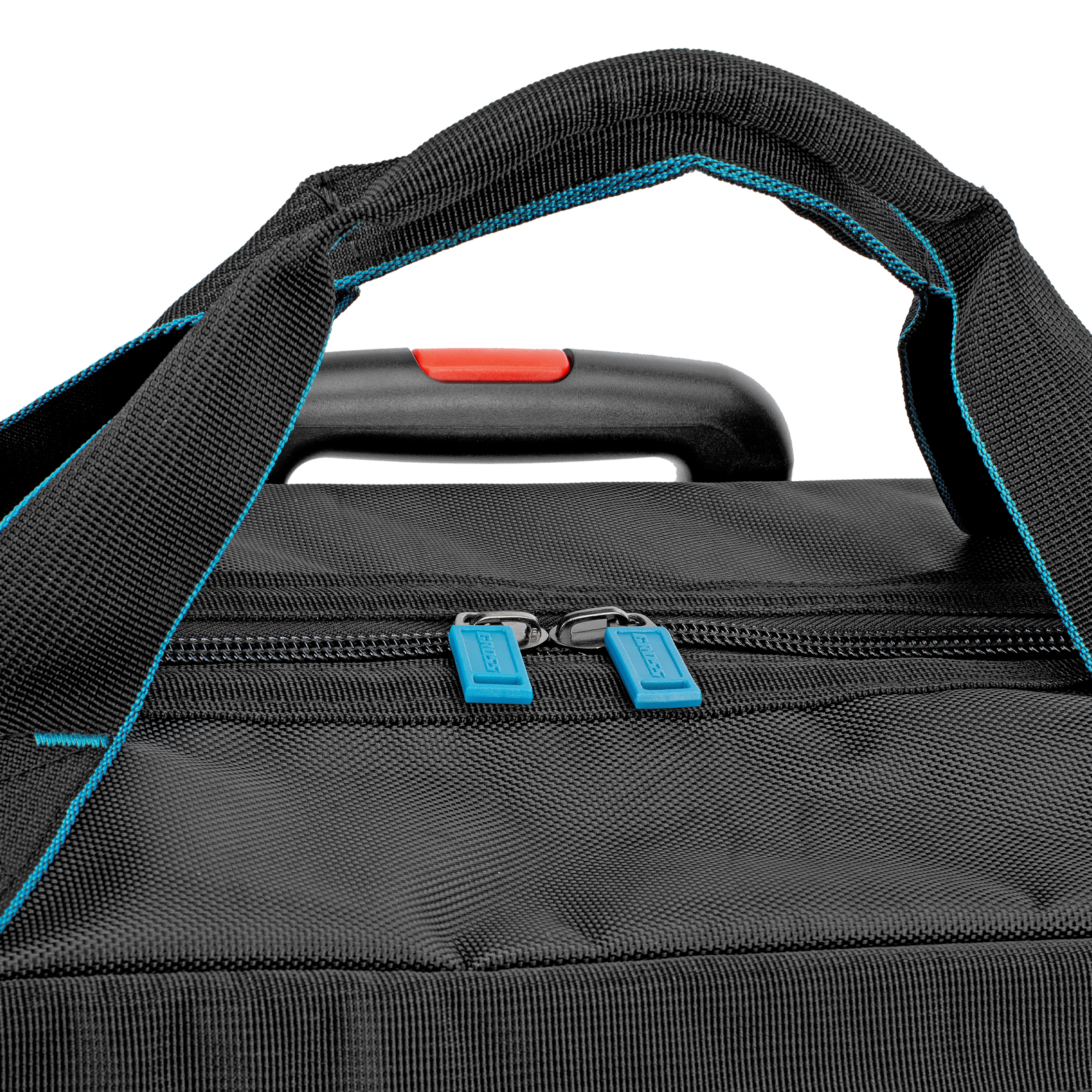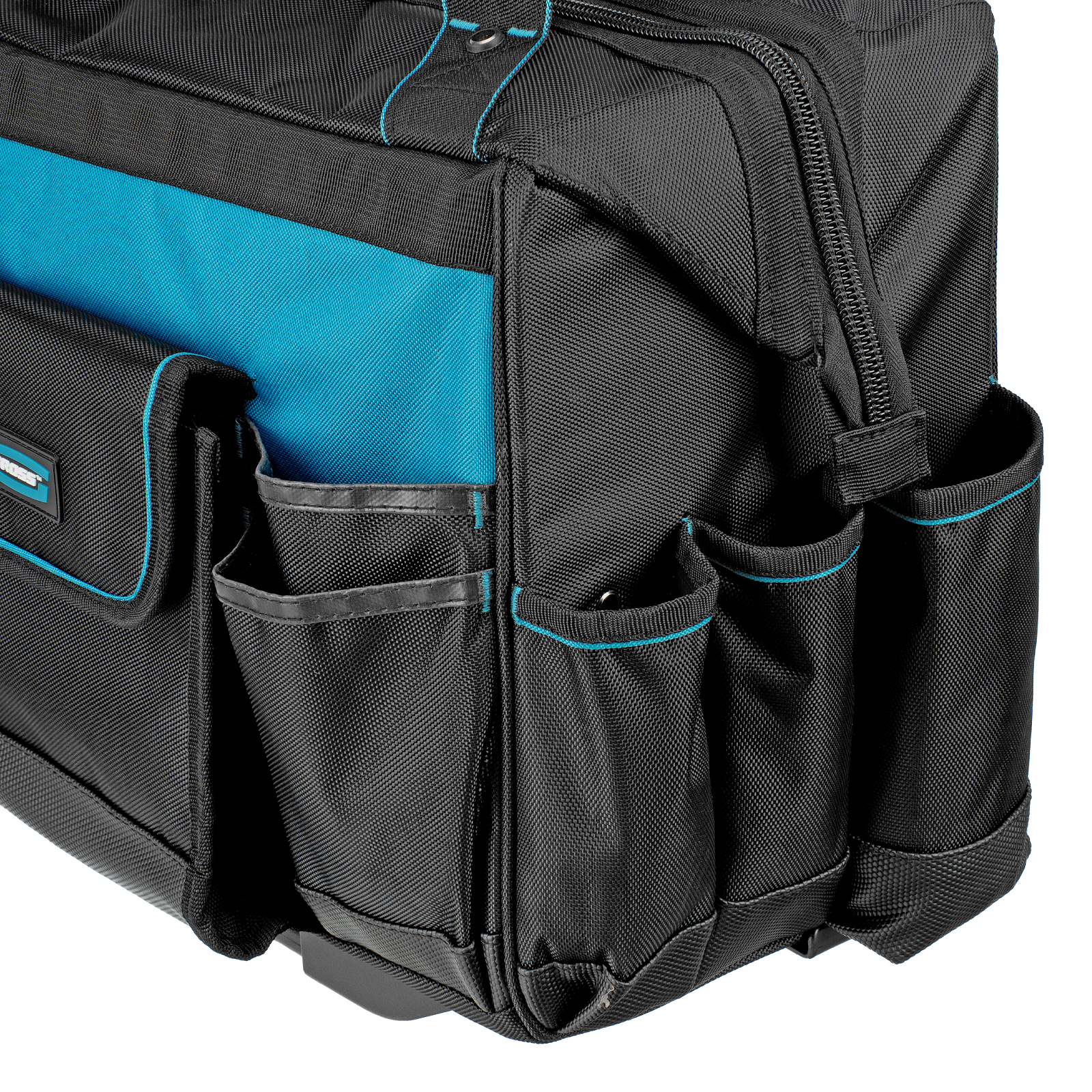 - Мобильность — сумку с инструментами легко перемещать при помощи колес и телескопической рукоятки.