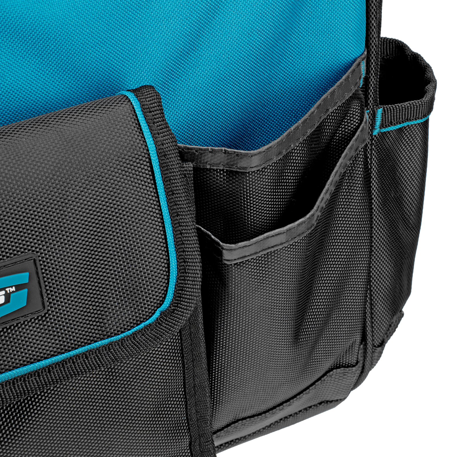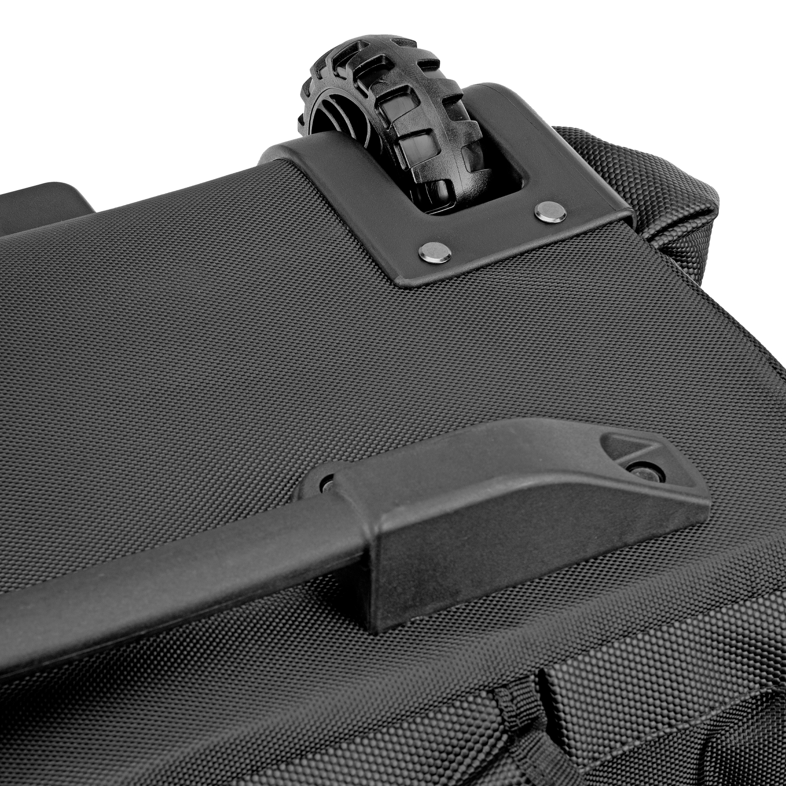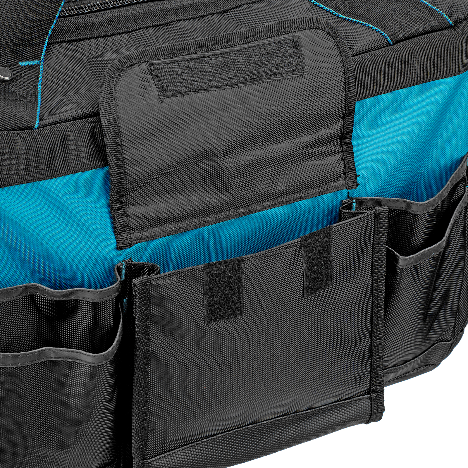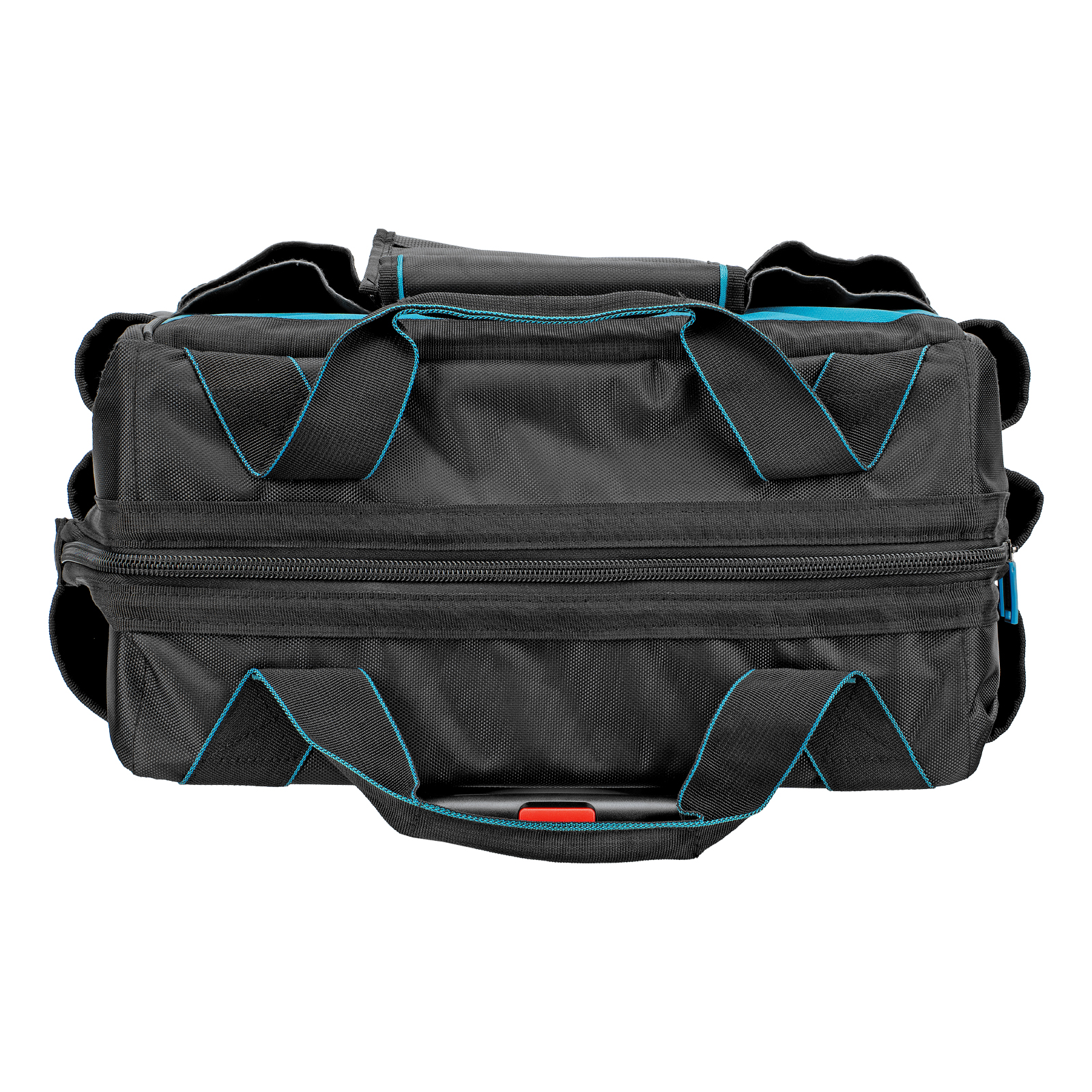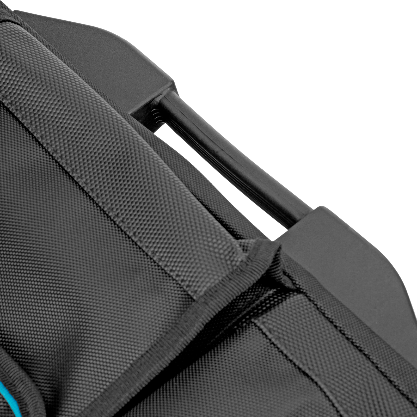 - Мобильность — сумку с инструментами легко перемещать при помощи колес и телескопической рукоятки.