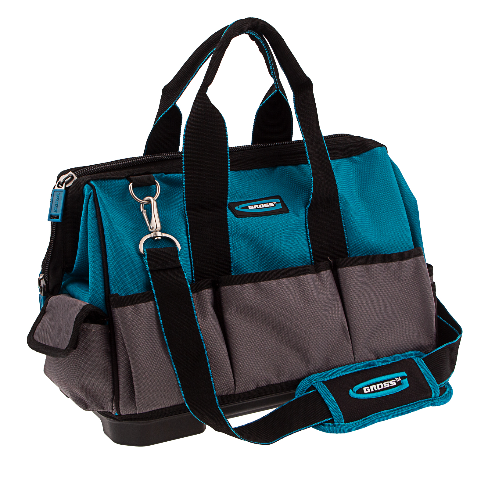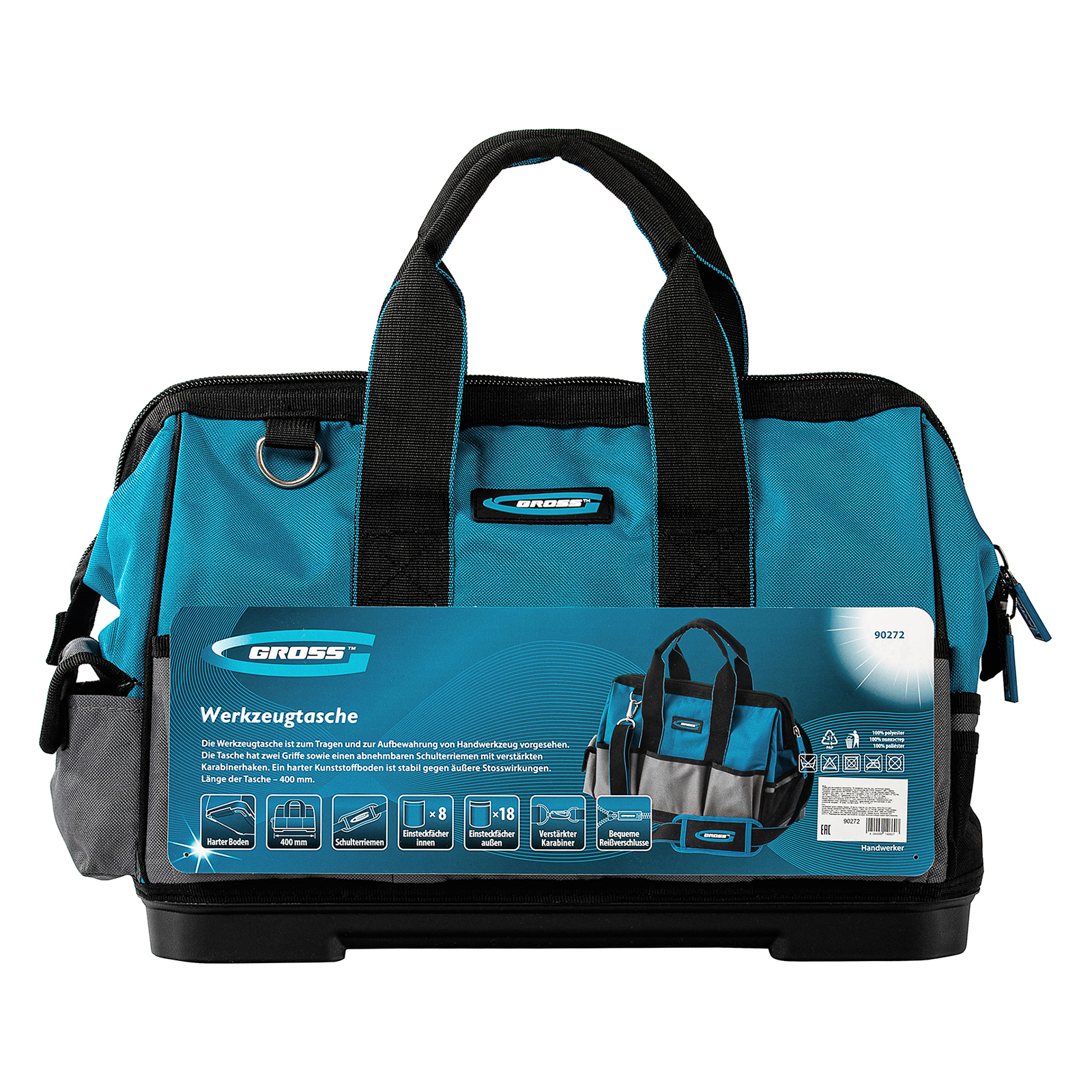 <p>Сумка для инструмента Gross Handwerker 90272 размером 400 х 225 х 310 мм, с 26 карманами, пластиковым дном и наплечным ремнем, будет полезна слесарям, монтажникам, электрикам, а также автомобилистам. В основном отделении, внутренних и внешних карманах поместятся все необходимые инструменты.</p><h2>Преимущества</h2><ul><li>Износостойкость — сумка изготовлена из прочного полиэстера.</li><li>Надежность — жесткое пластиковое дно выдерживает значительные нагрузки.</li><li>Удобное перемещение — сумка комплектуется плечевым ремнем с карабинами повышенной прочности.</li></ul>