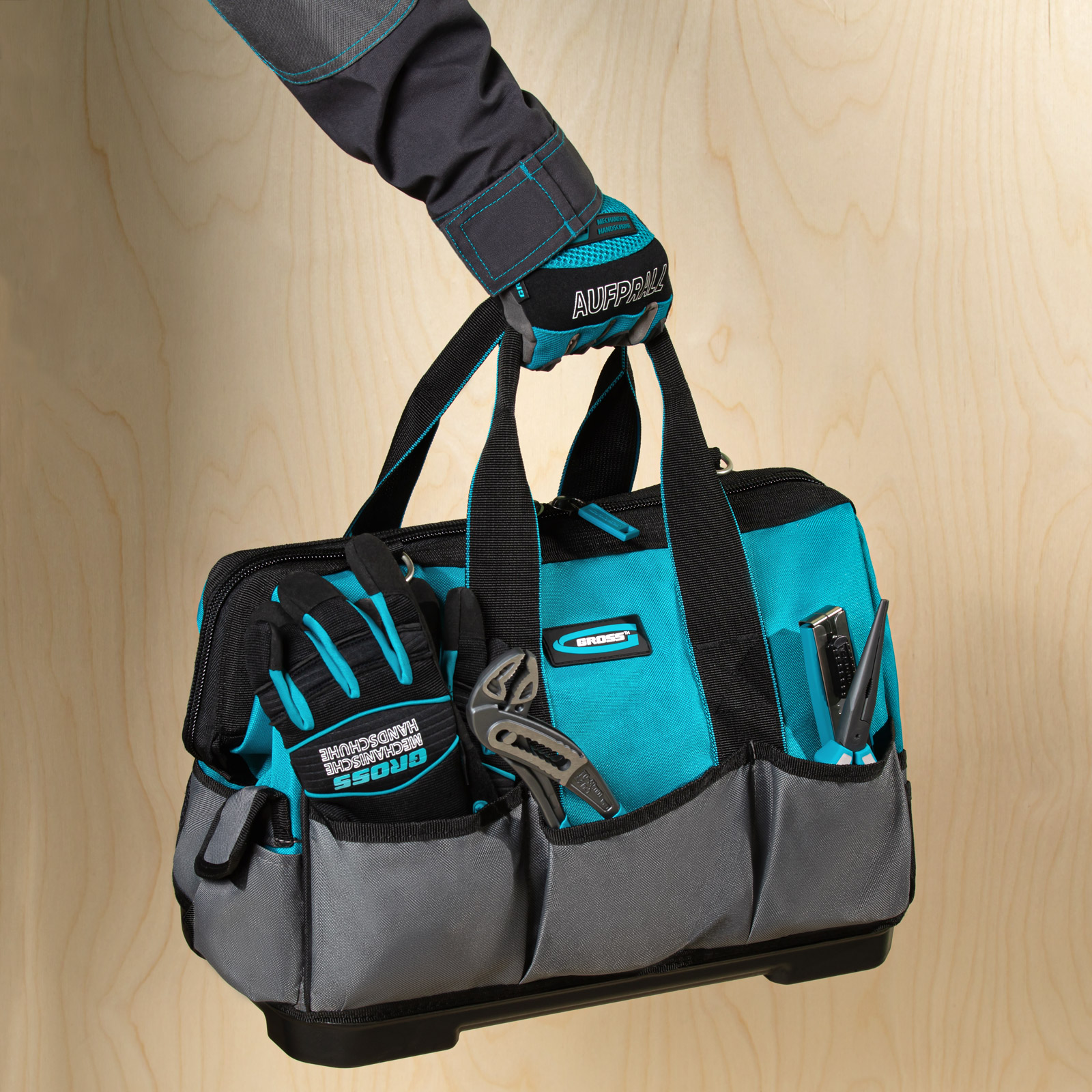 Сумка для инструмента Gross Handwerker 90272 размером 400 х 225 х 310 мм, с 26 карманами, пластиковым дном и наплечным ремнем, будет полезна слесарям, монтажникам, электрикам, а также автомобилистам. В основном отделении, внутренних и внешних карманах поместятся все необходимые инструменты.