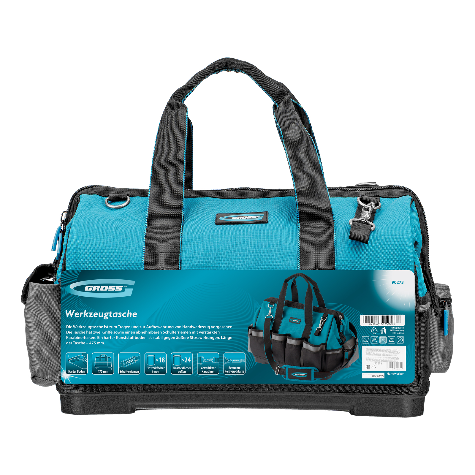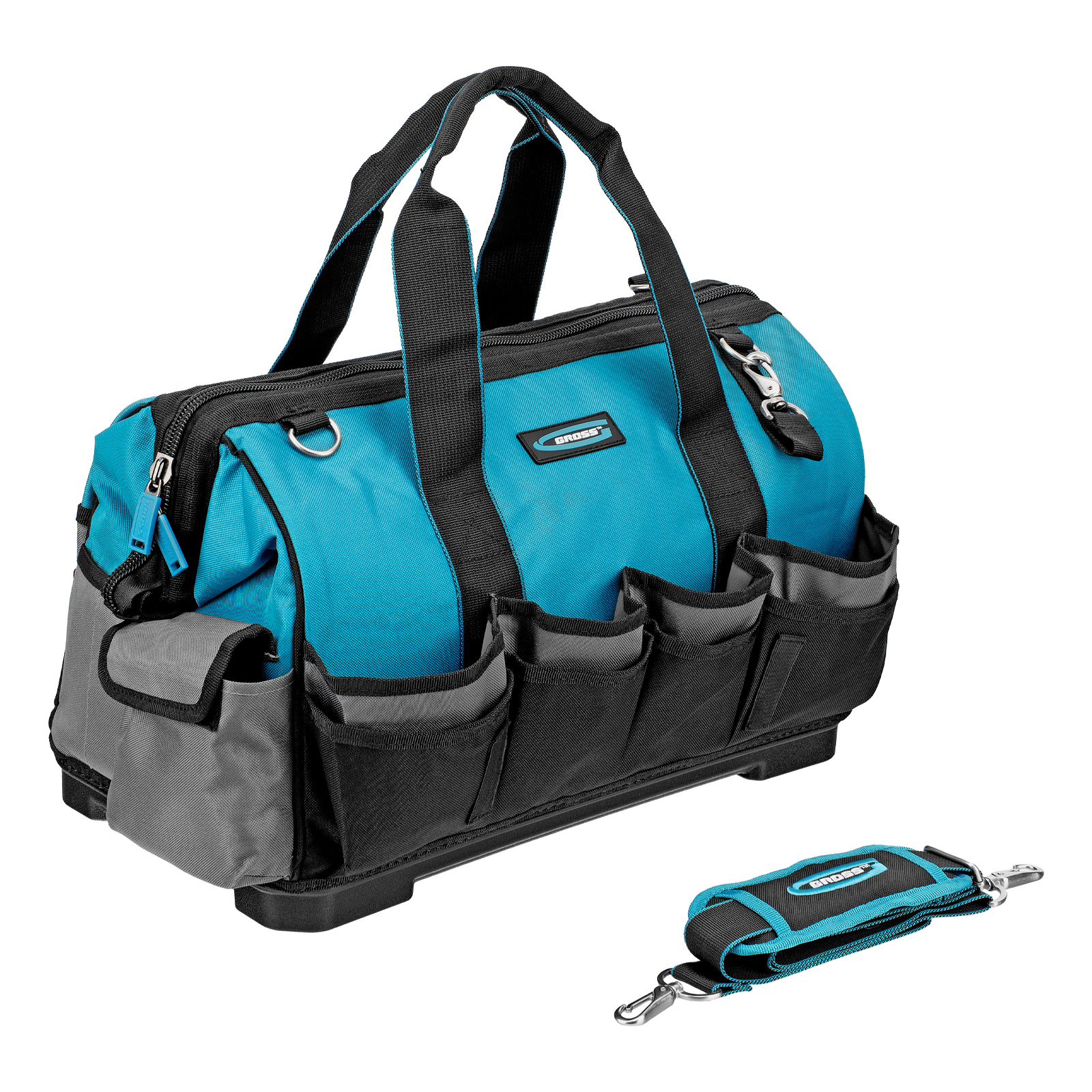 <p>Сумка для инструмента Gross Handwerker 90273 размером 475 х 260 х 360 мм, с 42 карманами, пластиковым дном и наплечным ремнем, будет полезна слесарям, монтажникам, электрикам, а также автомобилистам. В основном отделении, внутренних и внешних карманах поместятся все необходимые инструменты.</p><h2>Преимущества</h2><ul><li>Износостойкость — сумка изготовлена из прочного полиэстера.</li><li>Надежность — жесткое пластиковое дно выдерживает значительные нагрузки.</li><li>Удобное перемещение — сумка комплектуется плечевым ремнем с карабинами повышенной прочности.</li></ul>