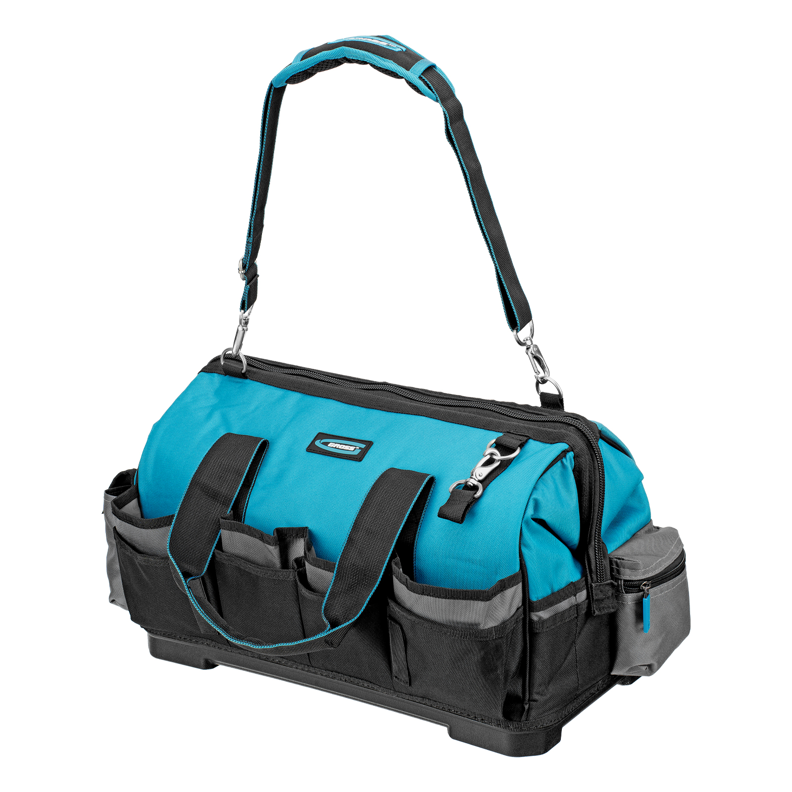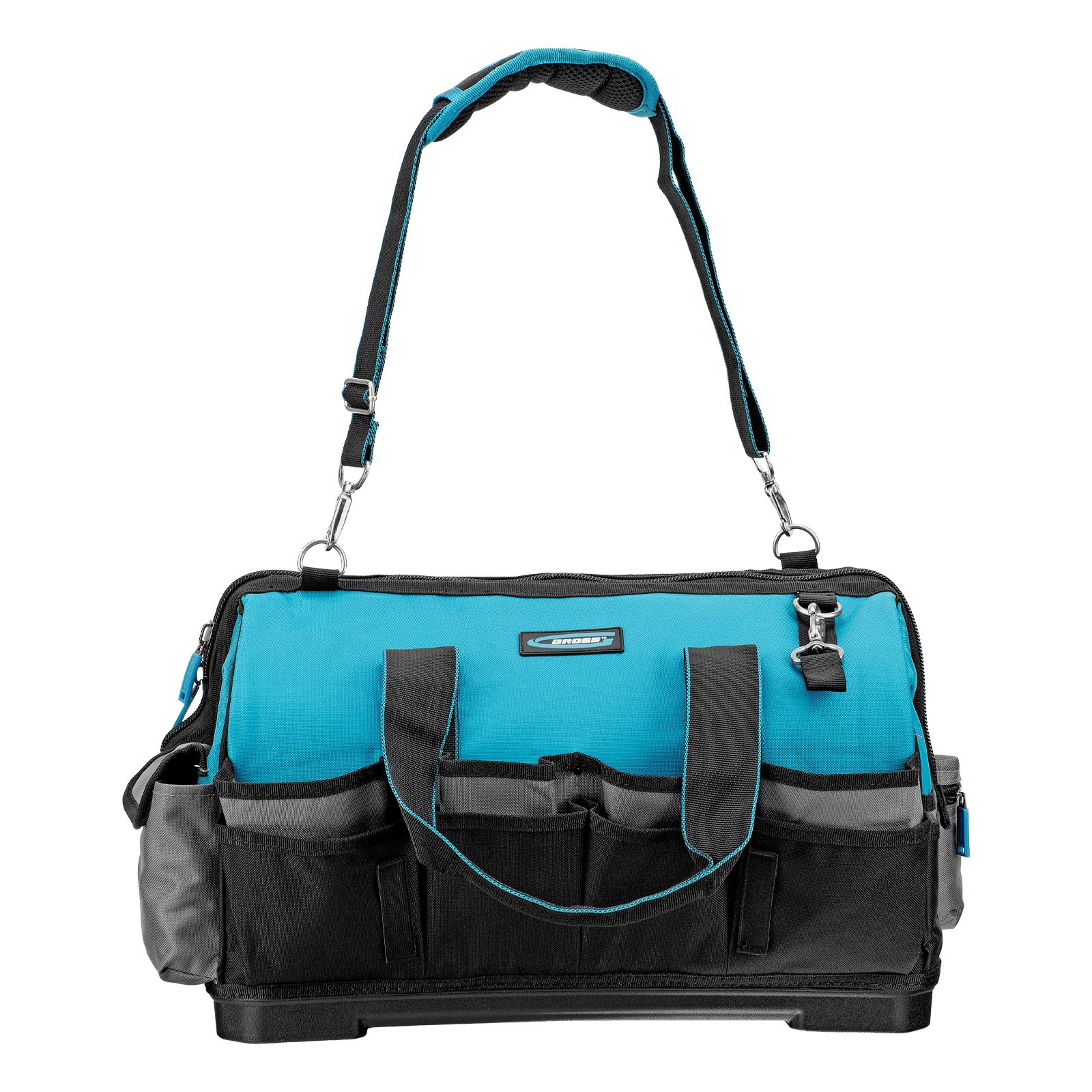 Сумка для инструмента Gross Handwerker 90273 размером 475 х 260 х 360 мм, с 42 карманами, пластиковым дном и наплечным ремнем, будет полезна слесарям, монтажникам, электрикам, а также автомобилистам. В основном отделении, внутренних и внешних карманах поместятся все необходимые инструменты.