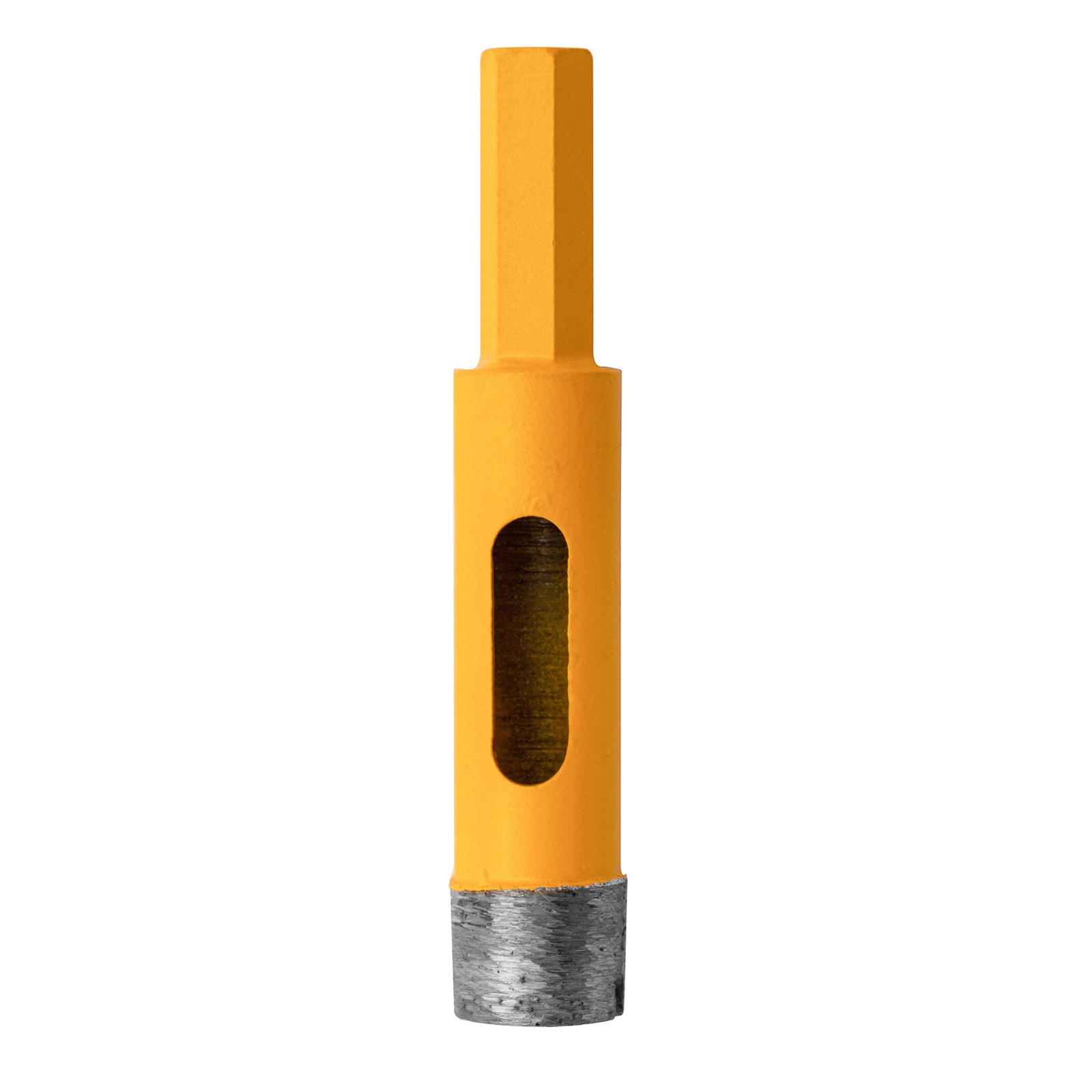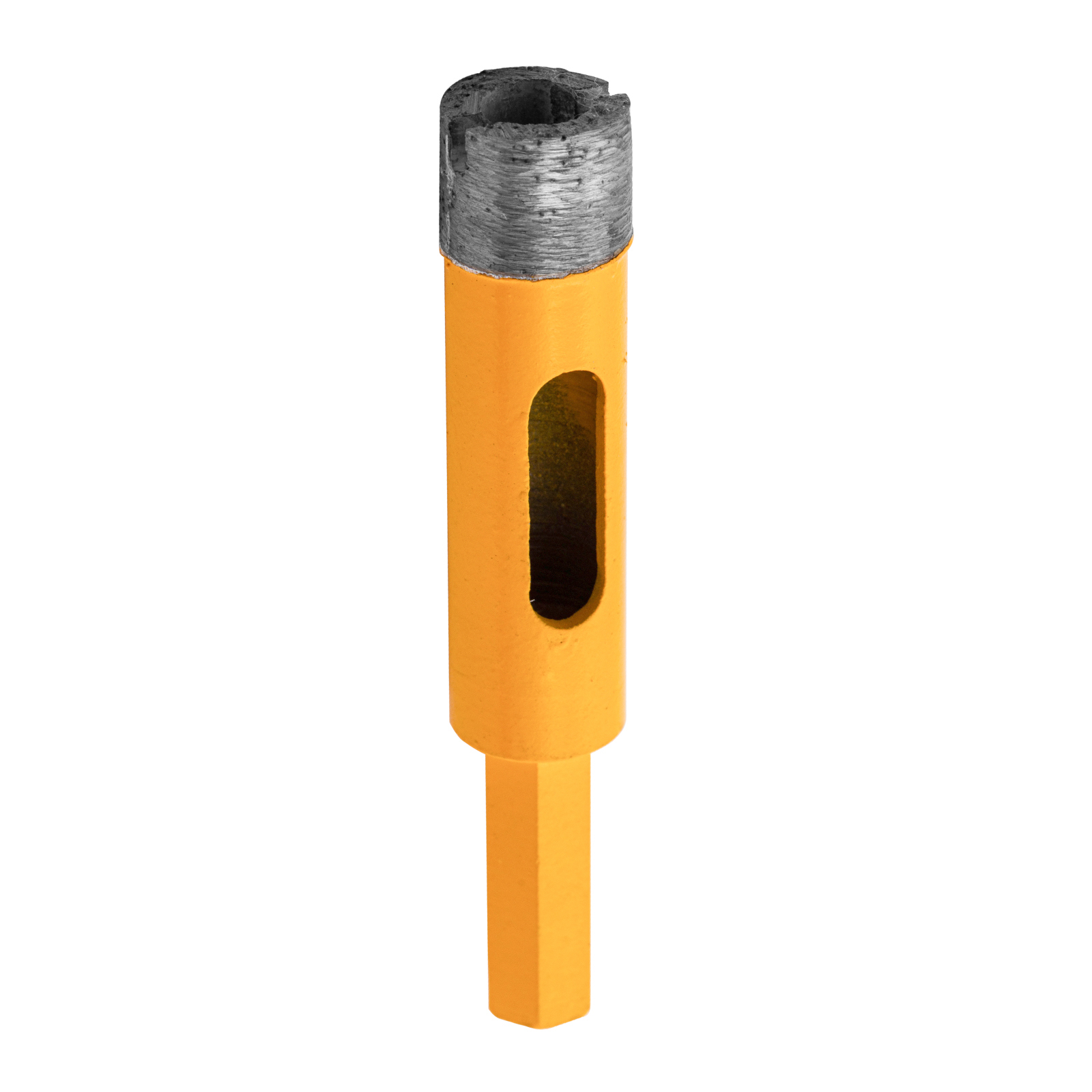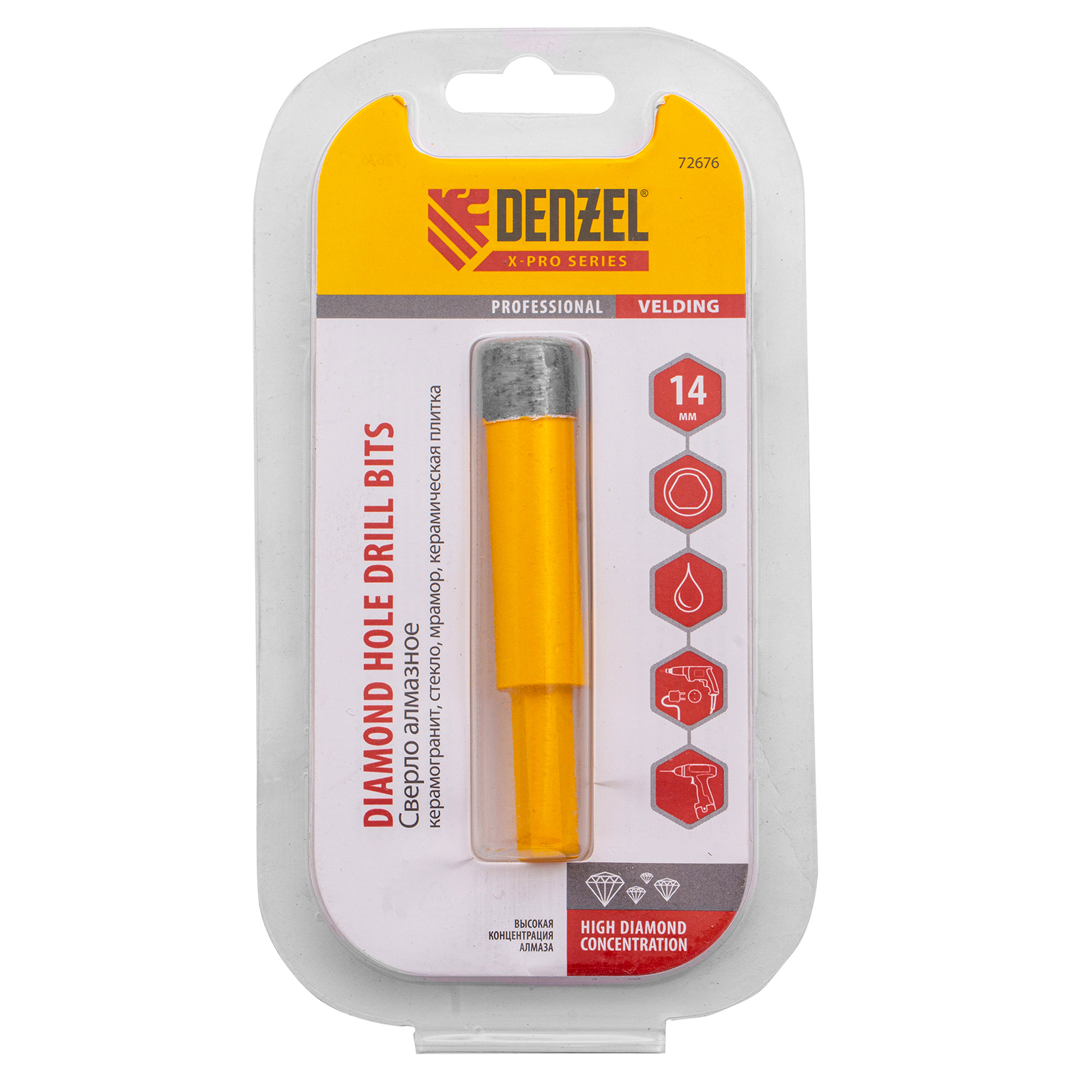 Алмазное сверло Denzel 72676 с шестигранным хвостовиком, для «мокрой» резки, — режущий инструмент для получения точных отверстий диаметром 14 мм. Подходит для работ по стеклу, керамике, керамограниту и мрамору. Используется в качестве оснастки для дрелей и шуруповертов. Сверление с применением водяного охлаждения позволит избежать перегрева сверла и продлить срок его службы. Использование кондуктора 72830 препятствует смещению коронки и облегчает засверливание. Оснастка предназначена для профессионального использования.