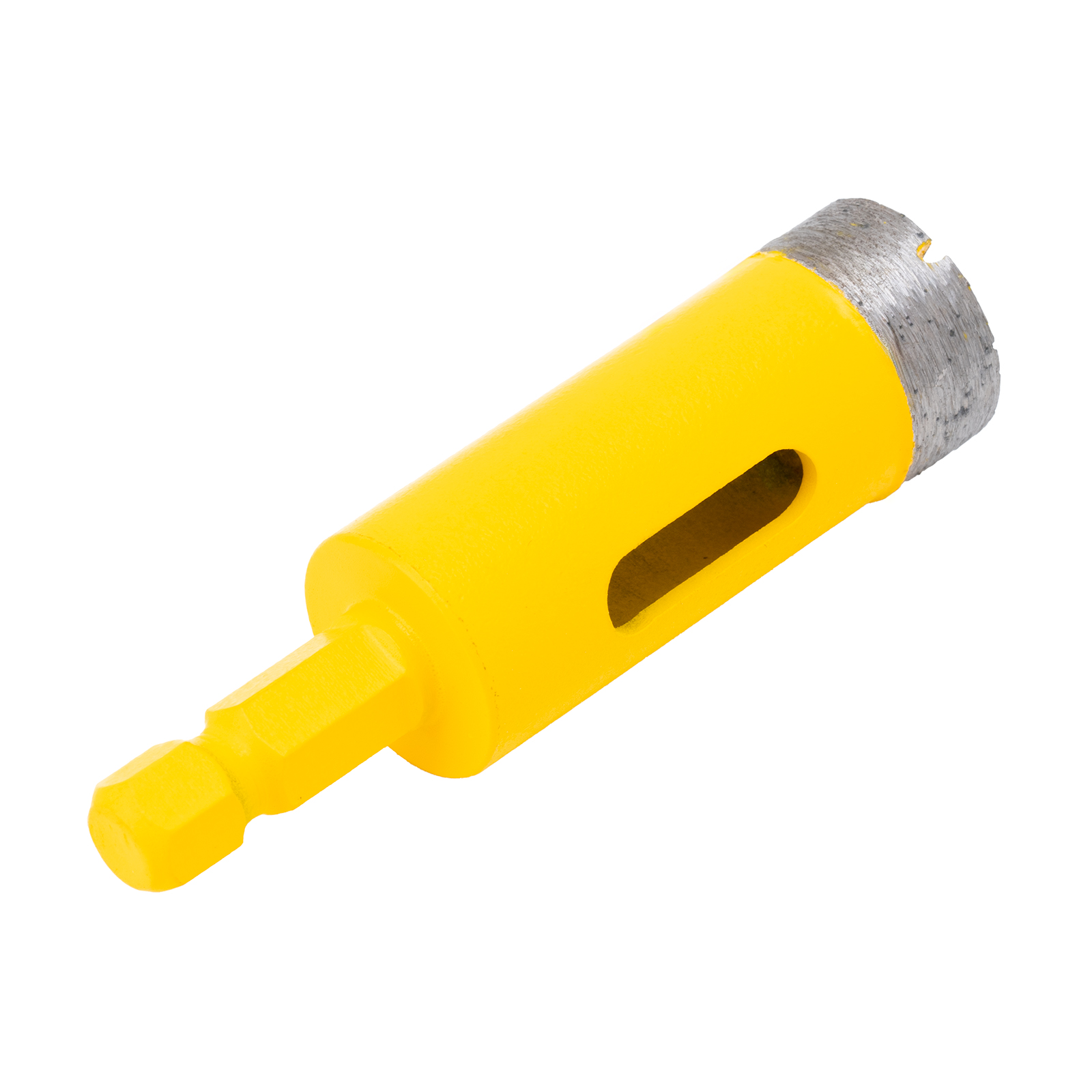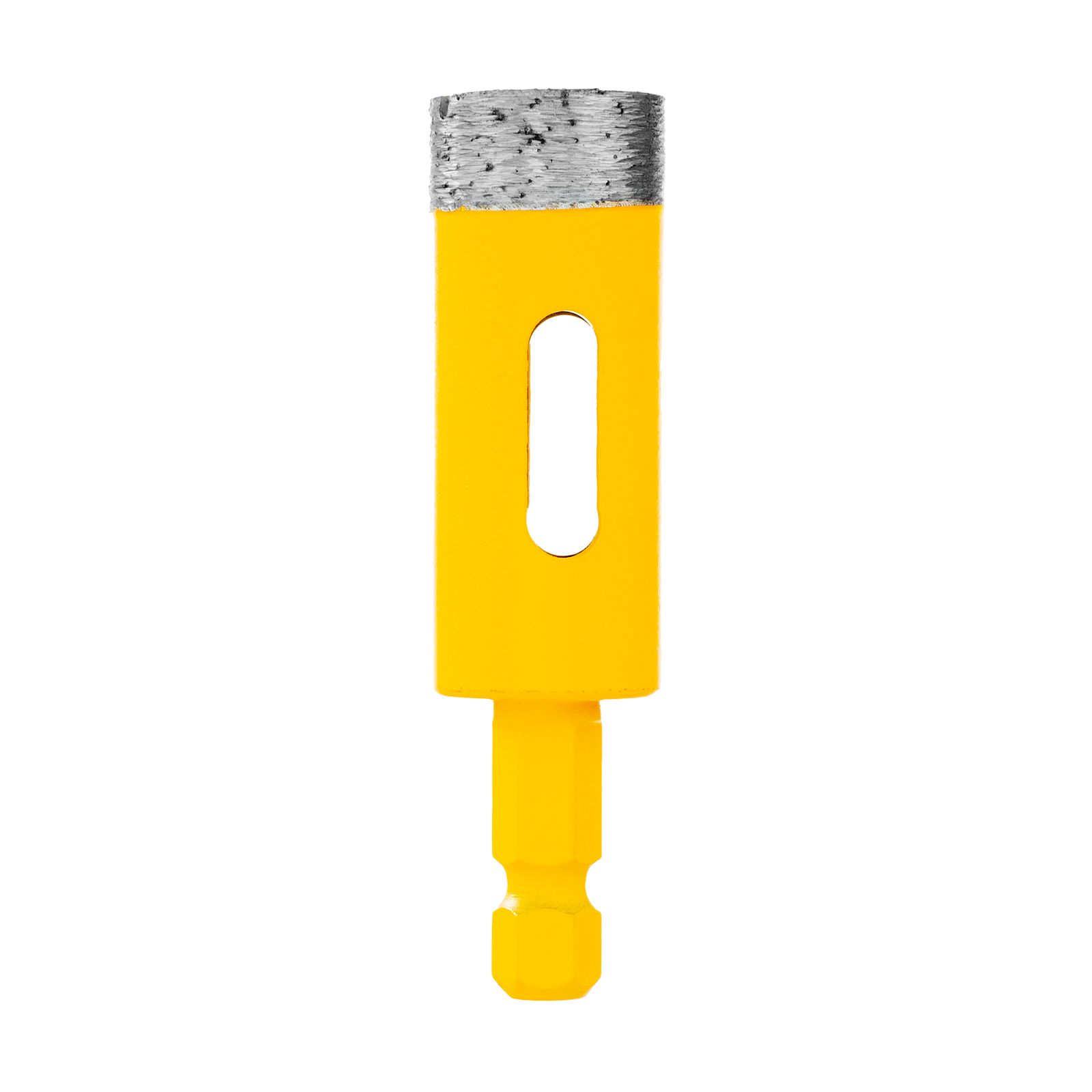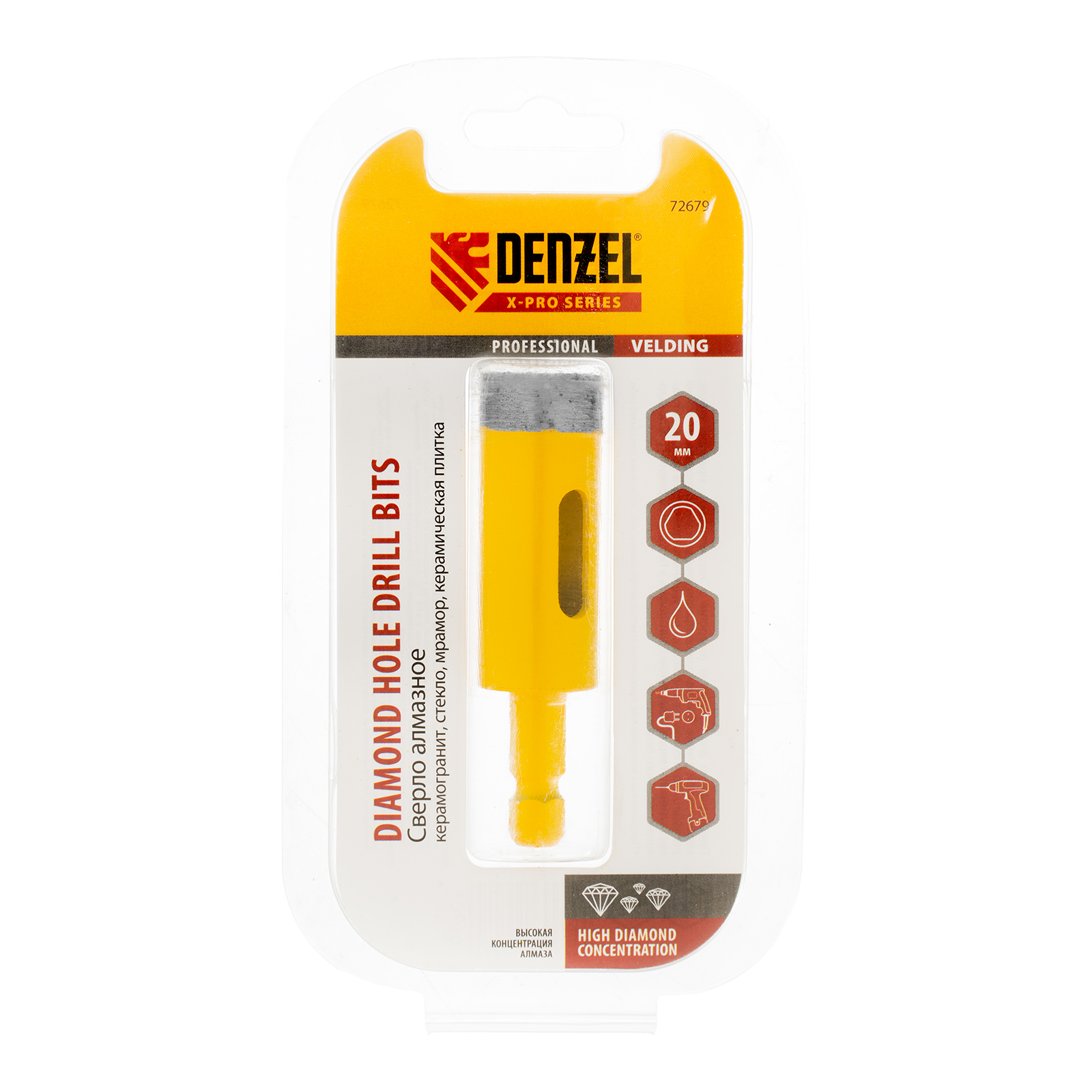 Алмазное сверло Denzel 72679 с шестигранным хвостовиком, для «мокрой» резки, — режущий инструмент для получения точных отверстий диаметром 20 мм. Подходит для работ по стеклу, керамике, керамограниту и мрамору. Используется в качестве оснастки для дрелей и шуруповертов. Сверление с применением водяного охлаждения позволит избежать перегрева сверла и продлить срок его службы. Использование кондуктора 72830 препятствует смещению коронки и облегчает засверливание. Оснастка предназначена для профессионального использования.