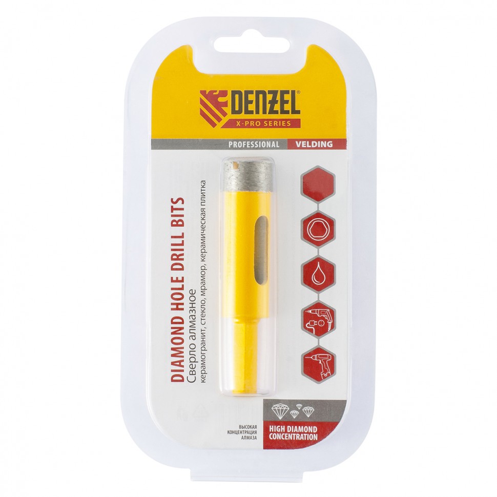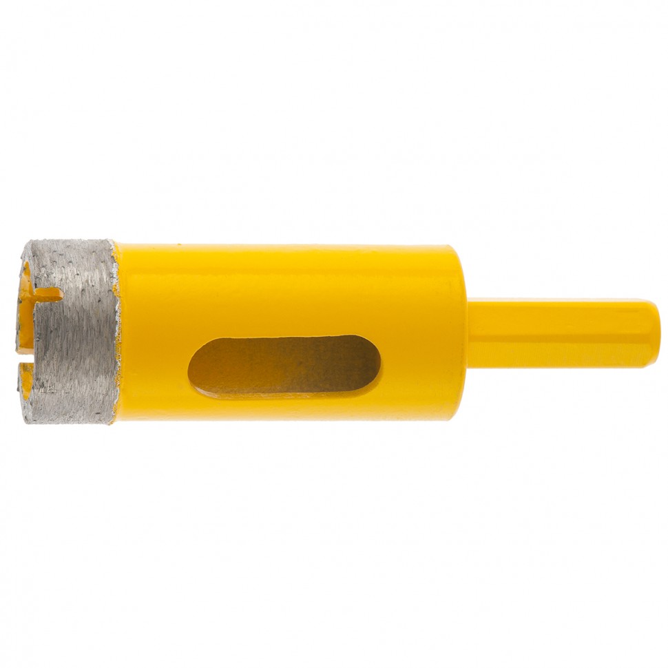 Алмазное сверло Denzel 72680 с шестигранным хвостовиком, для «мокрой» резки, — режущий инструмент для получения точных отверстий диаметром 22 мм. Подходит для работ по стеклу, керамике, керамограниту и мрамору. Используется в качестве оснастки для дрелей и шуруповертов. Сверление с применением водяного охлаждения позволит избежать перегрева сверла и продлить срок его службы. Использование кондуктора 72830 препятствует смещению коронки и облегчает засверливание. Оснастка предназначена для профессионального использования.