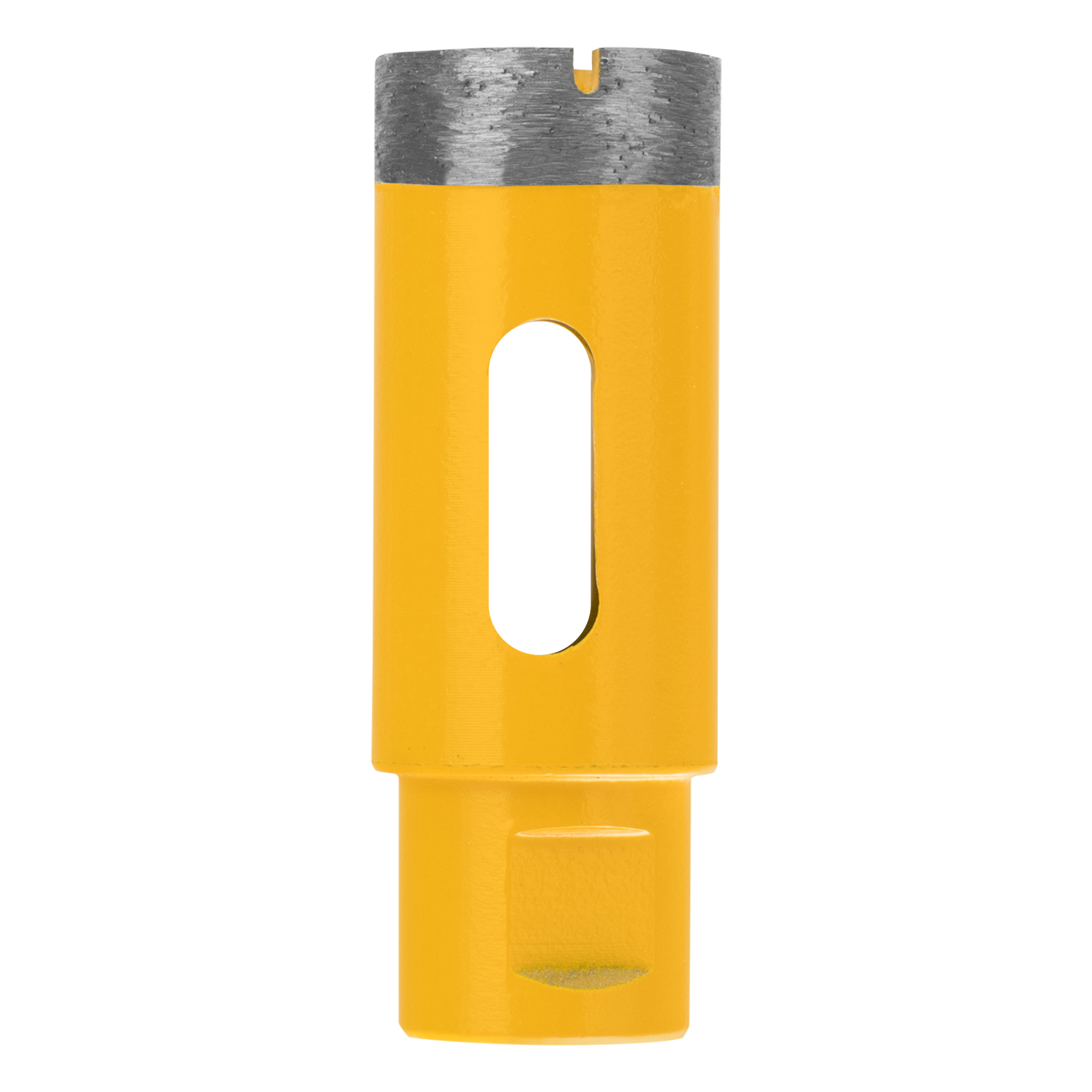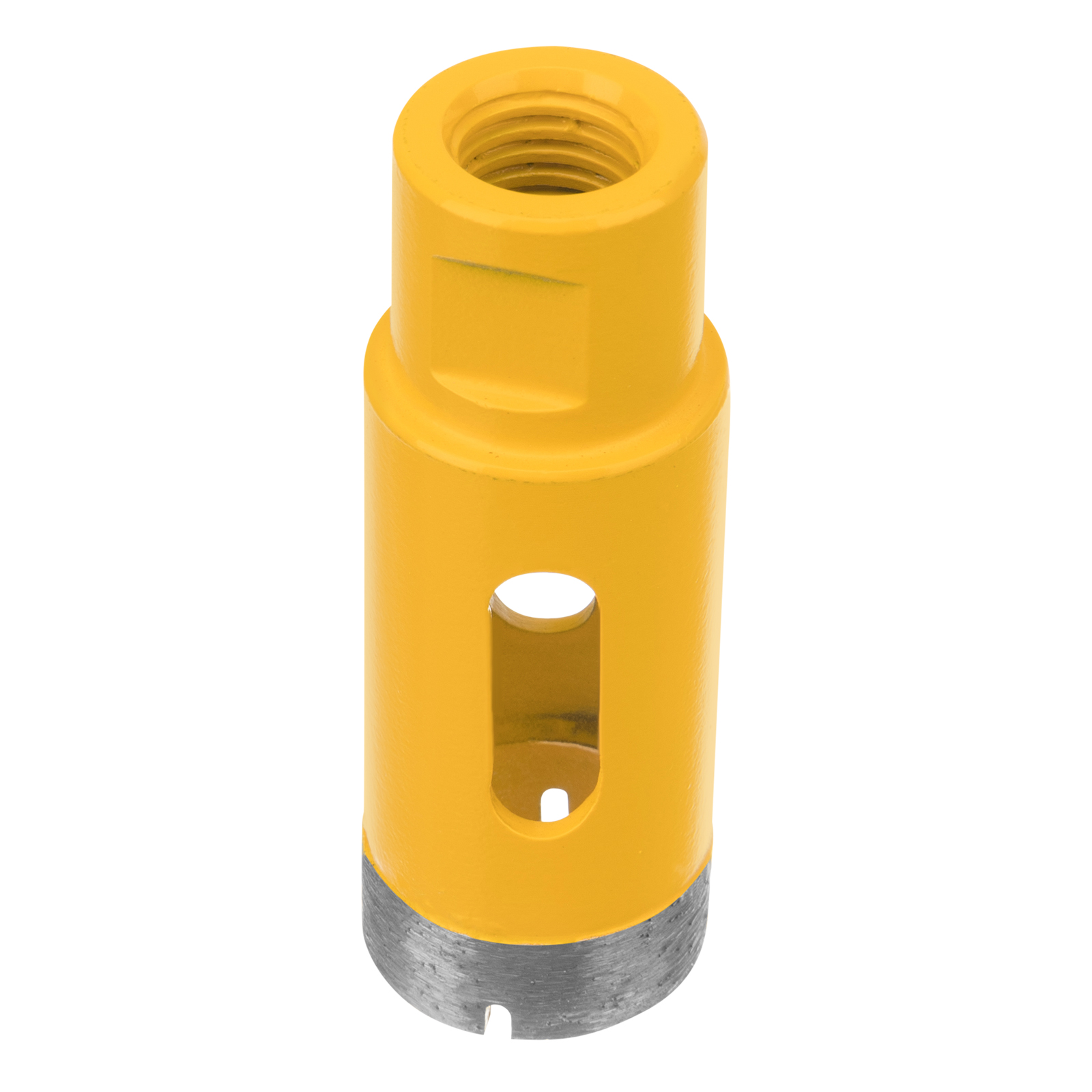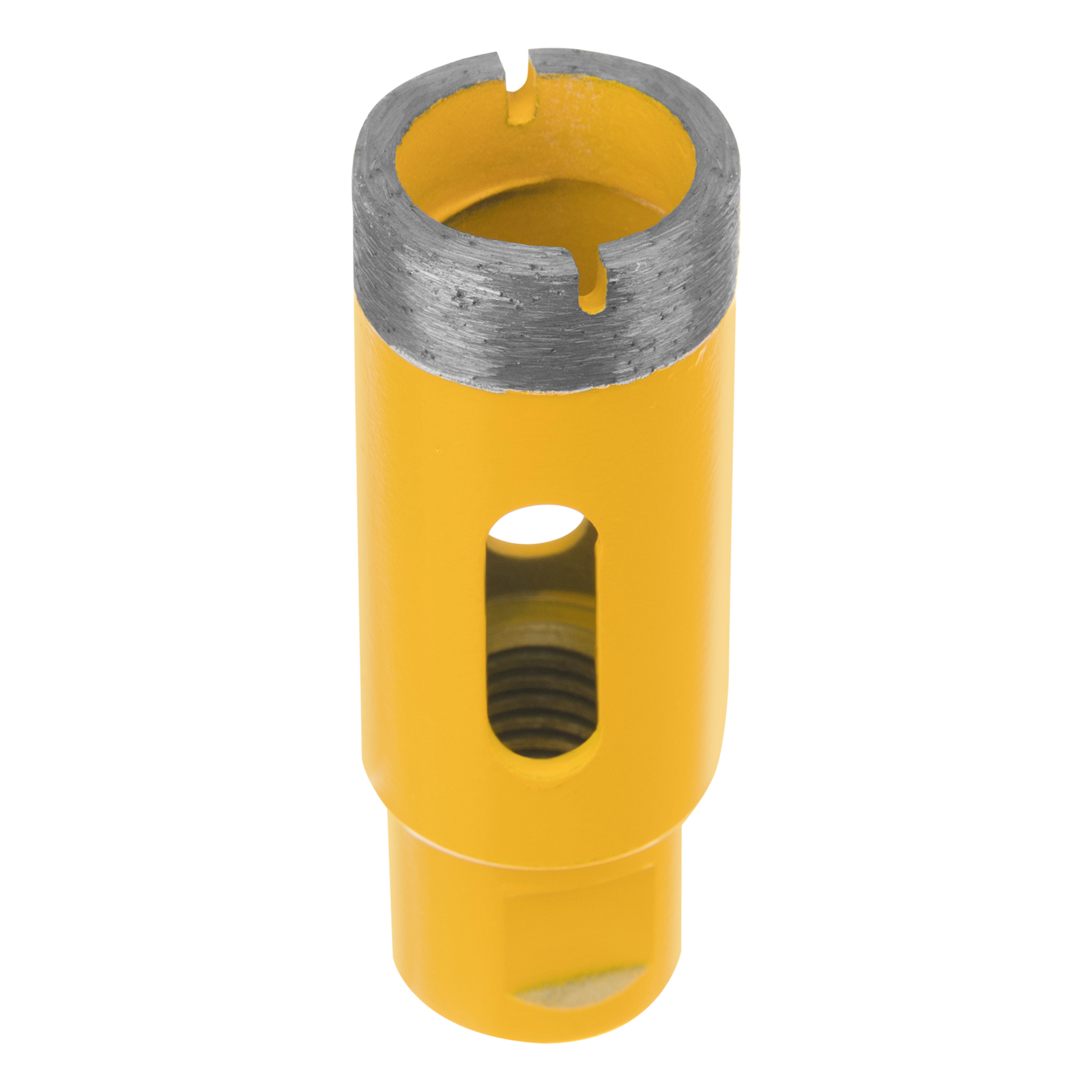 Алмазное сверло Denzel 72682 диаметром 27 мм, с резьбой М14, предназначено для «мокрого» сверления по керамограниту, мрамору, стеклу и керамической плитке. Позволяет получать ровные отверстия без сколов, используется для проведения ремонтных и отделочных работ. Сверло (коронку) устанавливают на вал углошлифовальной машины, благодаря чему скорость сверления увеличивается в несколько раз по сравнению с дрелью или шуруповертом. Применение водяного охлаждения повышает срок службы оснастки. Чтобы точно позиционировать сверло при сверлении дрелью, рекомендуется использовать кондуктор (арт. 72830).