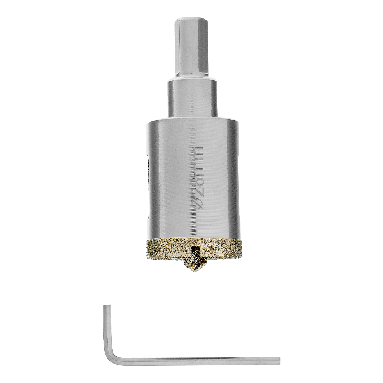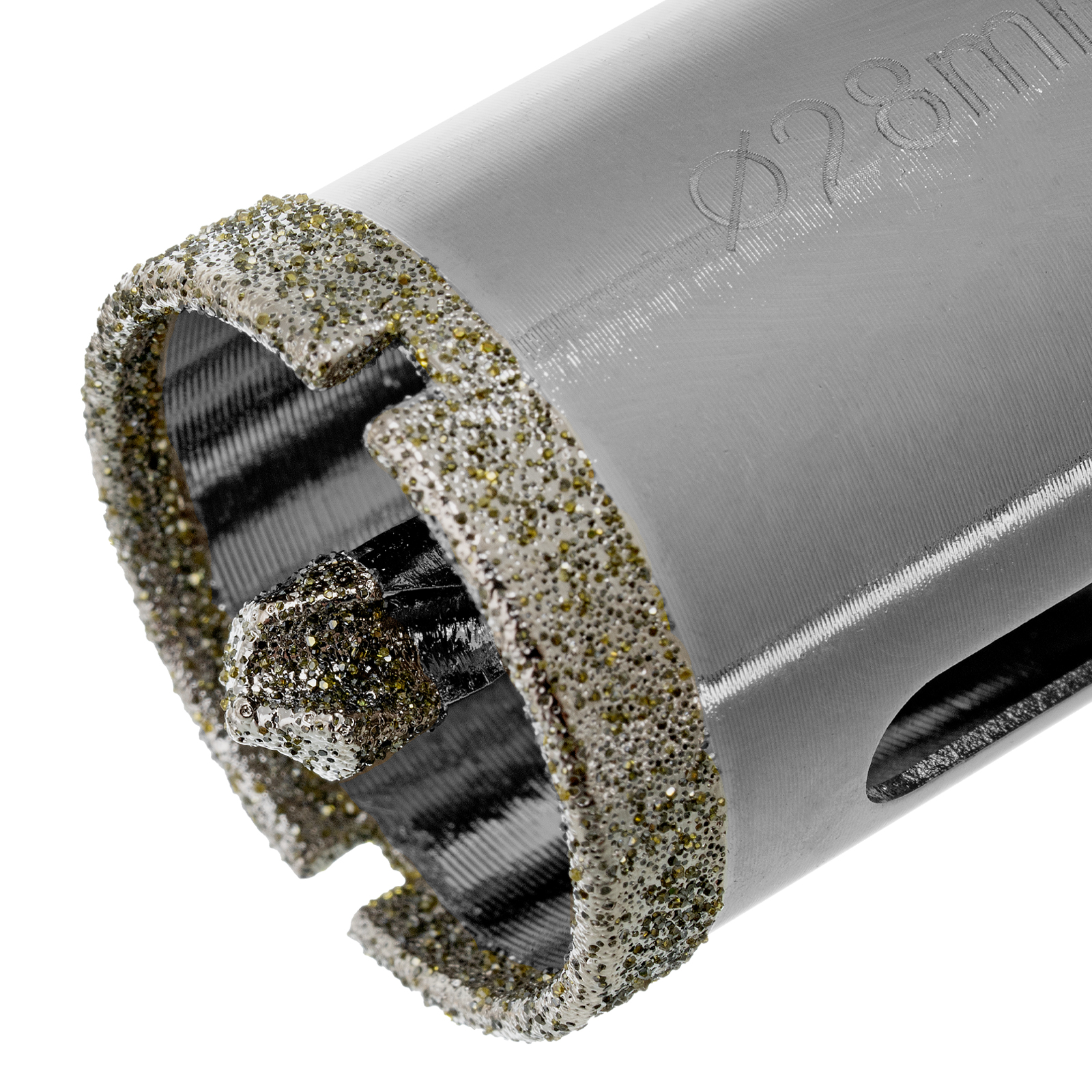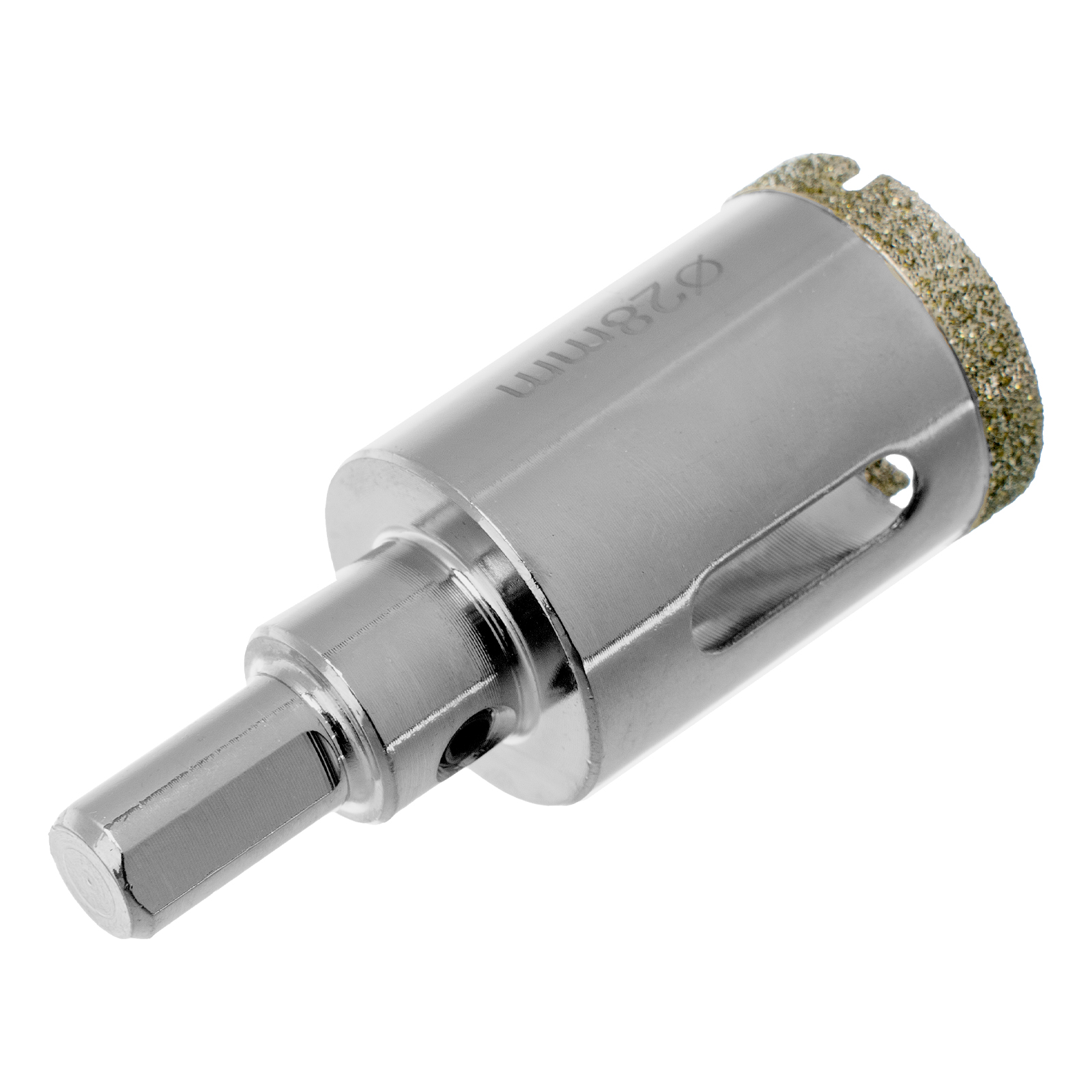 Универсальное алмазное сверло по керамограниту Matrix 726283 размером 28 х 67 мм, с 3-гранным хвостовиком, применяется для получения отверстий в стекле, плитке, кафеле. За счет высокой концентрации алмазов в режущем слое оно легко справляется со сверлением керамогранита. Сверло рассчитано на профессиональное использование с дрелями и шуруповертами. Водяное охлаждение в процессе работы значительно повышает срок службы оснастки.