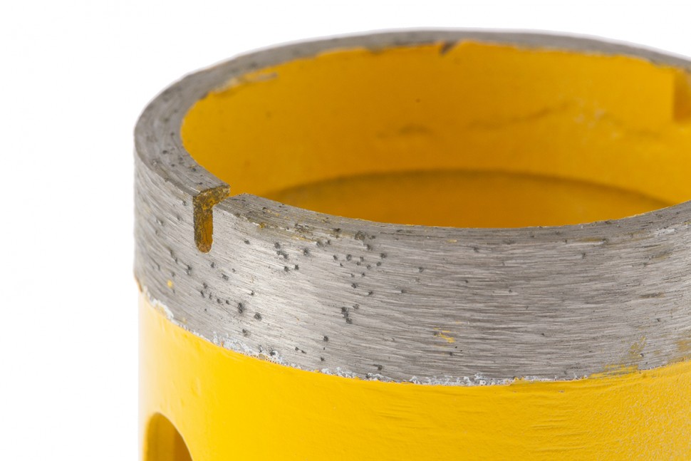 - Высокий ресурс — режущий слой изготовлен методом горячего спекания, что обеспечивает надежную фиксацию алмазов связкой.