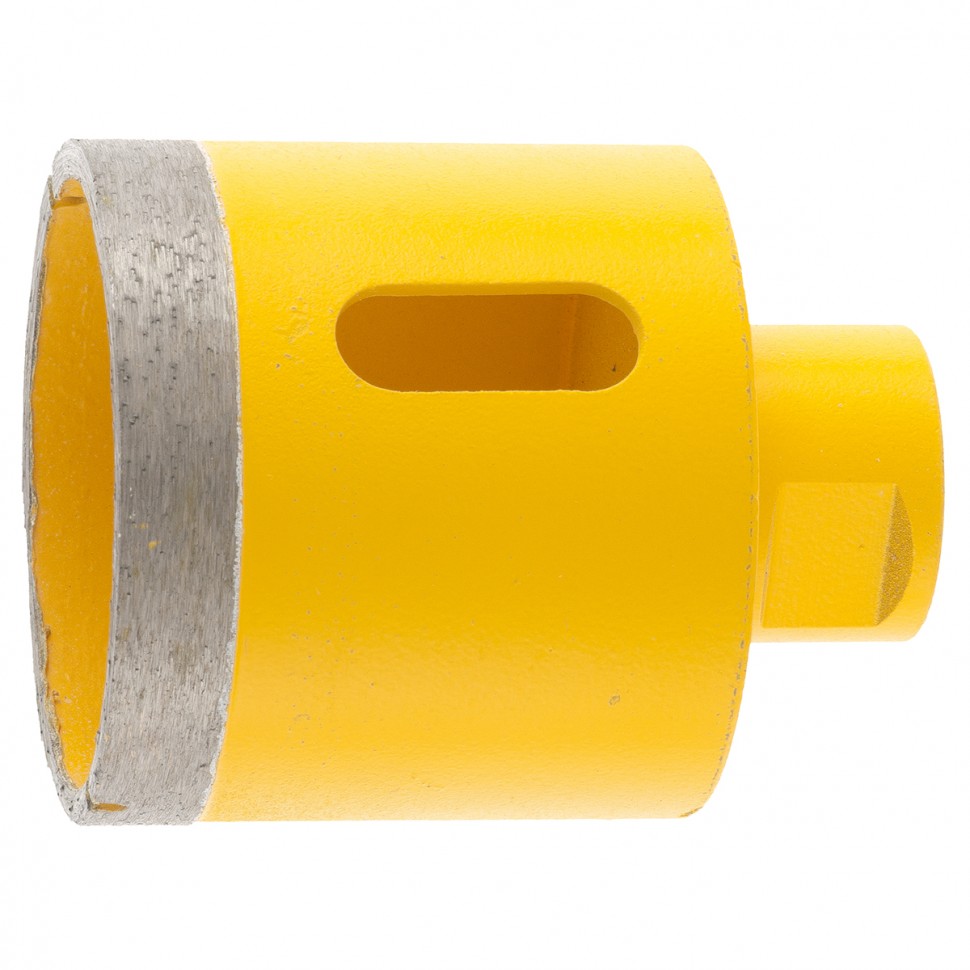 Алмазное сверло Denzel 72691 диаметром 60 мм, с резьбой М14, предназначено для «мокрого» сверления по керамограниту, мрамору, стеклу и керамической плитке. Позволяет получать ровные отверстия без сколов, используется для проведения ремонтных и отделочных работ. Сверло (коронку) устанавливают на вал углошлифовальной машины, благодаря чему скорость сверления увеличивается в несколько раз по сравнению с дрелью или шуруповертом. Применение водяного охлаждения повышает срок службы оснастки. Чтобы точно позиционировать сверло при сверлении дрелью, рекомендуется использовать кондуктор (арт. 72830).