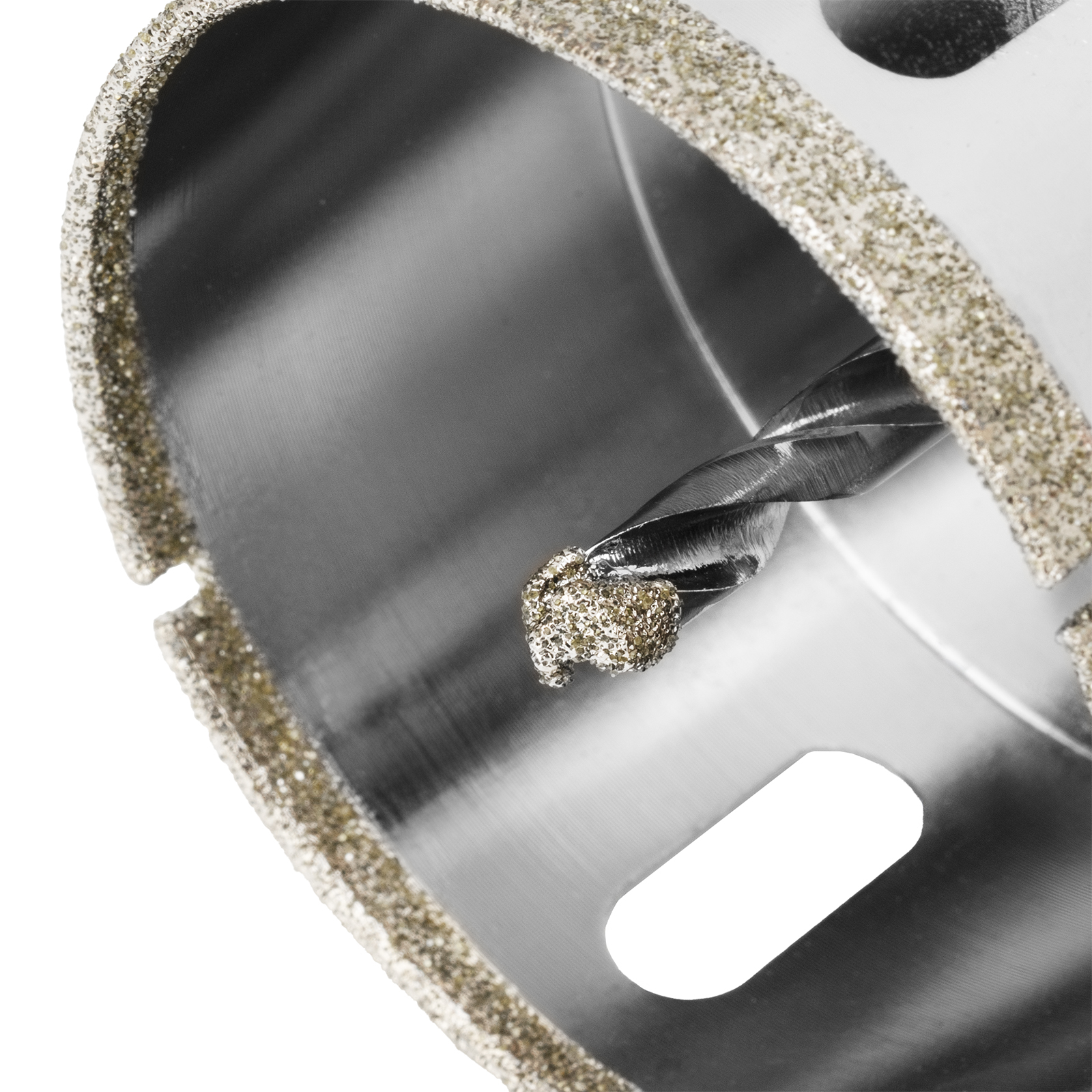 - Высокий ресурс — сверло с усиленным корпусом и увеличенным алмазным слоем долго сохраняет рабочие свойства.