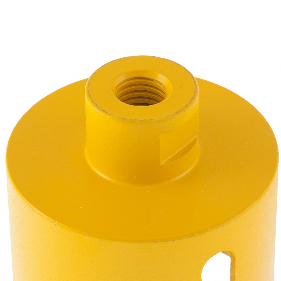 Алмазное сверло Denzel 72694 диаметром 70 мм, с резьбой М14, предназначено для «мокрого» сверления по керамограниту, мрамору, стеклу и керамической плитке. Позволяет получать ровные отверстия без сколов, используется для проведения ремонтных и отделочных работ. Сверло (коронку) устанавливают на вал углошлифовальной машины, благодаря чему скорость сверления увеличивается в несколько раз по сравнению с дрелью или шуруповертом. Применение водяного охлаждения повышает срок службы оснастки. Чтобы точно позиционировать сверло при сверлении дрелью, рекомендуется использовать кондуктор (арт. 72830).