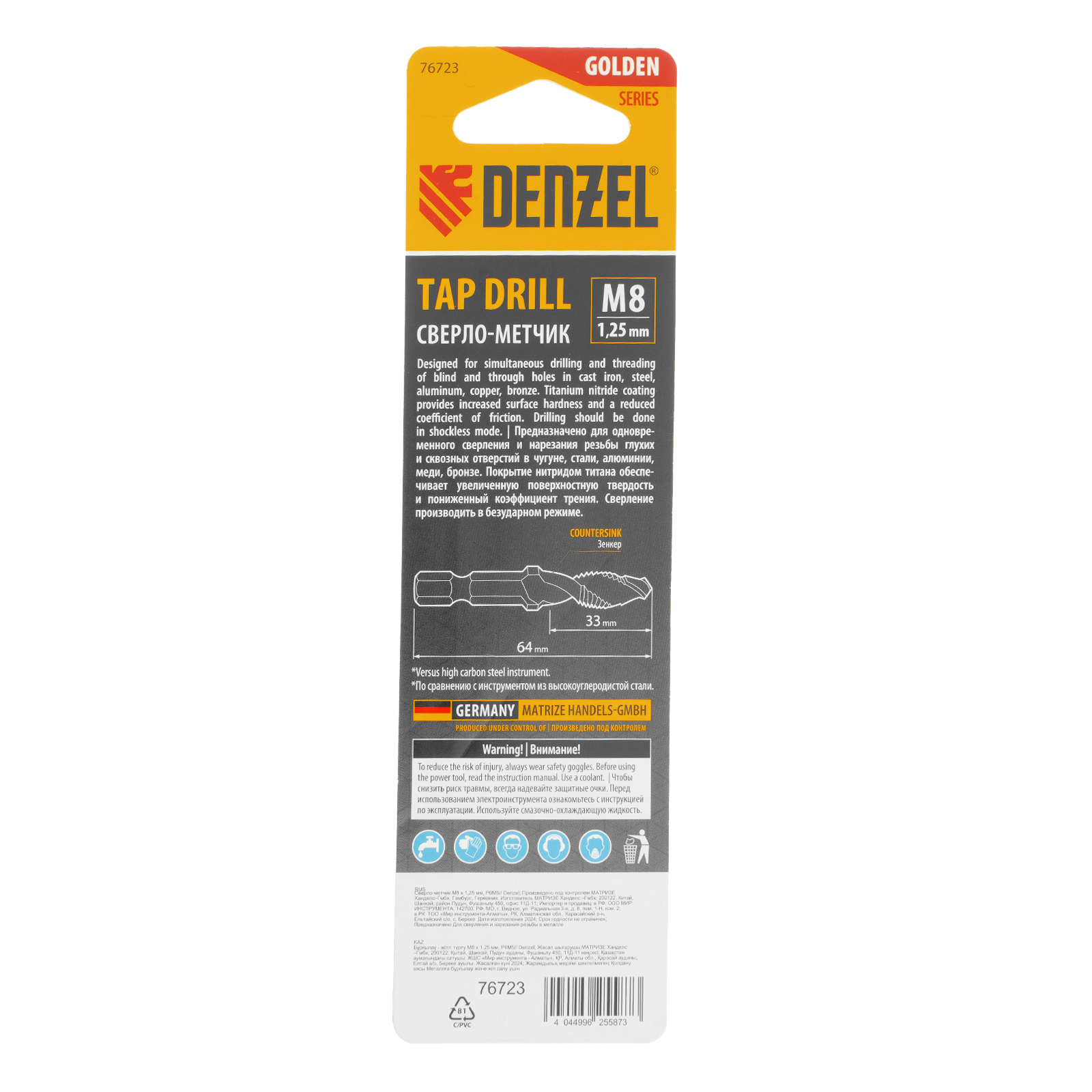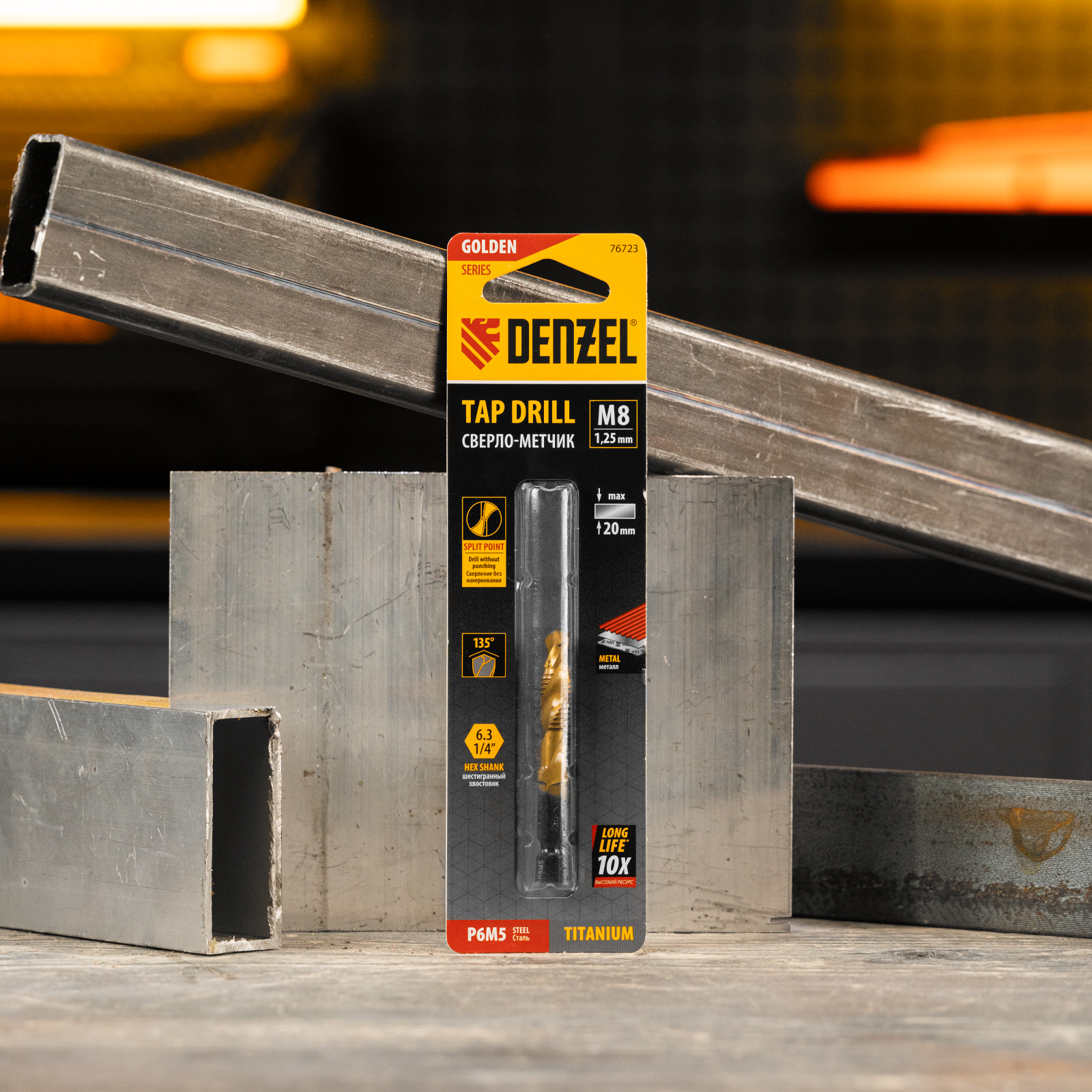 Сверло-метчик Denzel 76723 из стали P6M5 предназначено для получения глухих и сквозных отверстий в металлических заготовках с одновременным нарезанием правой резьбы M8 с шагом 1,25 мм. Позволяет существенно сэкономить время работы, объединив две операции в одну. Угол заточки 135° оптимален для работы с чугуном, сталью, алюминием, медью, бронзой. Ресурс оснастки увеличен в 10 раз по сравнению с аналогичными моделями из углеродистой стали.