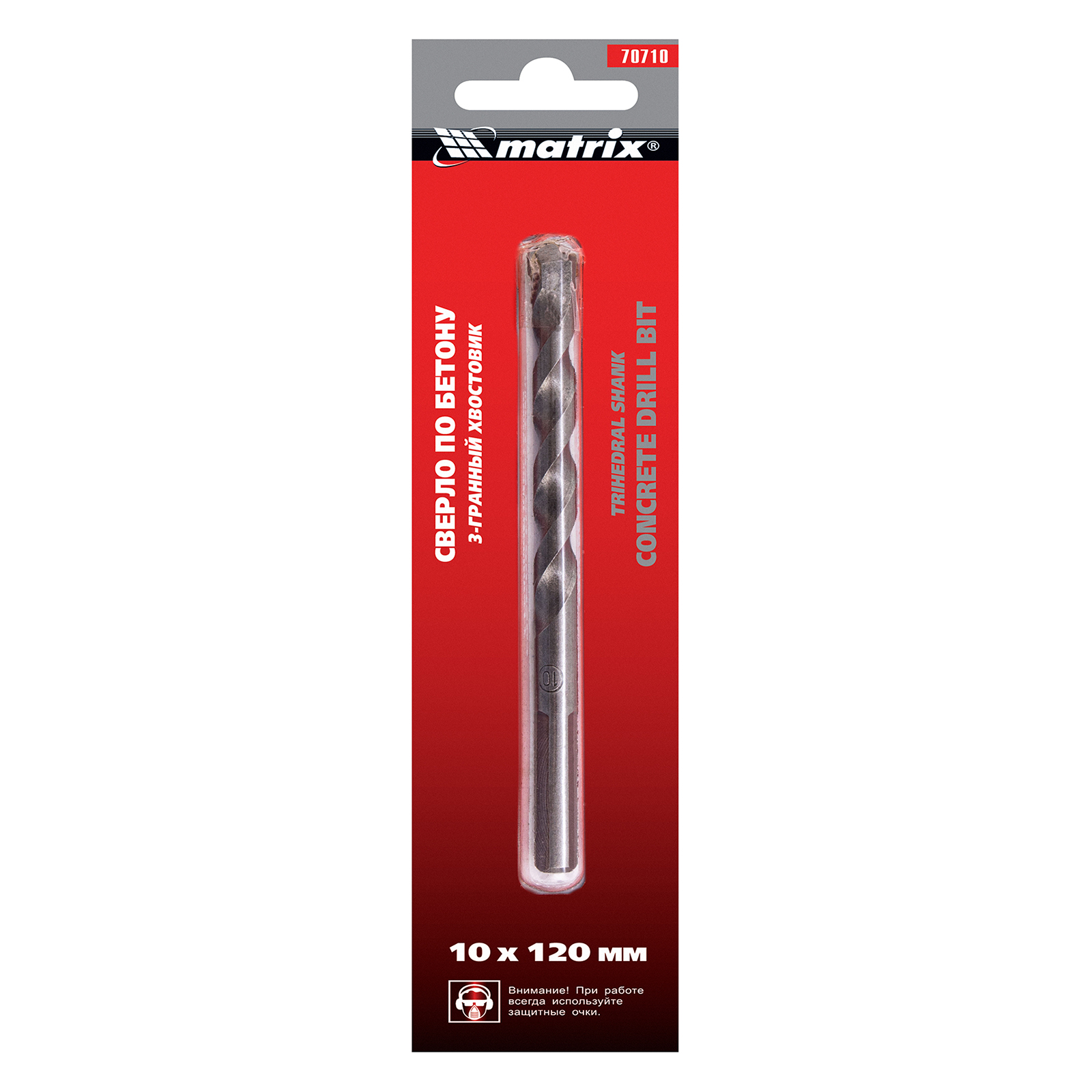 Сверло по бетону Matrix 70710 размером 10 х 120 мм, с 3-гранным хвостовиком, используется для получения отверстий с помощью дрели. Пригодится для сверления бетона, мрамора, керамики и других твердых материалов.