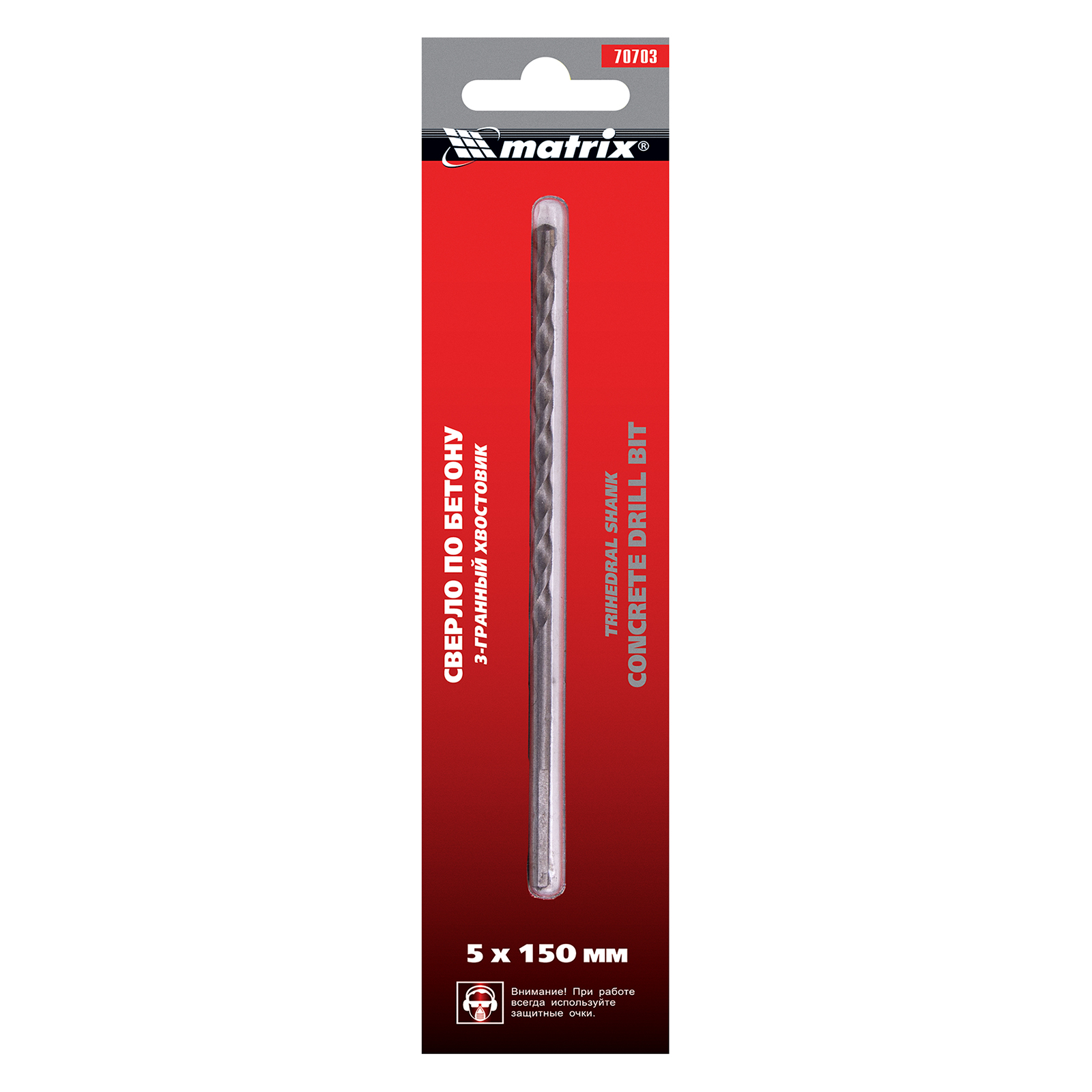 Сверло по бетону Matrix 70703 размером 5 х 150 мм, с 3-гранным хвостовиком, используется для получения отверстий с помощью дрели. Пригодится для сверления бетона, мрамора, керамики и других твердых материалов.